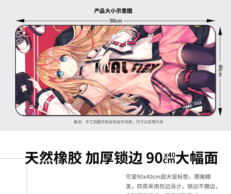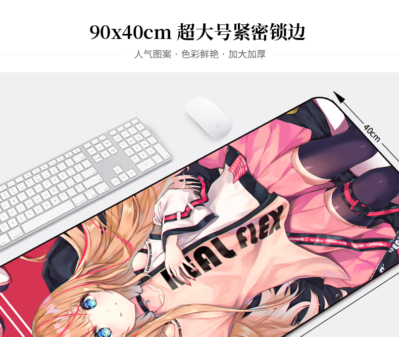 • 商品名称:鼠标垫超大号加厚锁边加大游戏电竞卡通动漫少女可爱家用创意桌垫