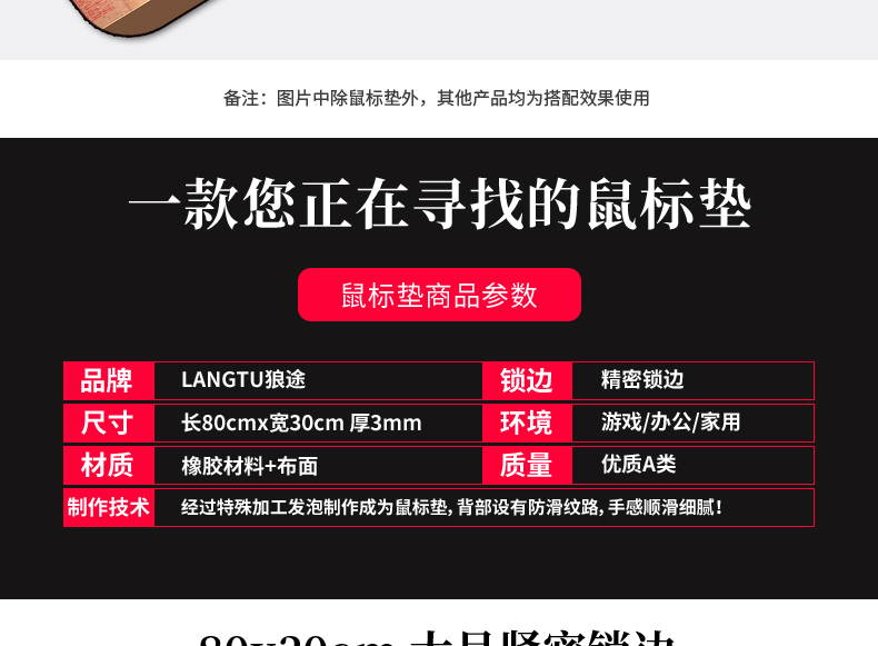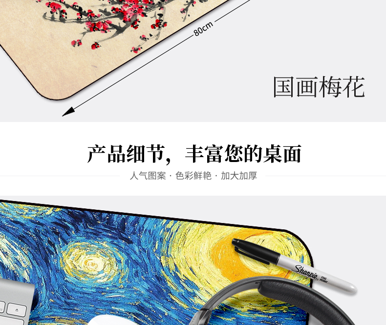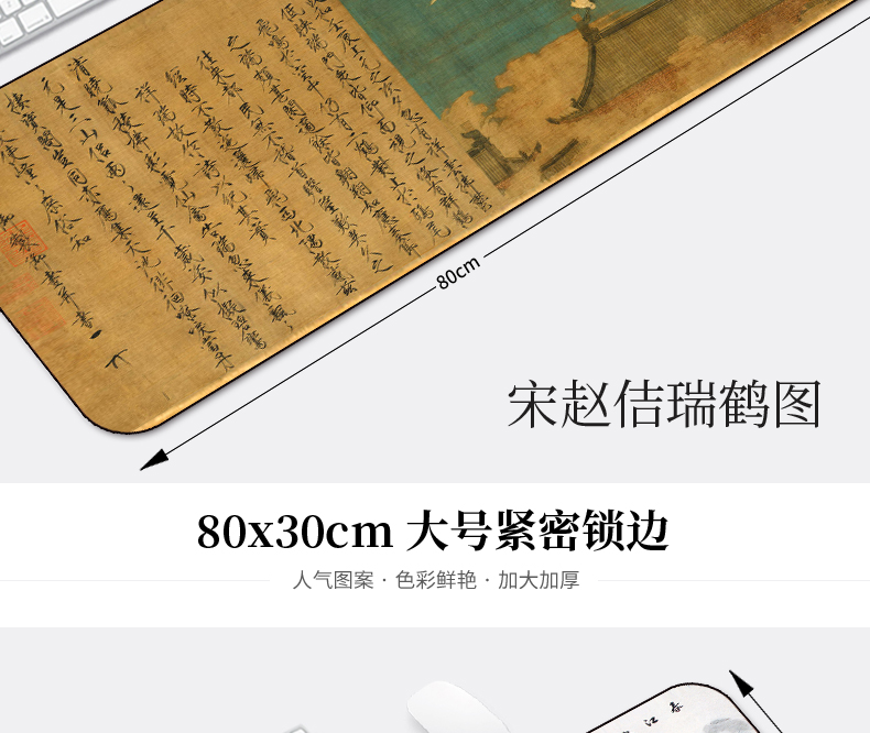 • 商品名称:游戏超大鼠标垫锁边中国风加厚可爱兰亭序励志笔记本电脑办公桌垫