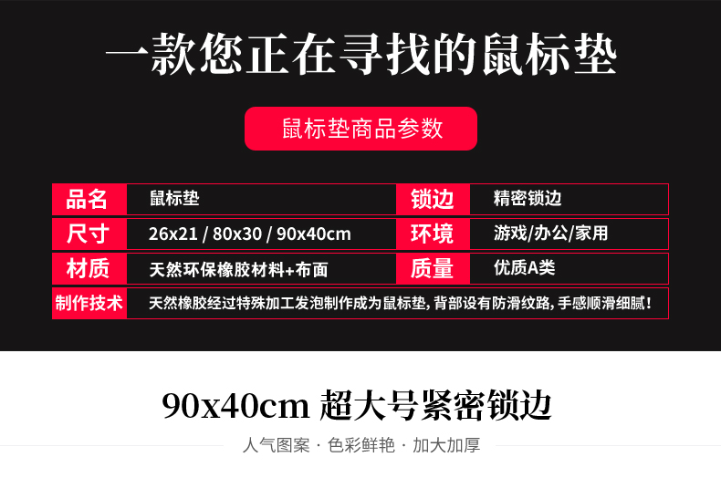 • 商品名称:中国风宫廷鼠标垫超大号加厚游戏桌垫办公个性创意锁边定制可爱