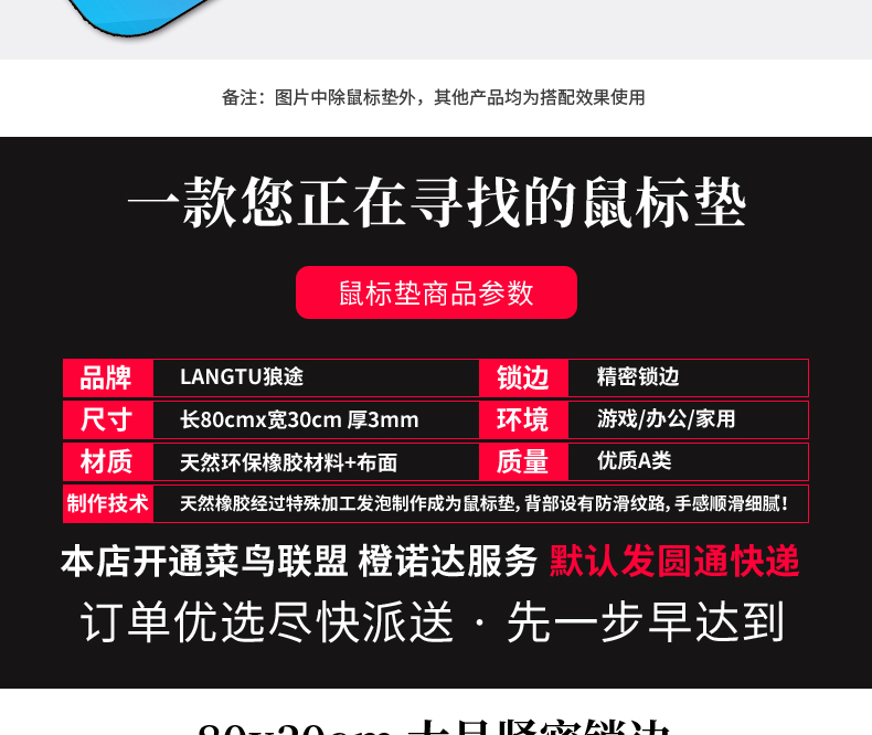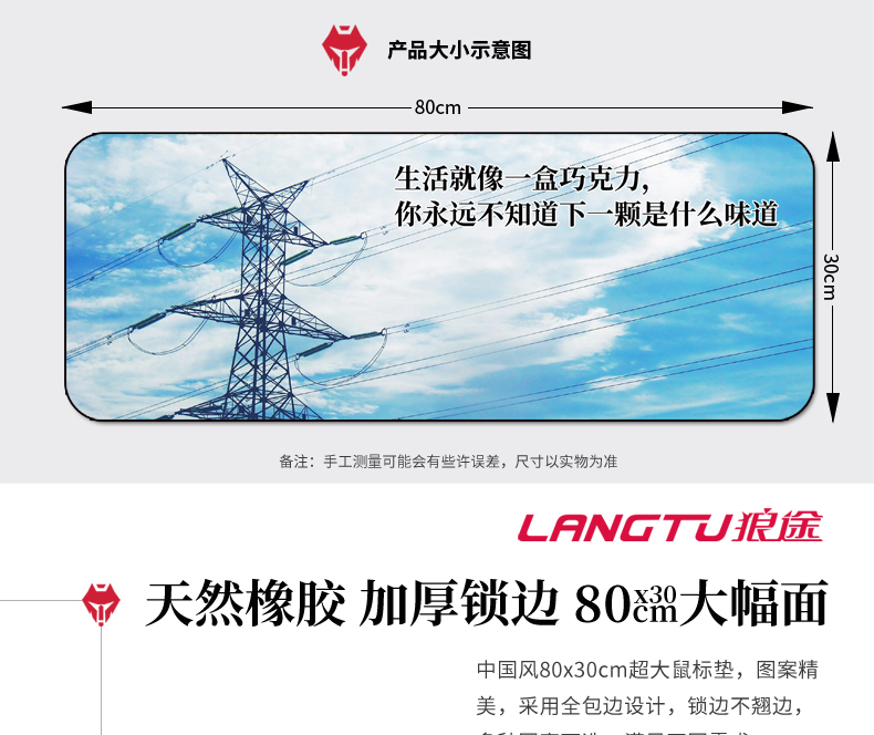 • 商品名称:超大鼠标垫布垫防滑游戏励志加厚可爱创意锁边文艺个性办公鼠标垫
