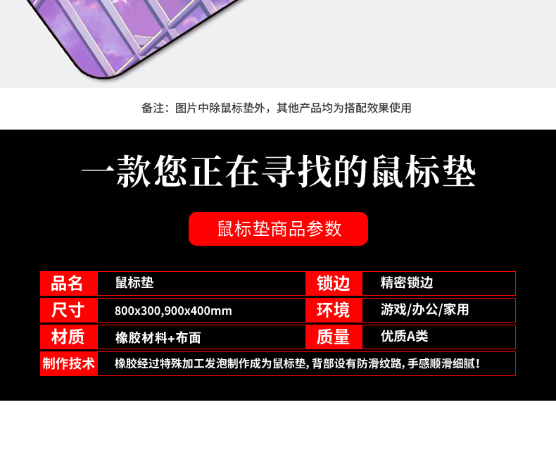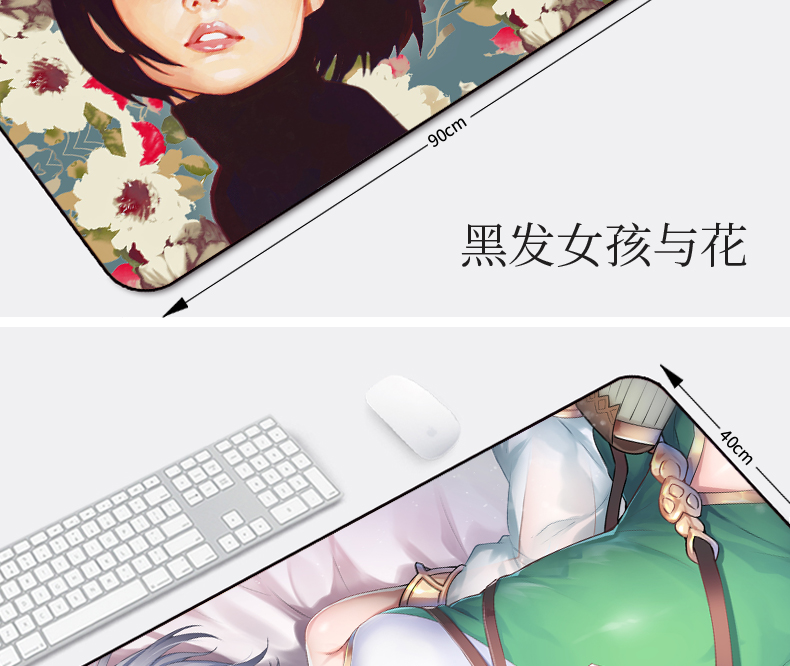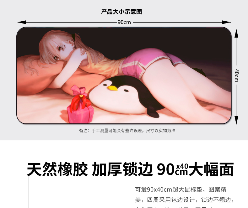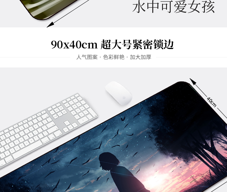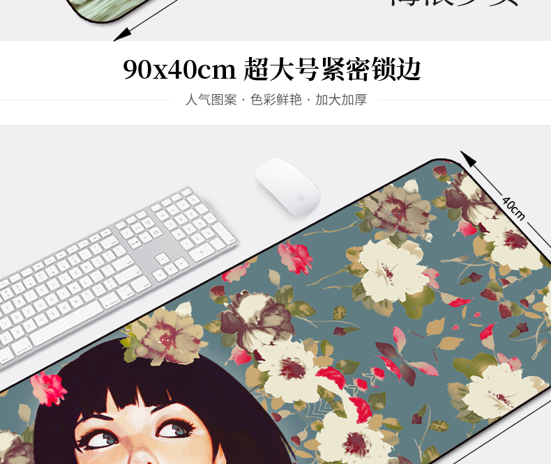 • 商品名称:鼠标垫超大号定制电竞游戏卡通少女可爱加厚锁边家用电脑桌键盘垫