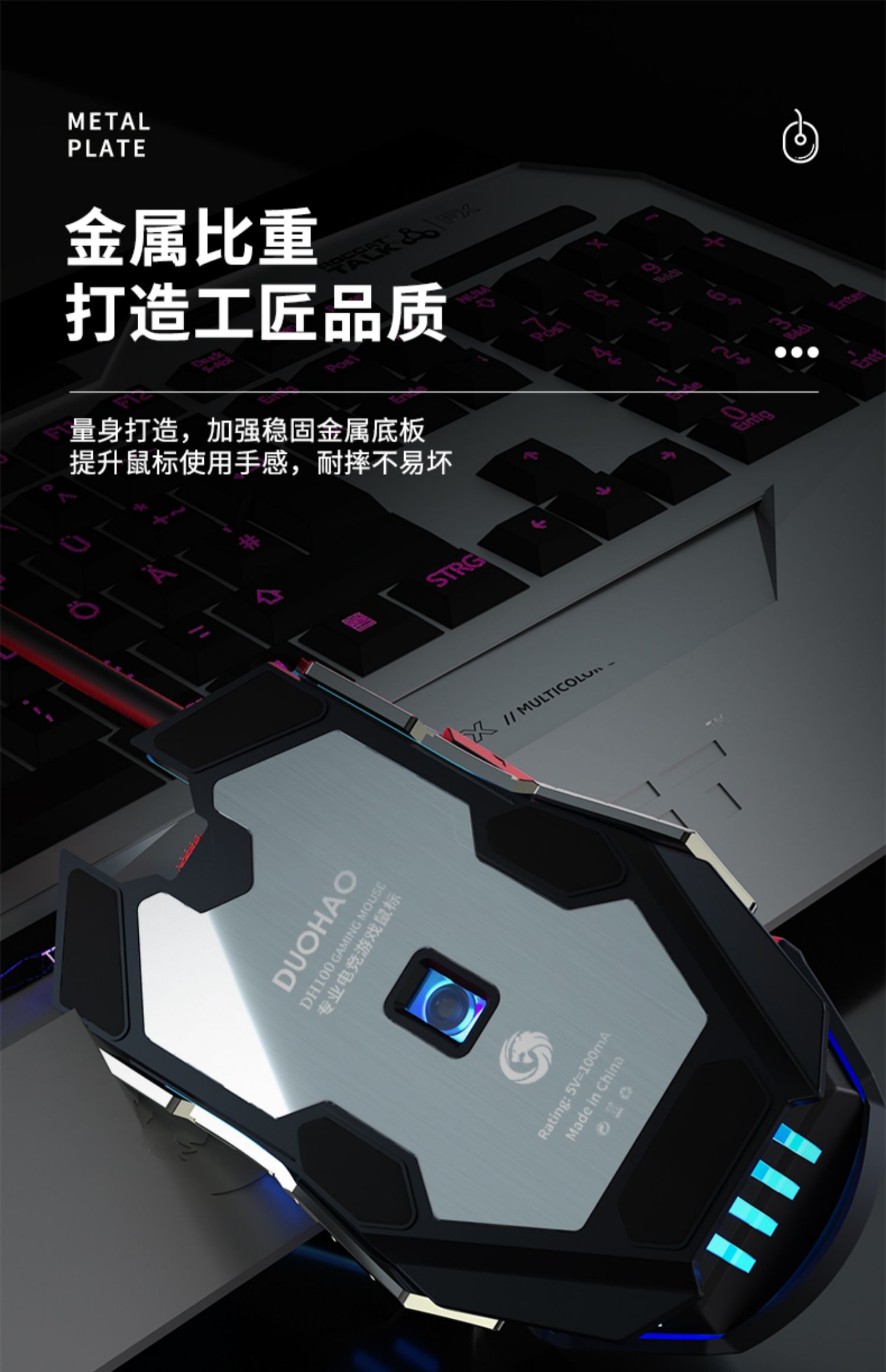 • 商品名称:多豪D1 电竞鼠标有线 电脑台式笔记本家用办公网咖网吧金属lol吃鸡cf游戏专用USB男女生通用 宏编程机械鼠标