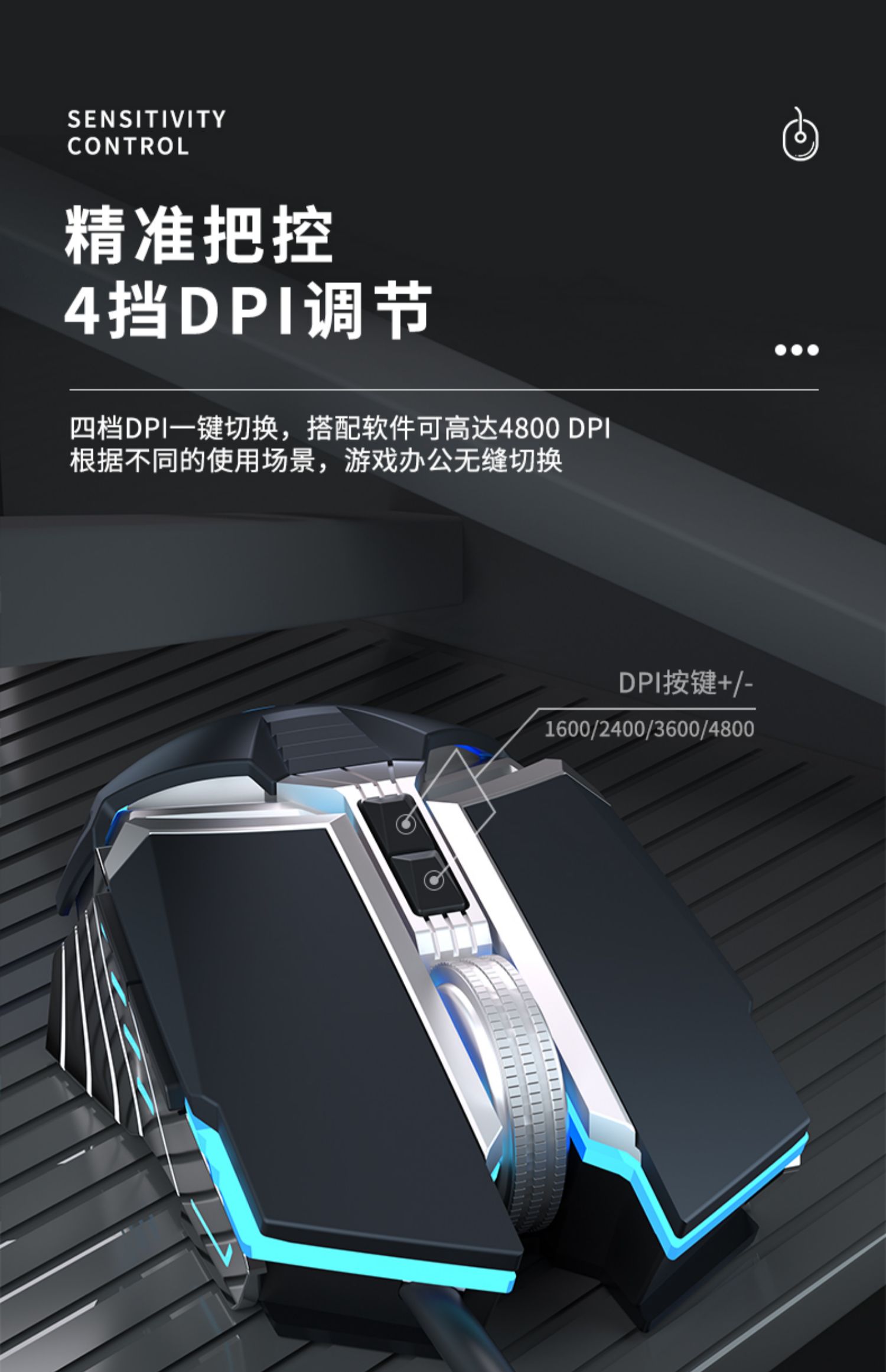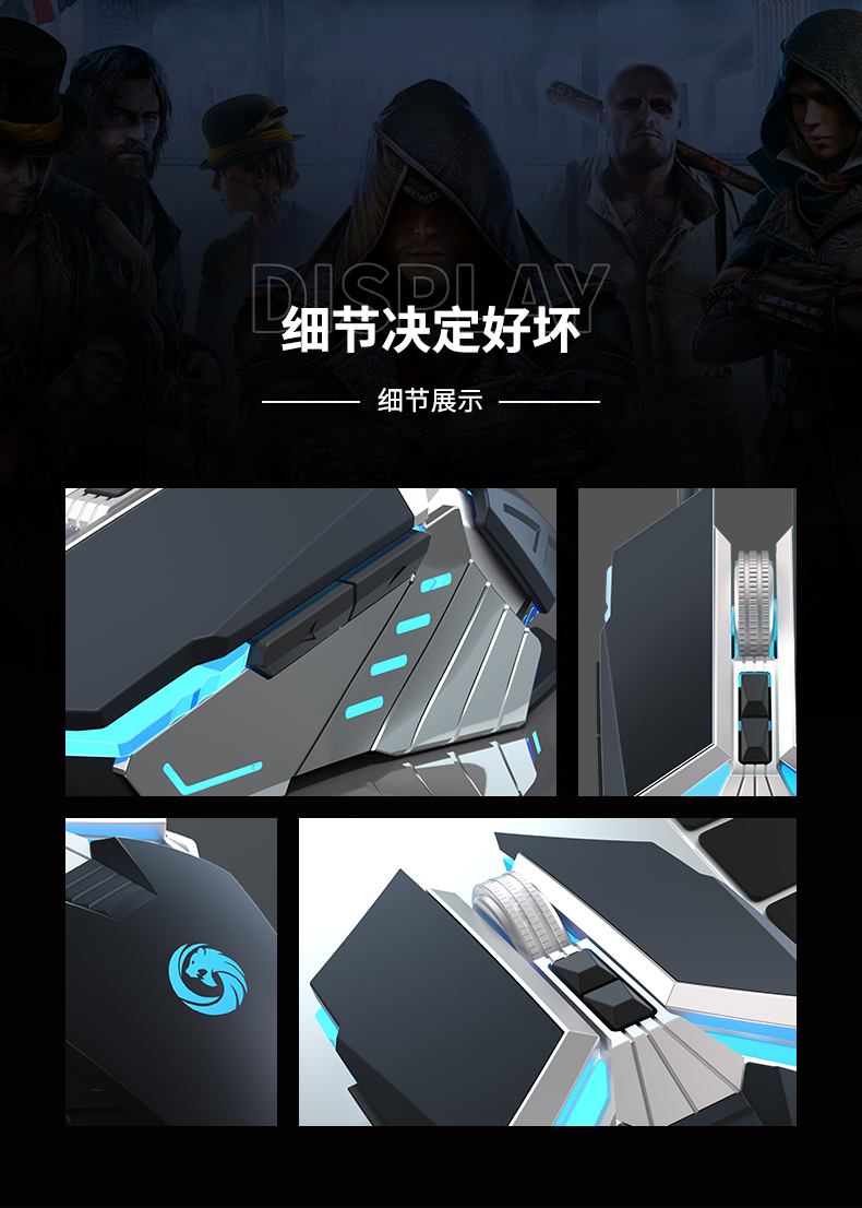 多豪D1 电竞鼠标有线 电脑台式笔记本家用办公网咖网吧金属lol吃鸡cf游戏专用USB男女生通用 宏编程机械鼠标