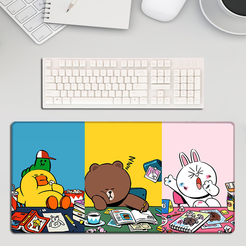 卡通可爱布朗熊鼠标垫可妮兔男生女办公笔记本桌垫超大号锁边加厚