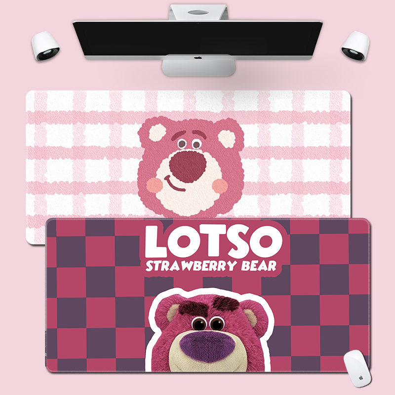 草莓熊超大鼠标垫女生高颜值动漫卡通鼠标垫子可爱定制电脑办公写字桌垫学生护腕锁边电竞游戏ins风键盘垫