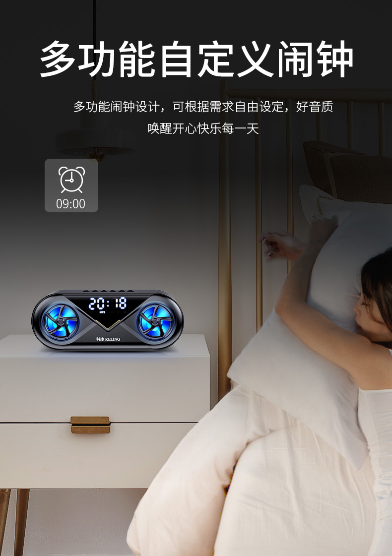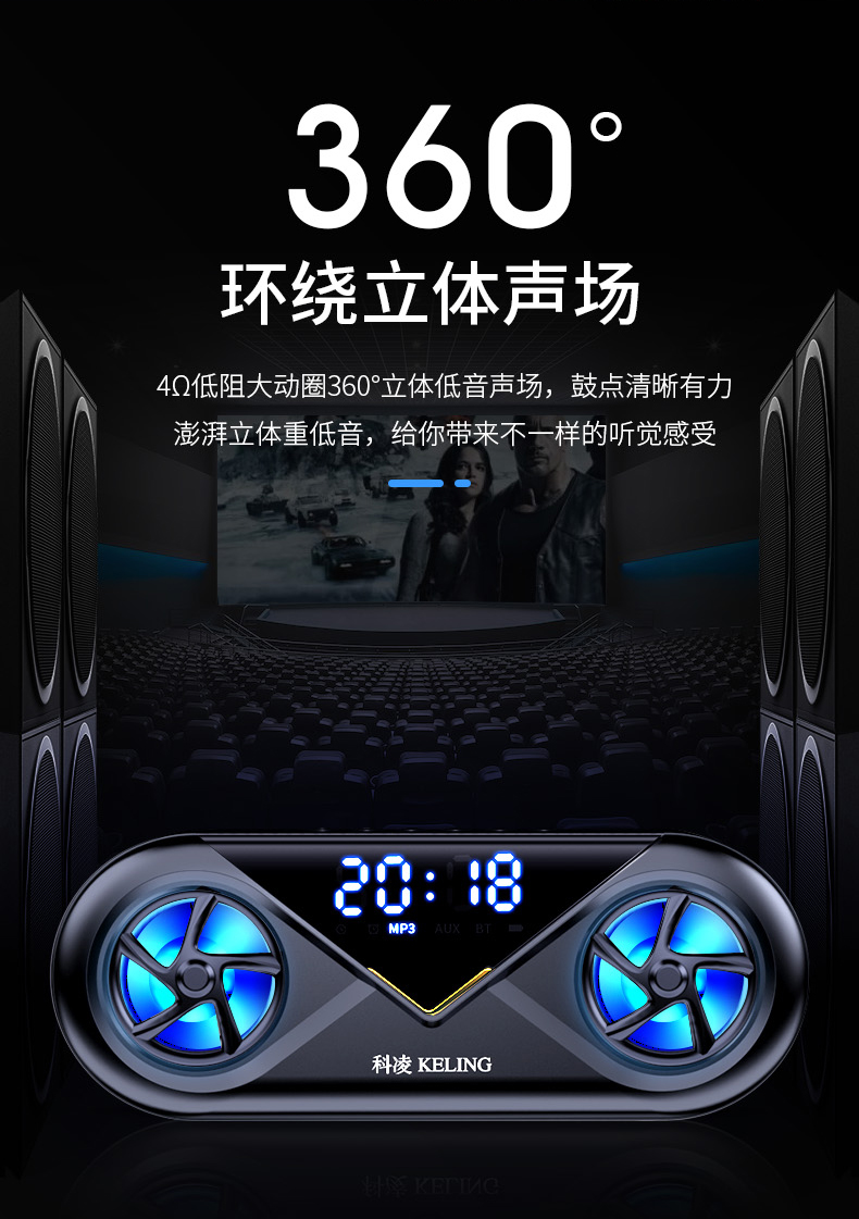 科凌无线蓝牙音箱双喇叭大音量3D环绕家用闹钟小型迷你音响手机超重低音炮便携式户外车载收款收钱语音播报器