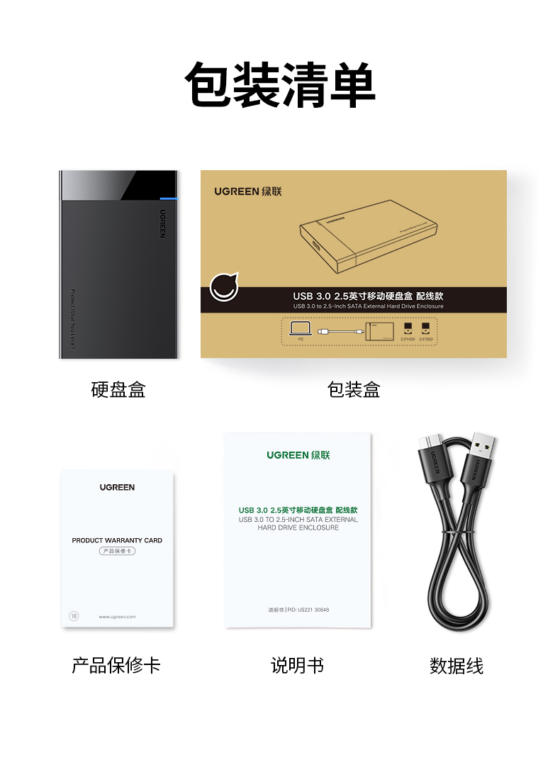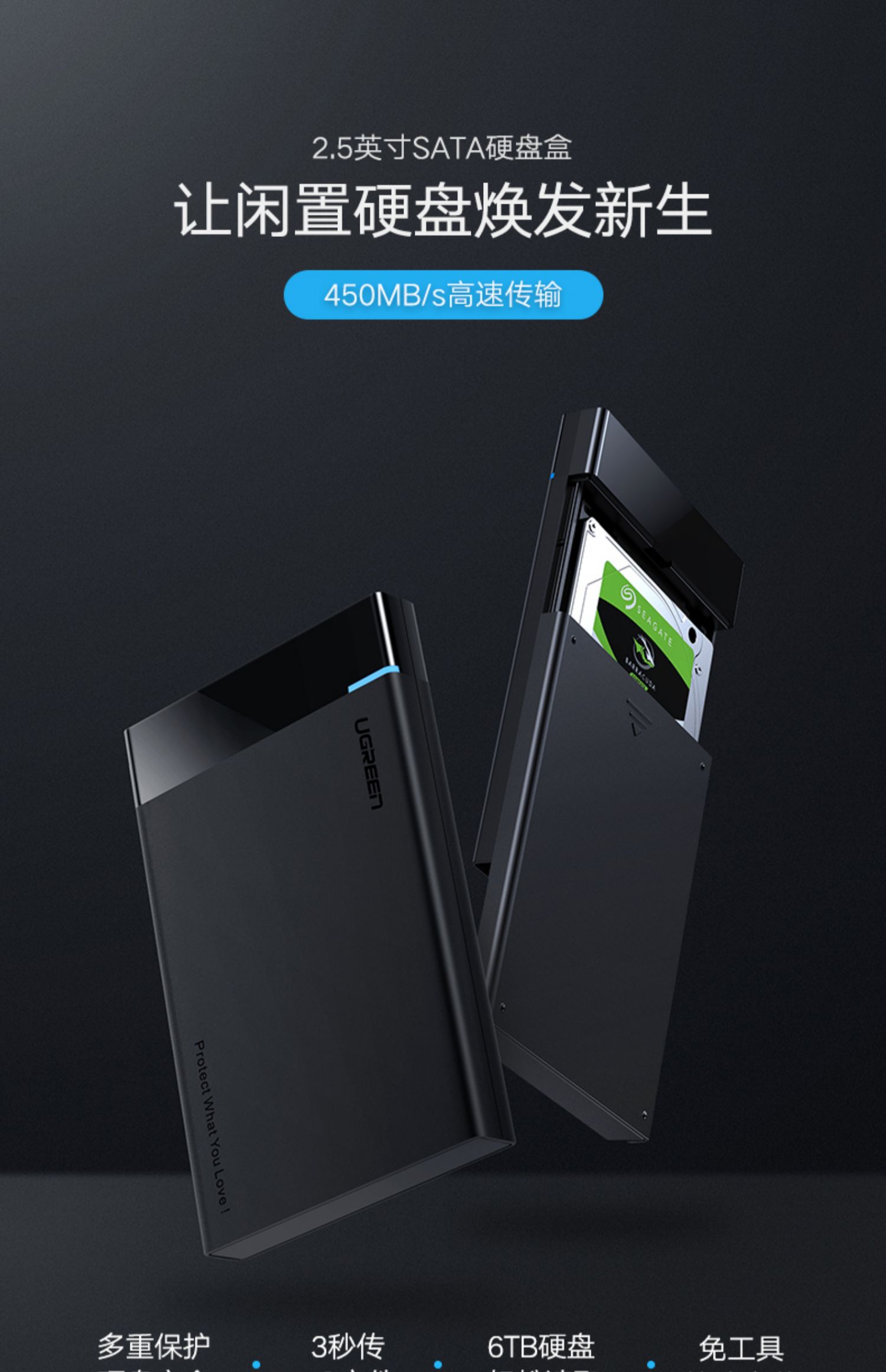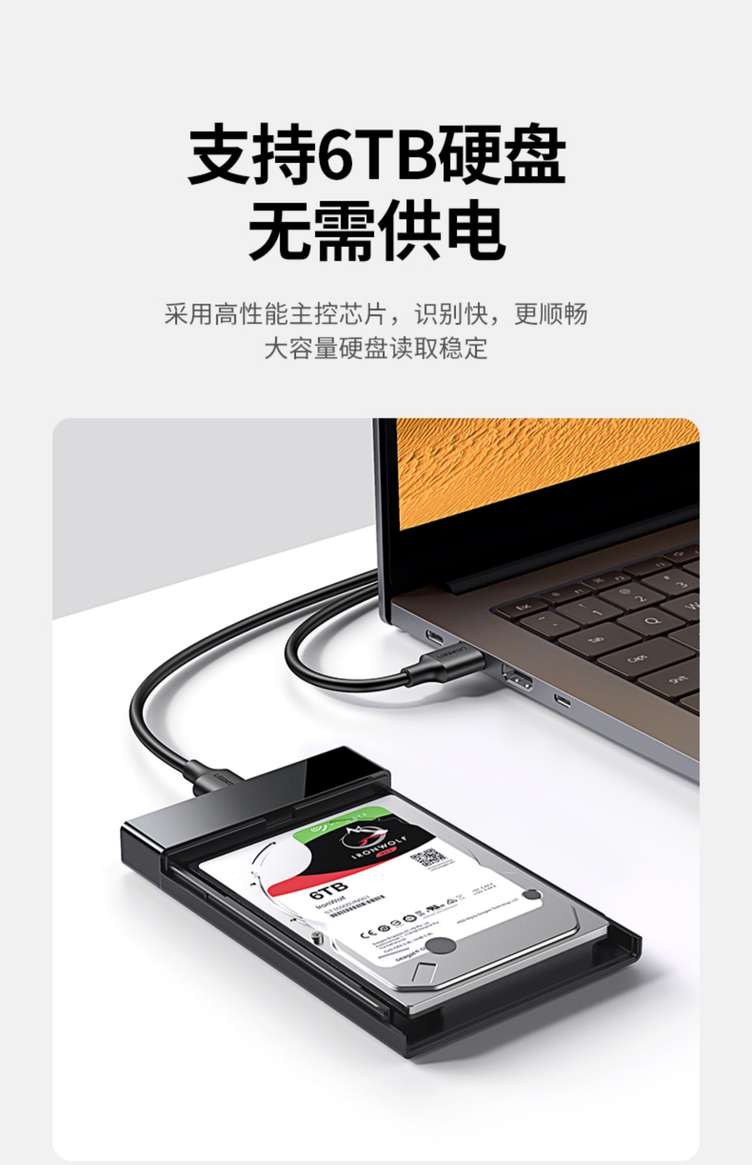 • 商品名称:绿联移动硬盘盒2.5英寸通用外接usb3.0/3.1type-c外置读取保护壳台式机笔记本电脑sata机械ssd固态改硬盘盒子