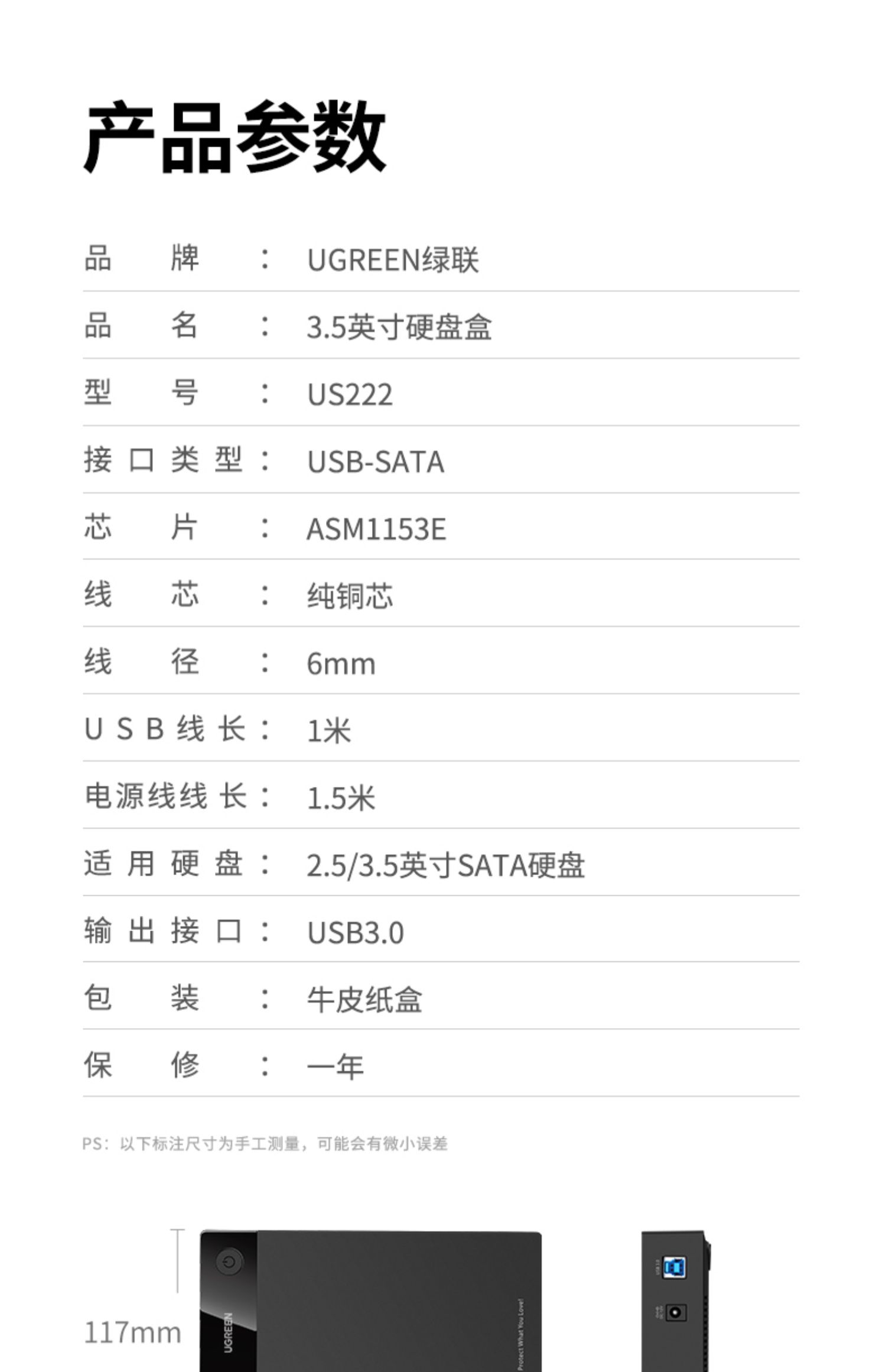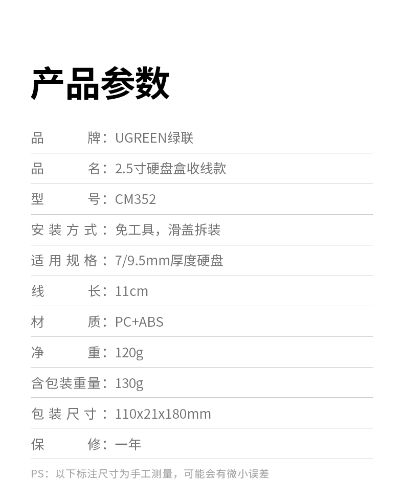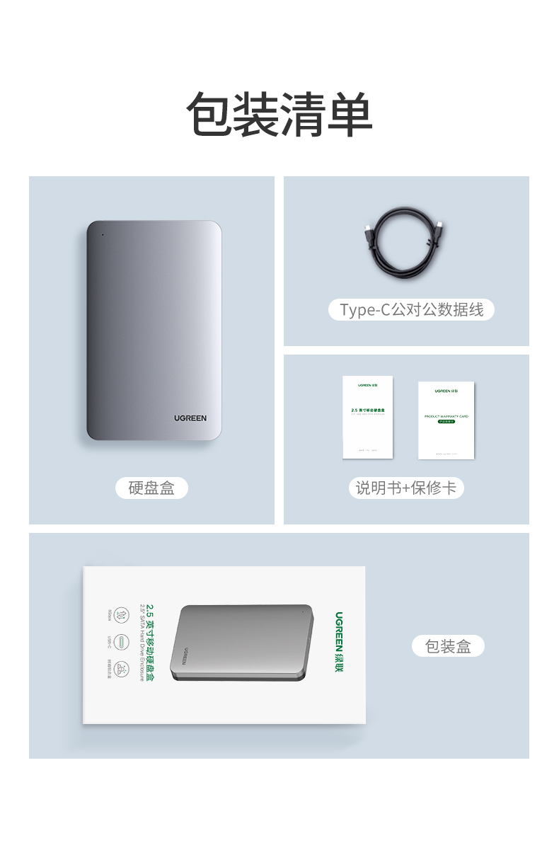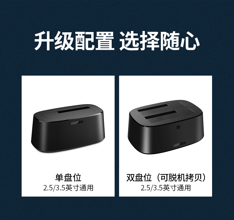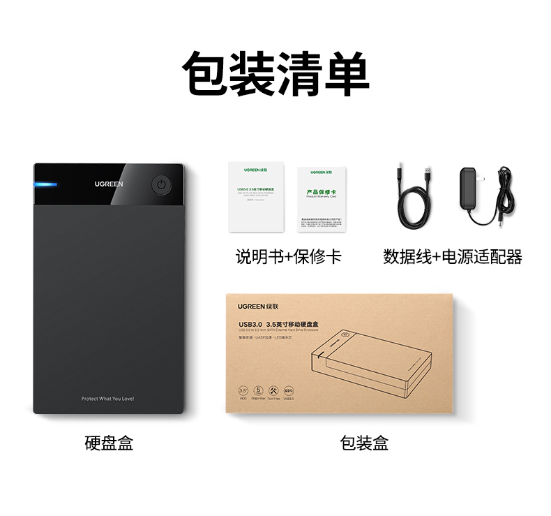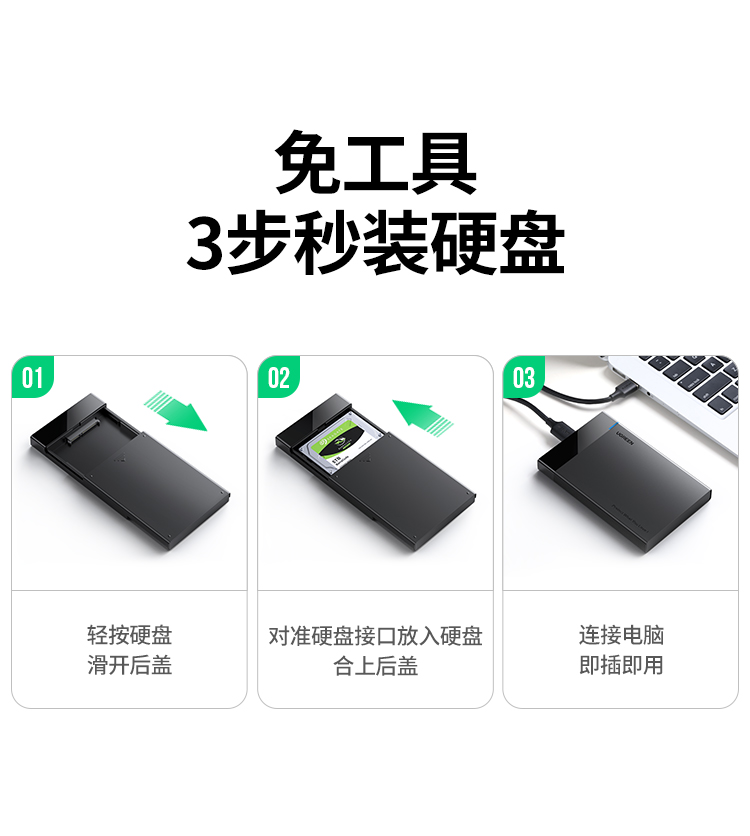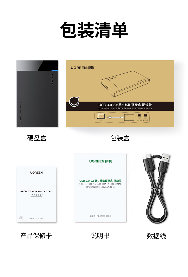 • 商品名称:绿联硬盘盒3.5/2.5英寸usb3.0通用台式机笔记本电脑外置sata读取器保护壳底座固态ssd机械改移动硬盘外接盒子