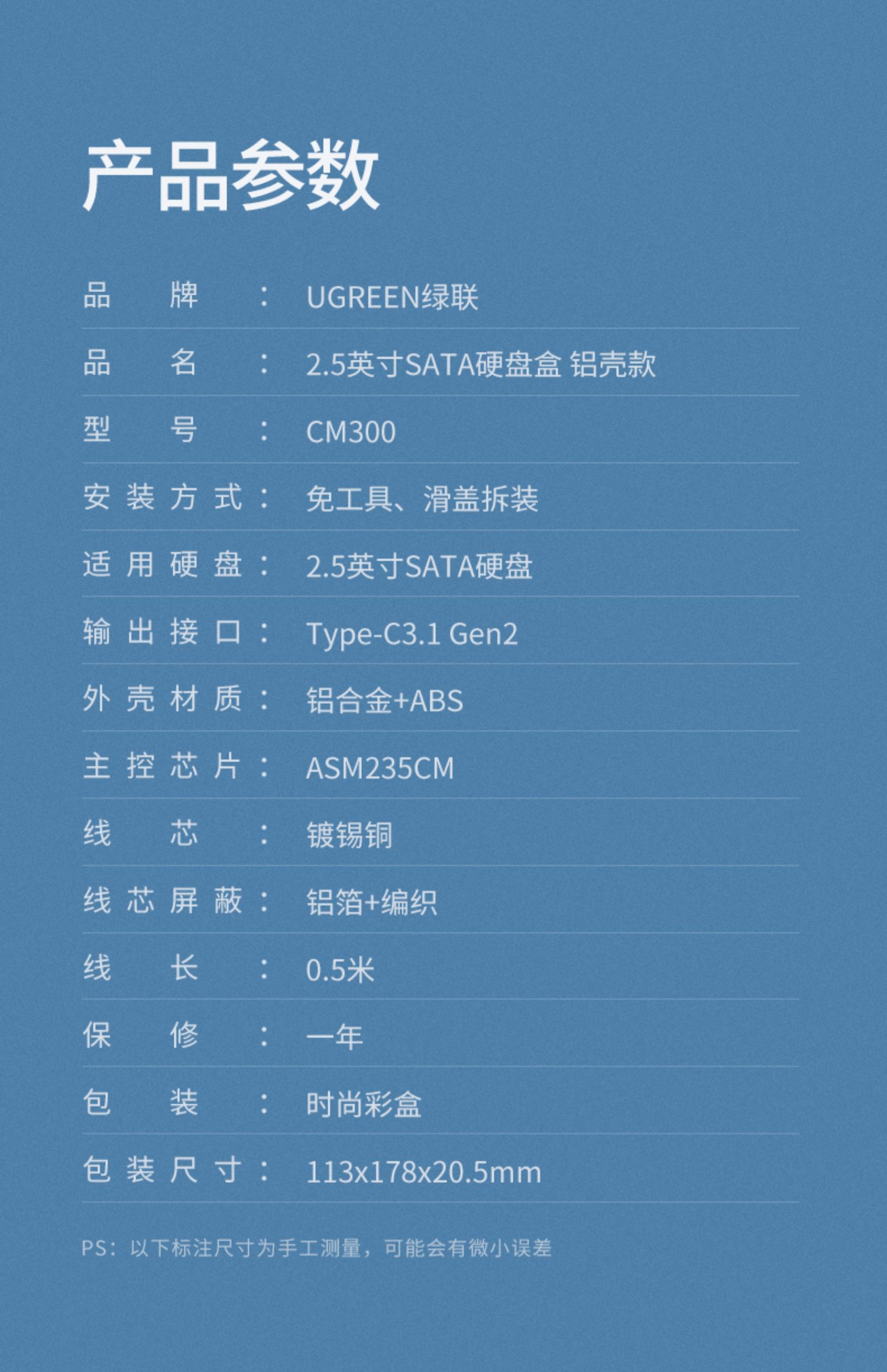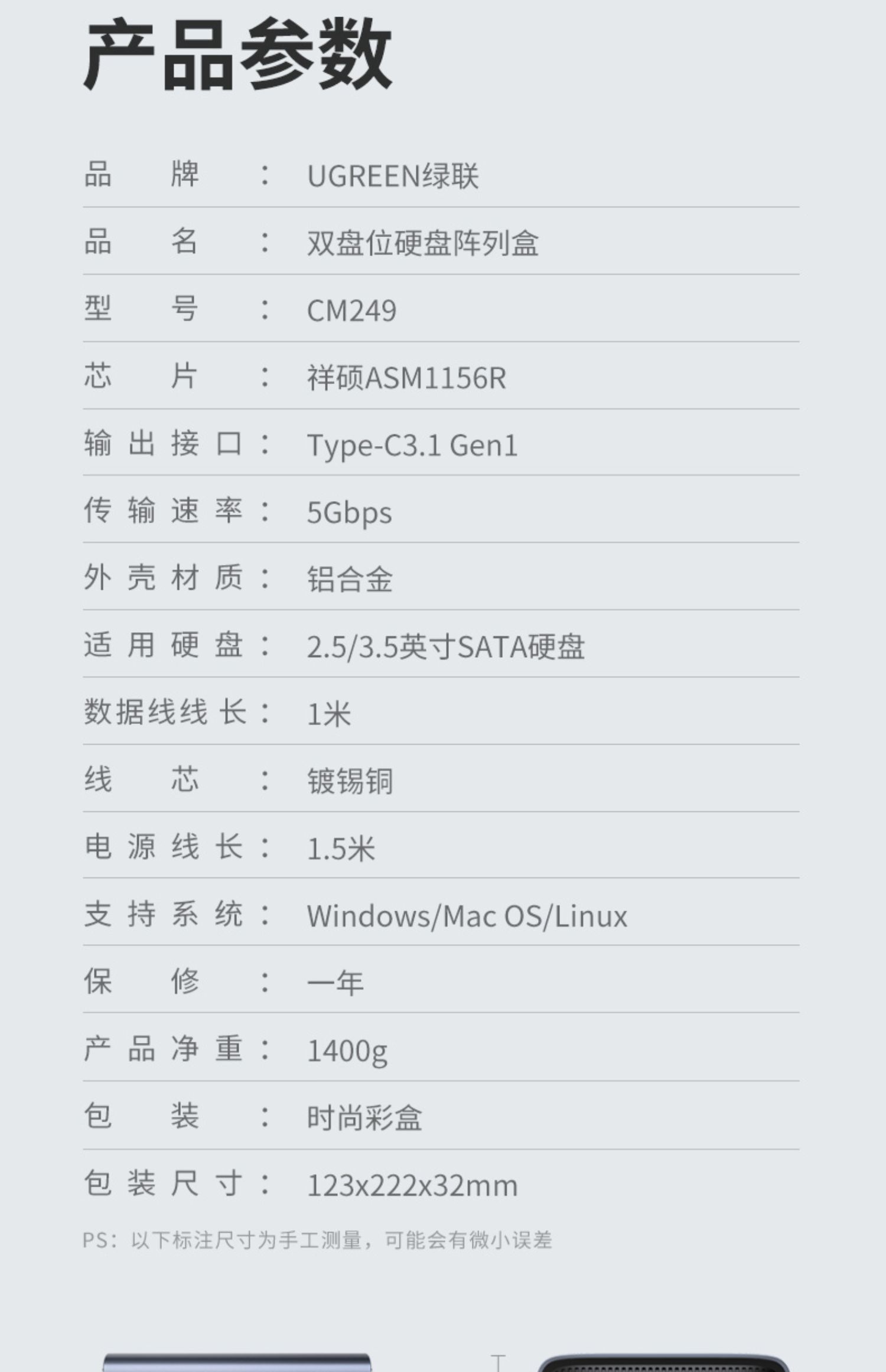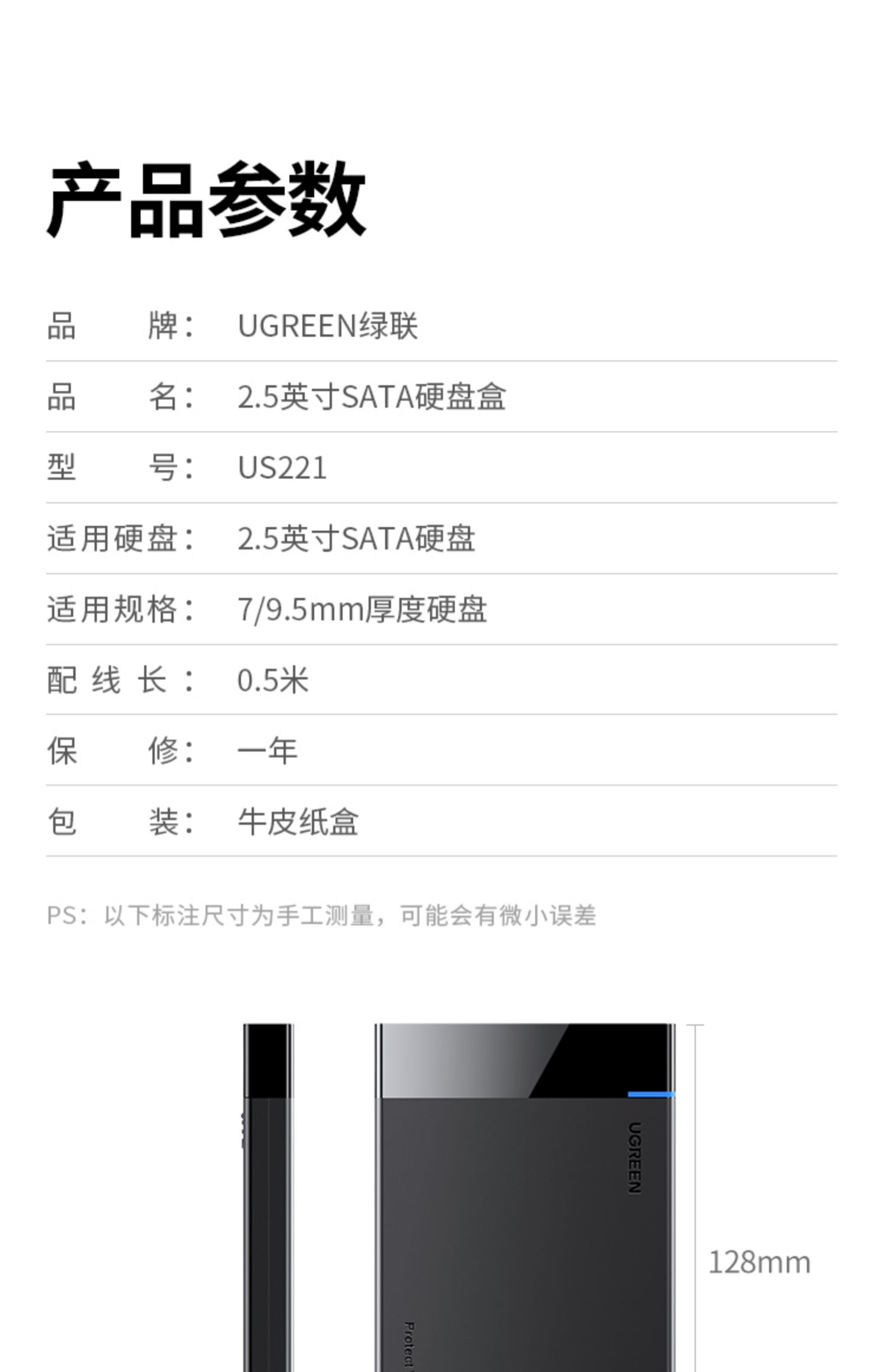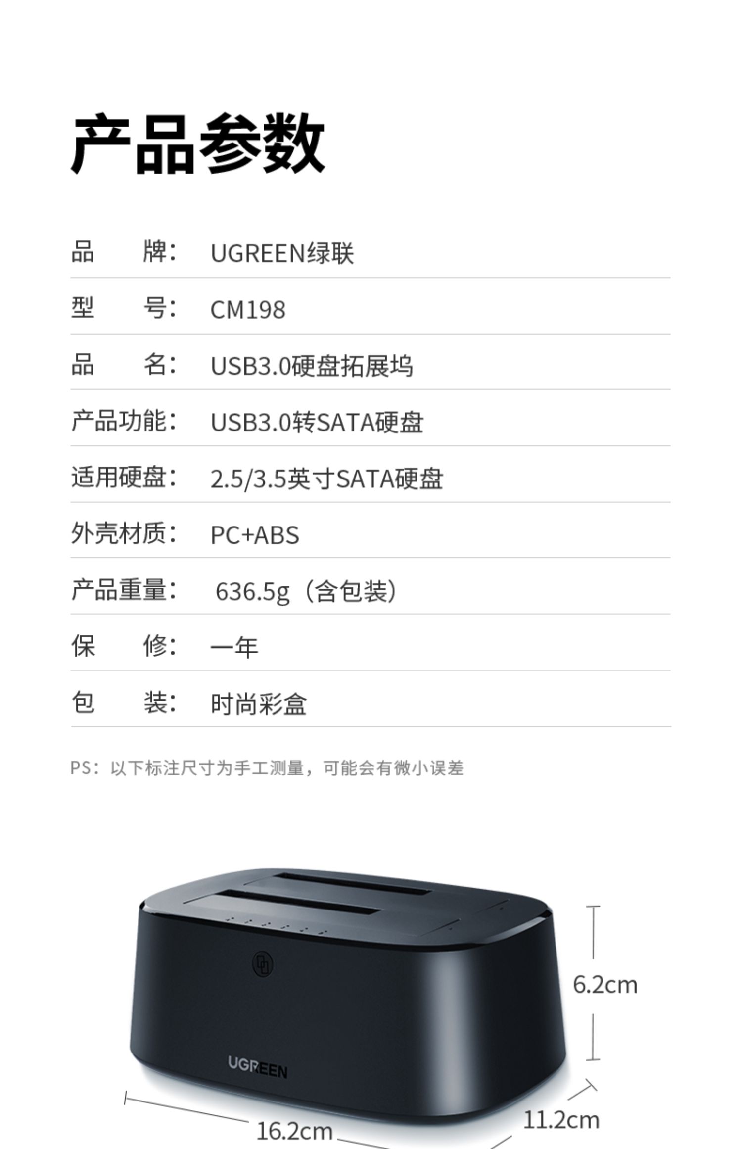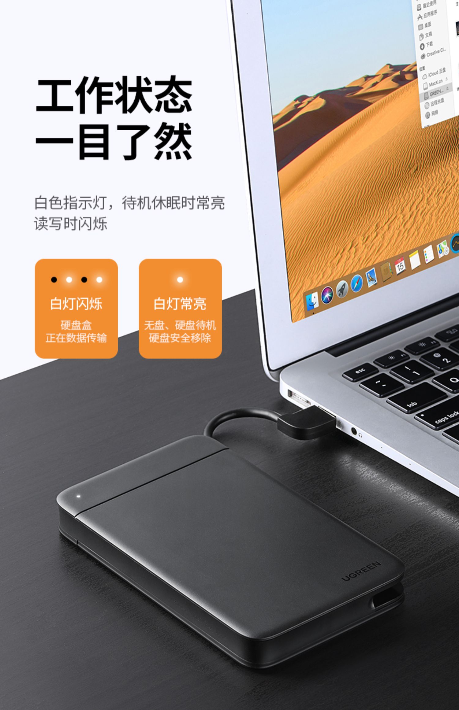 • 商品名称:绿联硬盘盒3.5/2.5英寸usb3.0通用台式机笔记本电脑外置sata读取器保护壳底座固态ssd机械改移动硬盘外接盒子