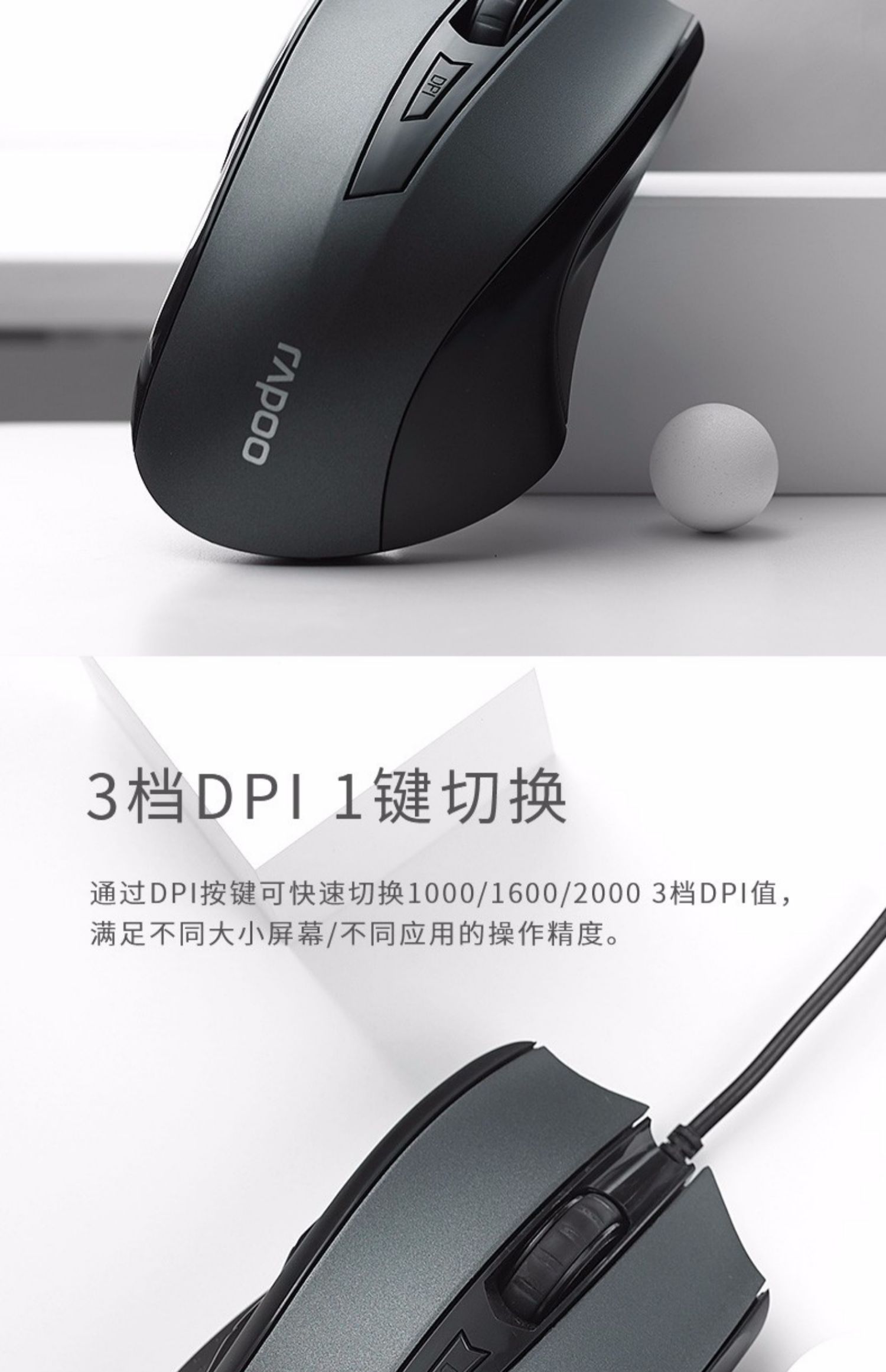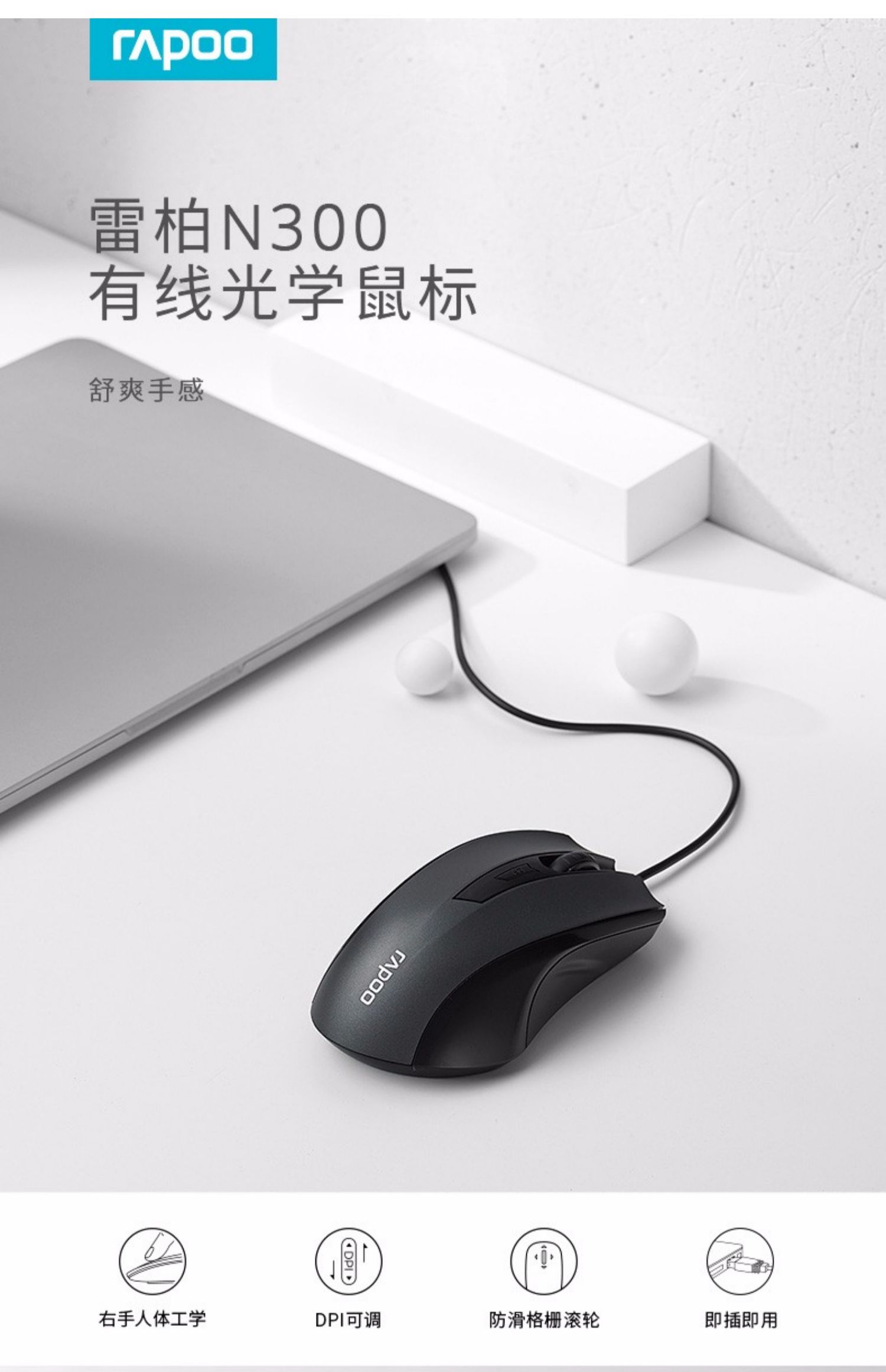 • 商品名称:雷柏N300有线游戏鼠标大手型DPI变速办公台式机笔记本电脑鼠标
