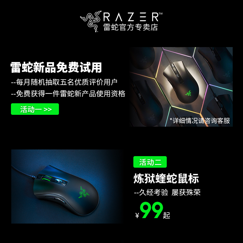 • 商品名称:雷蛇炼狱蝰蛇标准版V2迷你专业版有线鼠标游戏电脑电竞专用鼠标宏