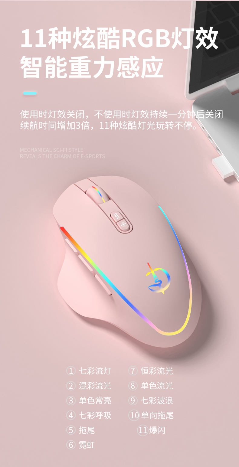 • 商品名称:无线鼠标静音可充电式RGB灯效游戏电竞适用小米联想华为苹果戴尔