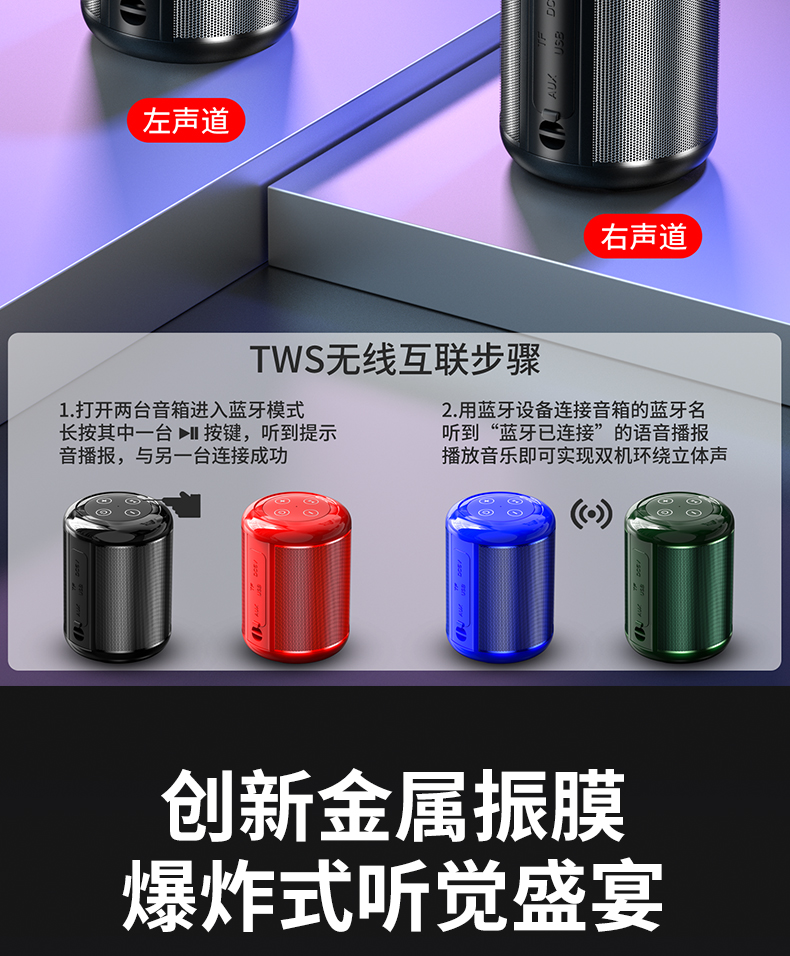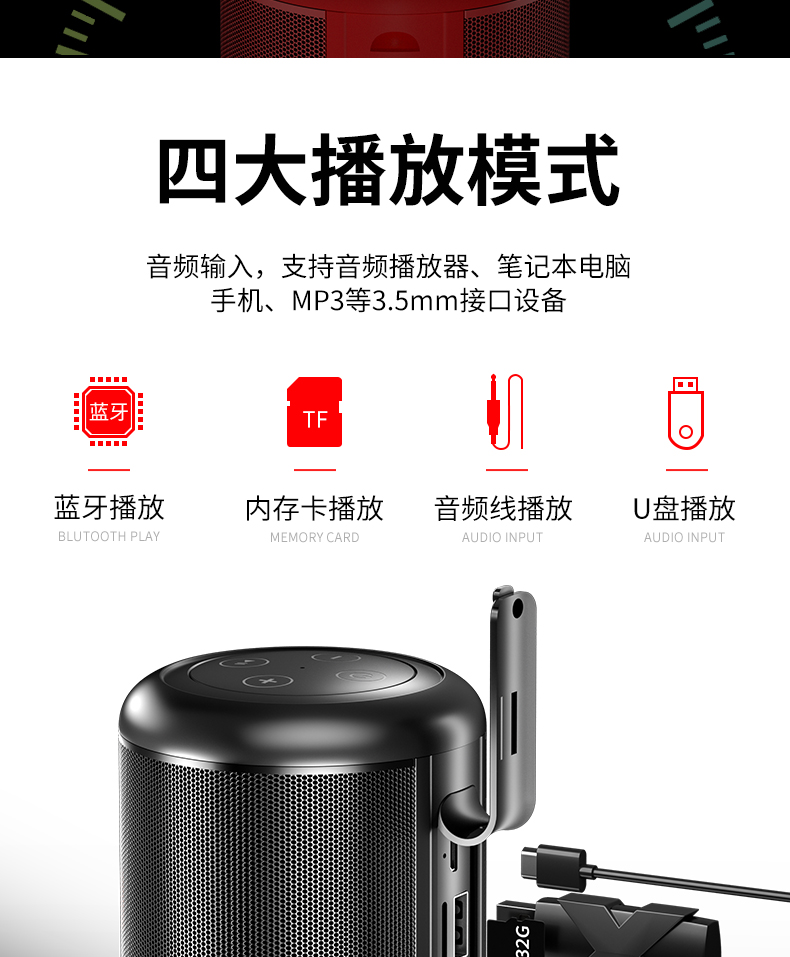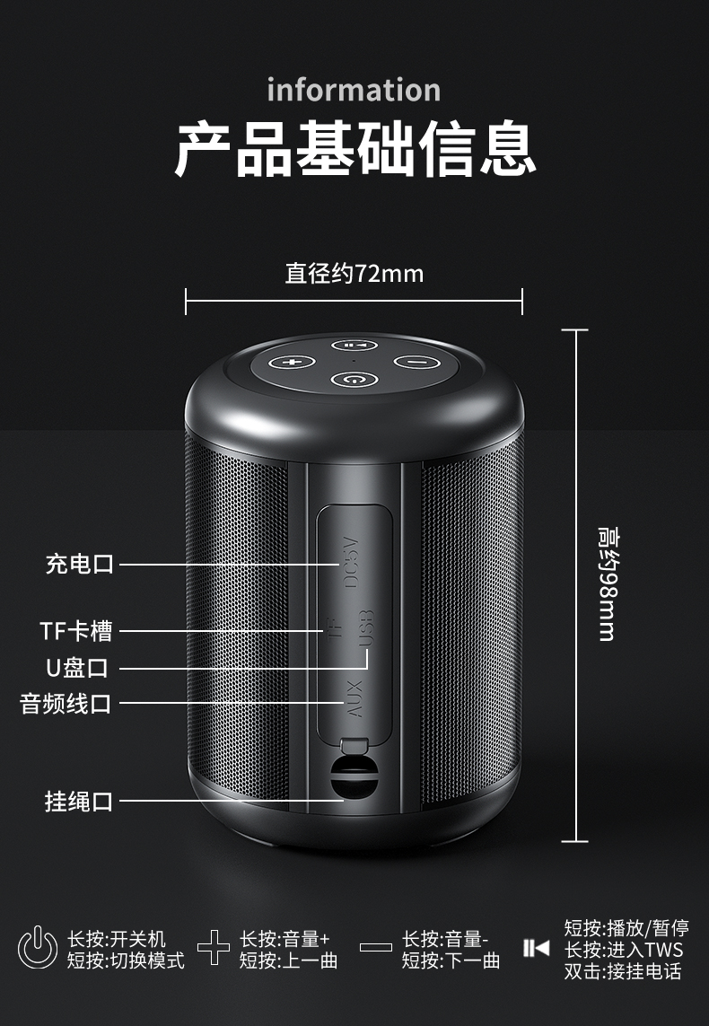 • 商品名称:蓝牙音响智能无线小音箱高音质家用户外车载大音量重低音炮便携式插卡U盘小型迷你收音机收款微信收钱播放器