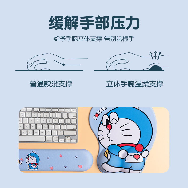 • 商品名称:哆啦A梦屁屁鼠标垫硅胶填充加厚护腕垫高颜值女生办公艺术小号个性创意男生电竞游戏键盘手托一体腕托新款
