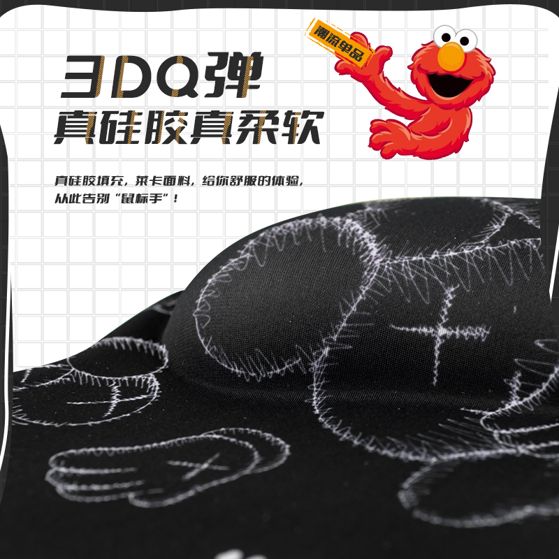 芝麻街kaws硅胶创意可爱鼠标垫护腕女生软垫男生新款加大办公桌垫简约ins风电脑键盘手托腕卡通软垫立体3D胸