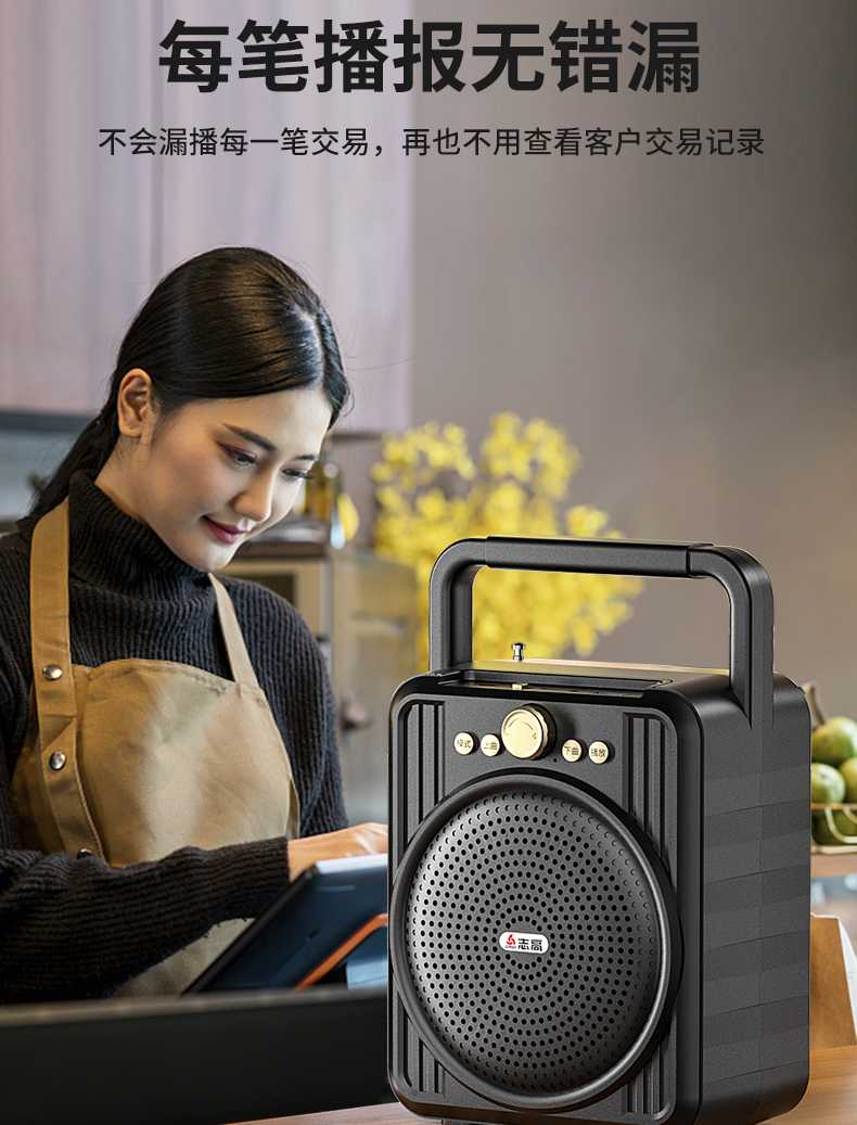 菜市场店铺户外收款音响支付宝双喇叭大音量微信二维码收钱付款专用语音播报神器商家用无线蓝牙小型音箱志高