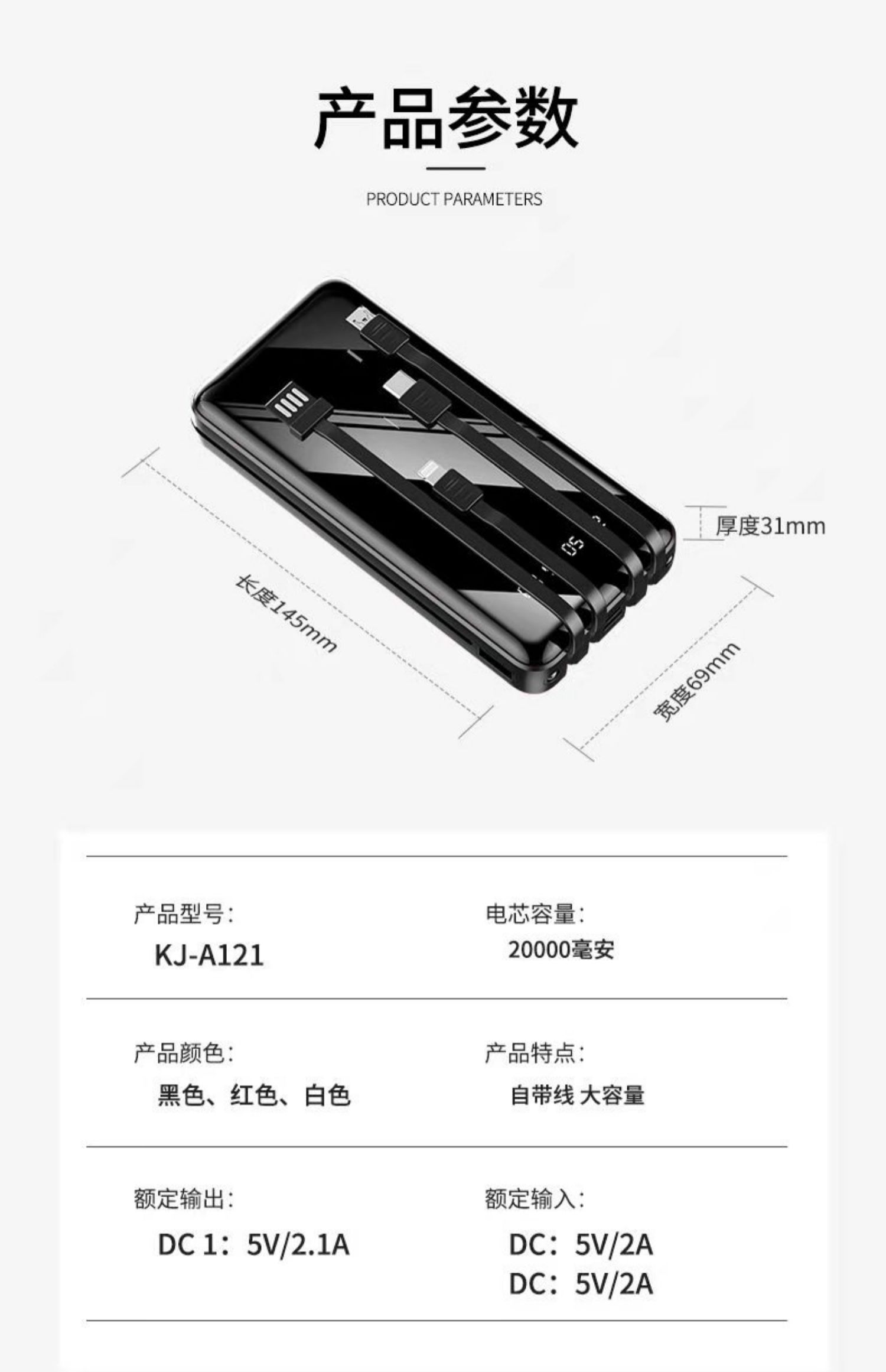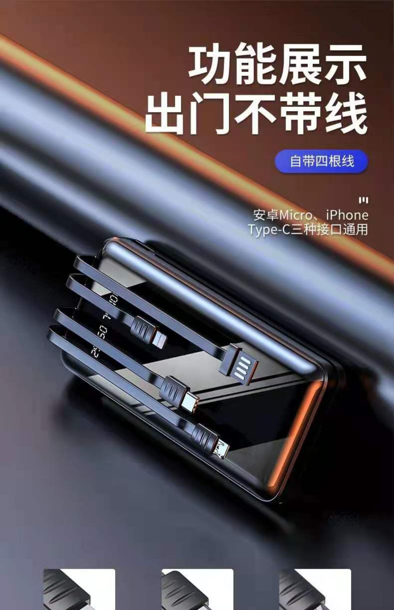 • 商品名称:2021新款原装正品20000毫安快充自带充电宝显示屏四线超薄便携4