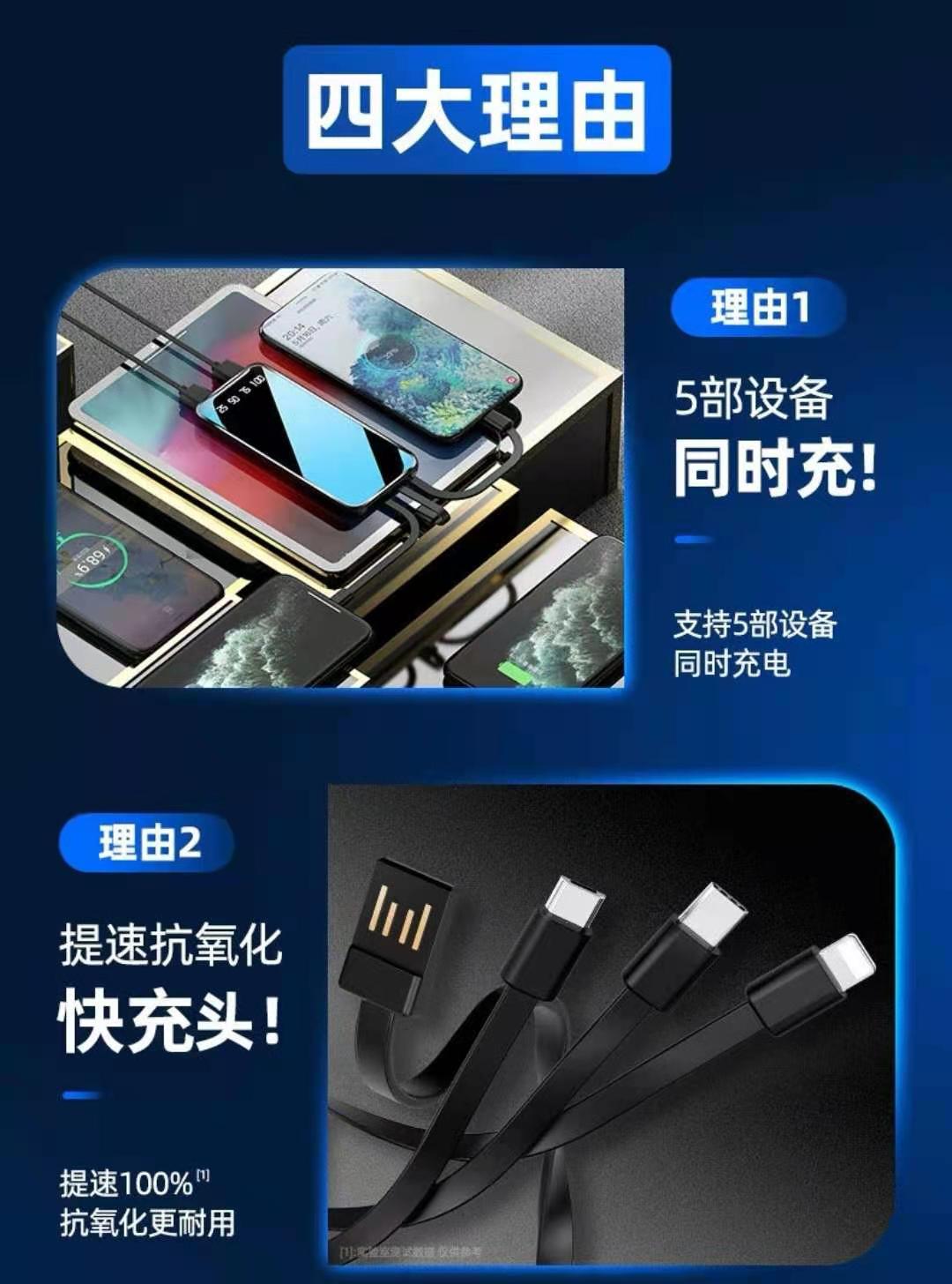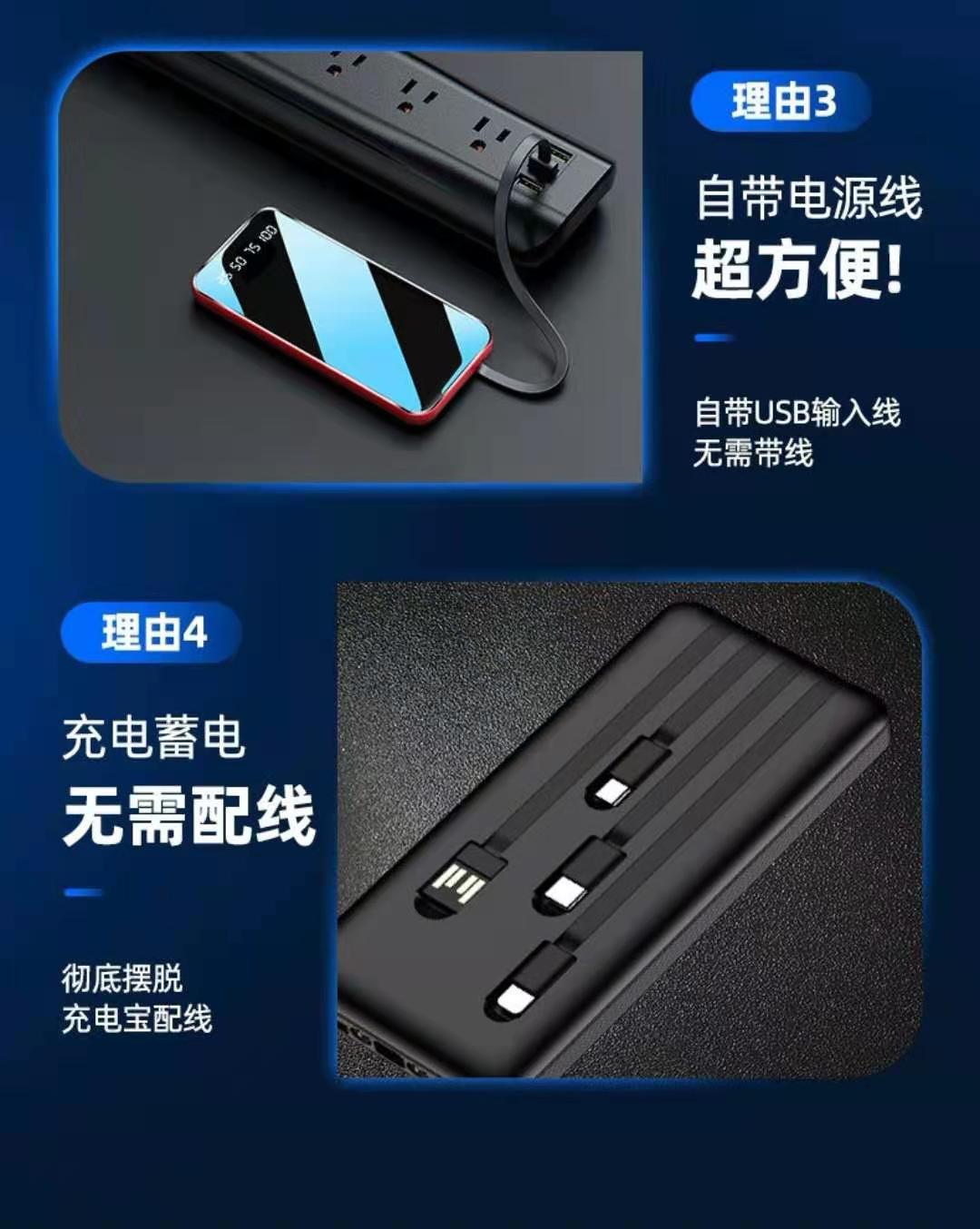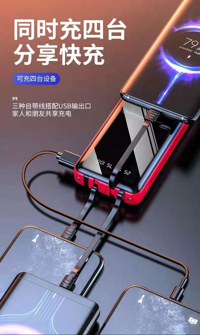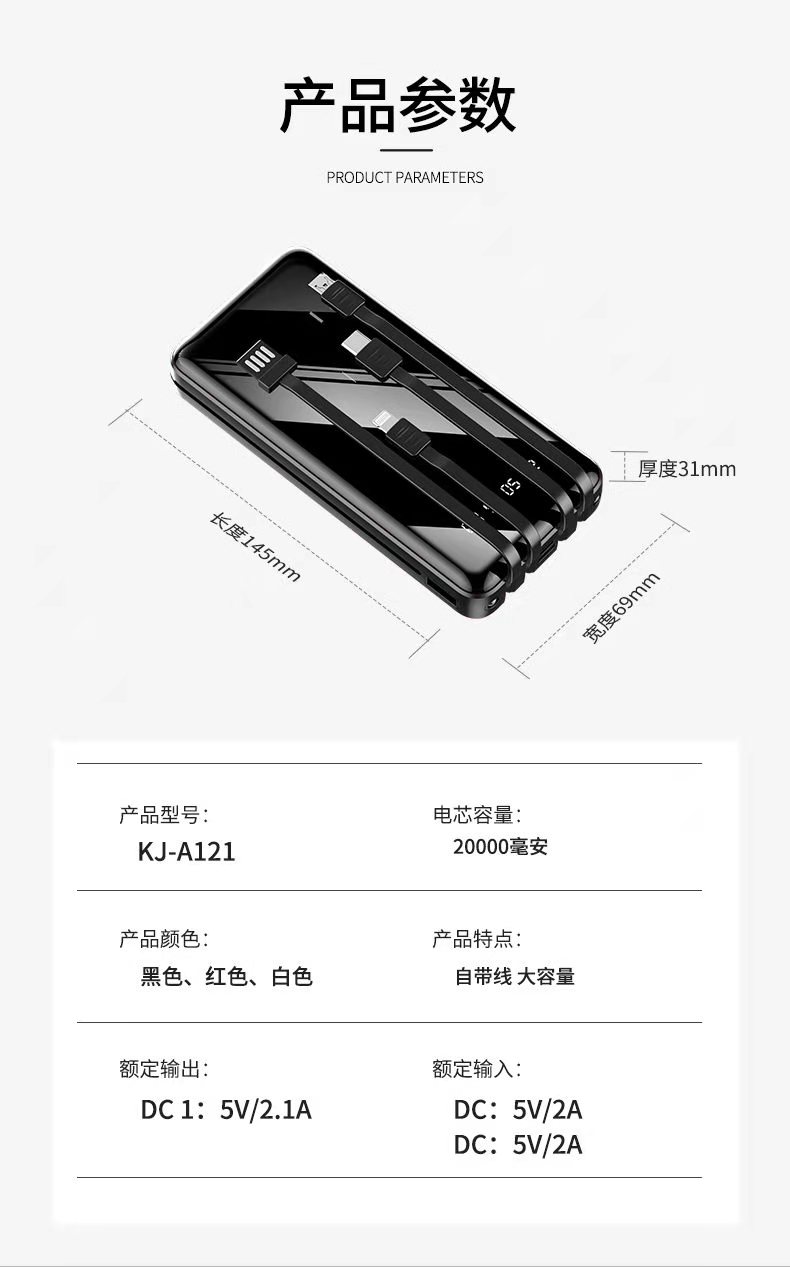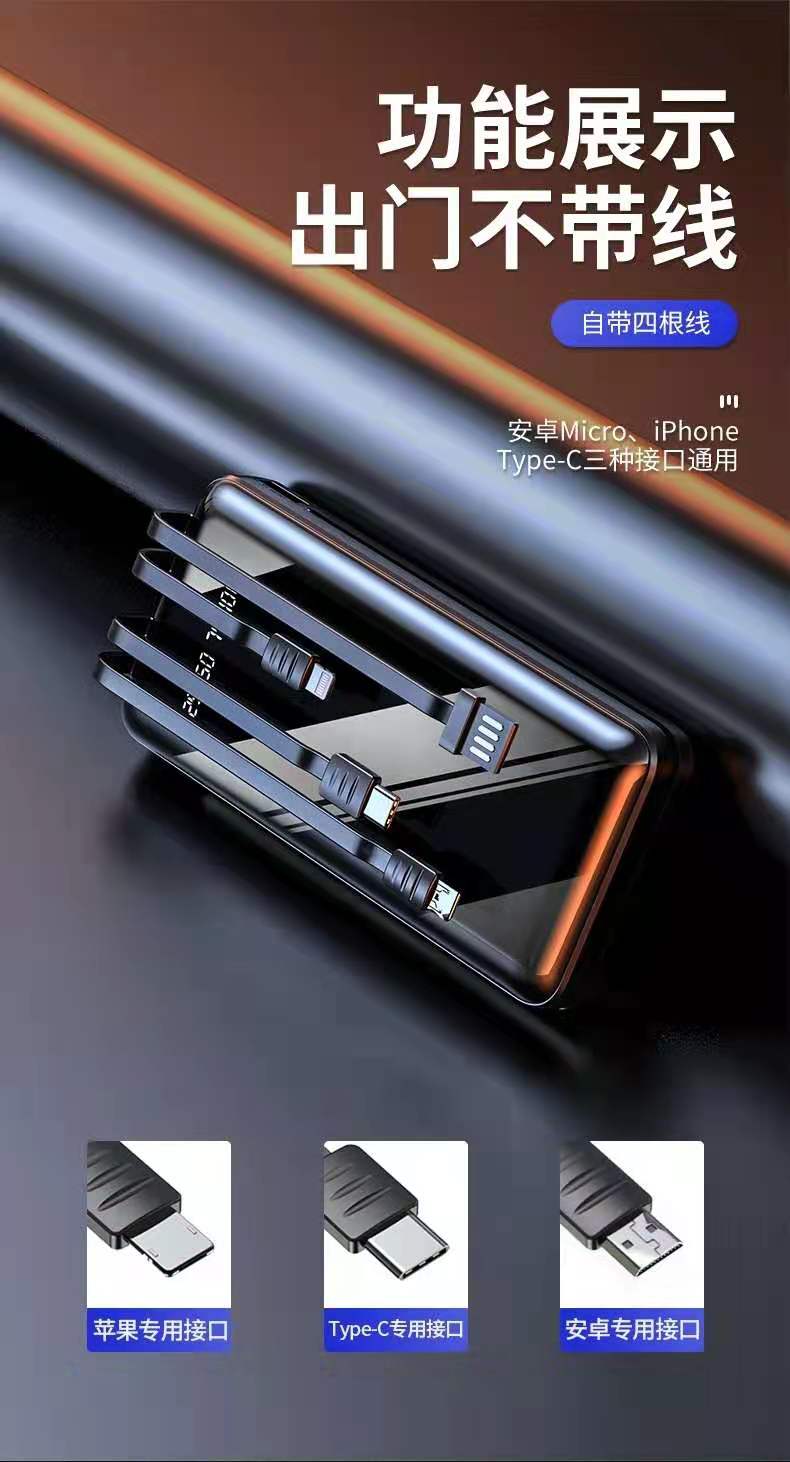 • 商品名称:2021新款原装官方正品20000毫安快充充电宝LED显示屏四线超薄5