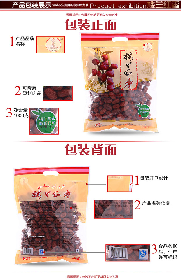 • 商品名称:新疆特产楼兰红枣若羌灰枣特级1000g和田大枣甜吊干孕妇零食营养