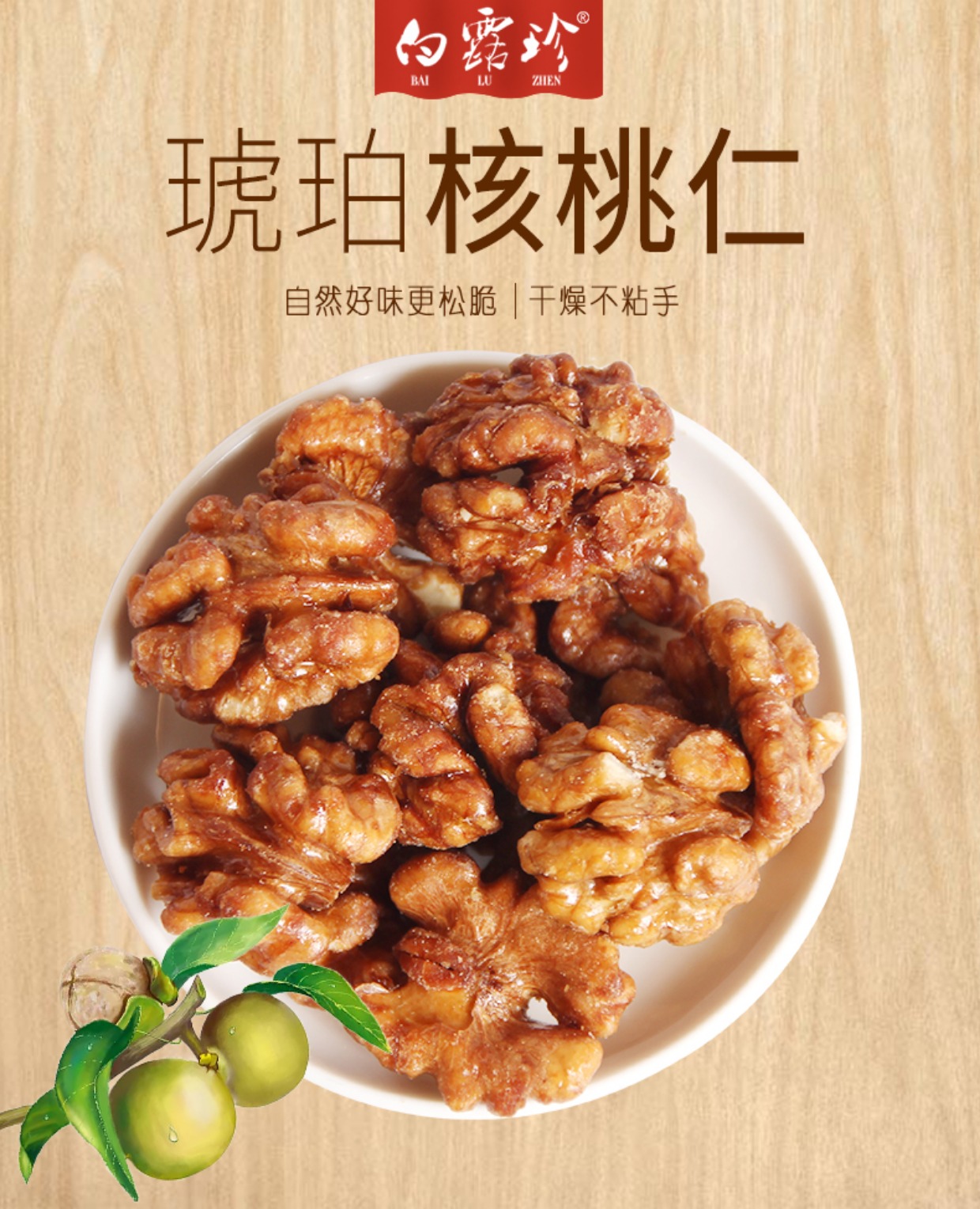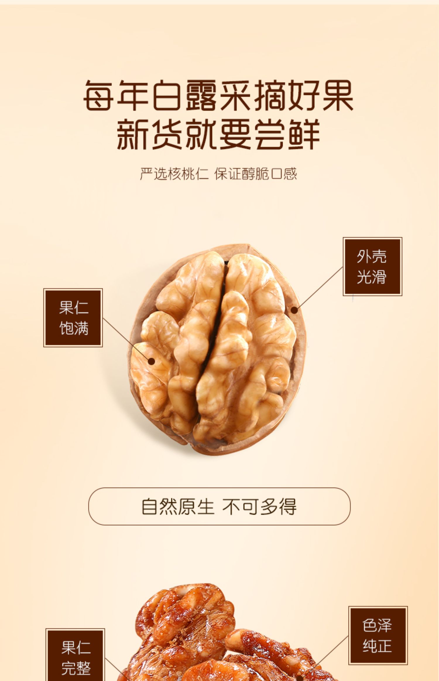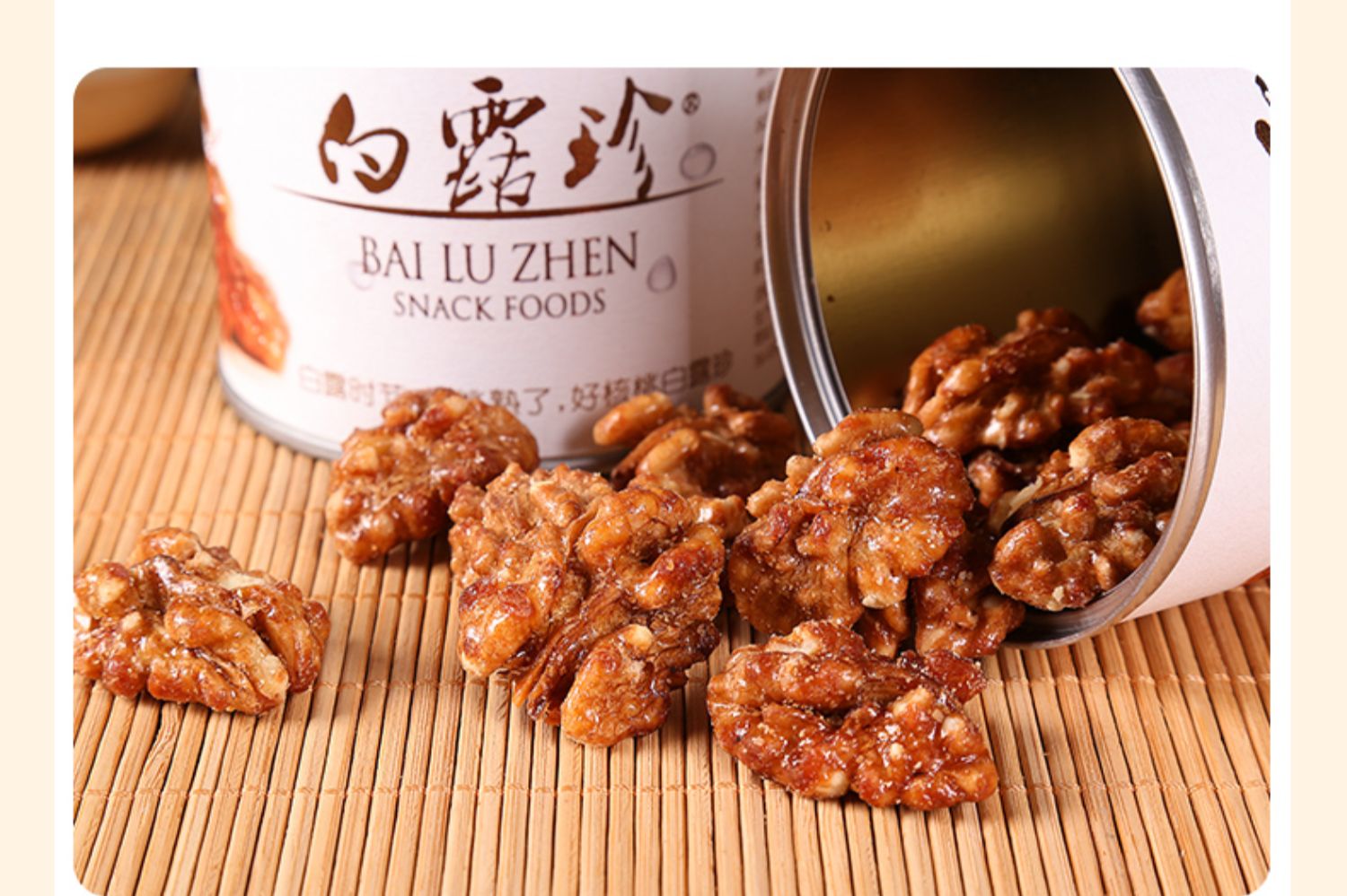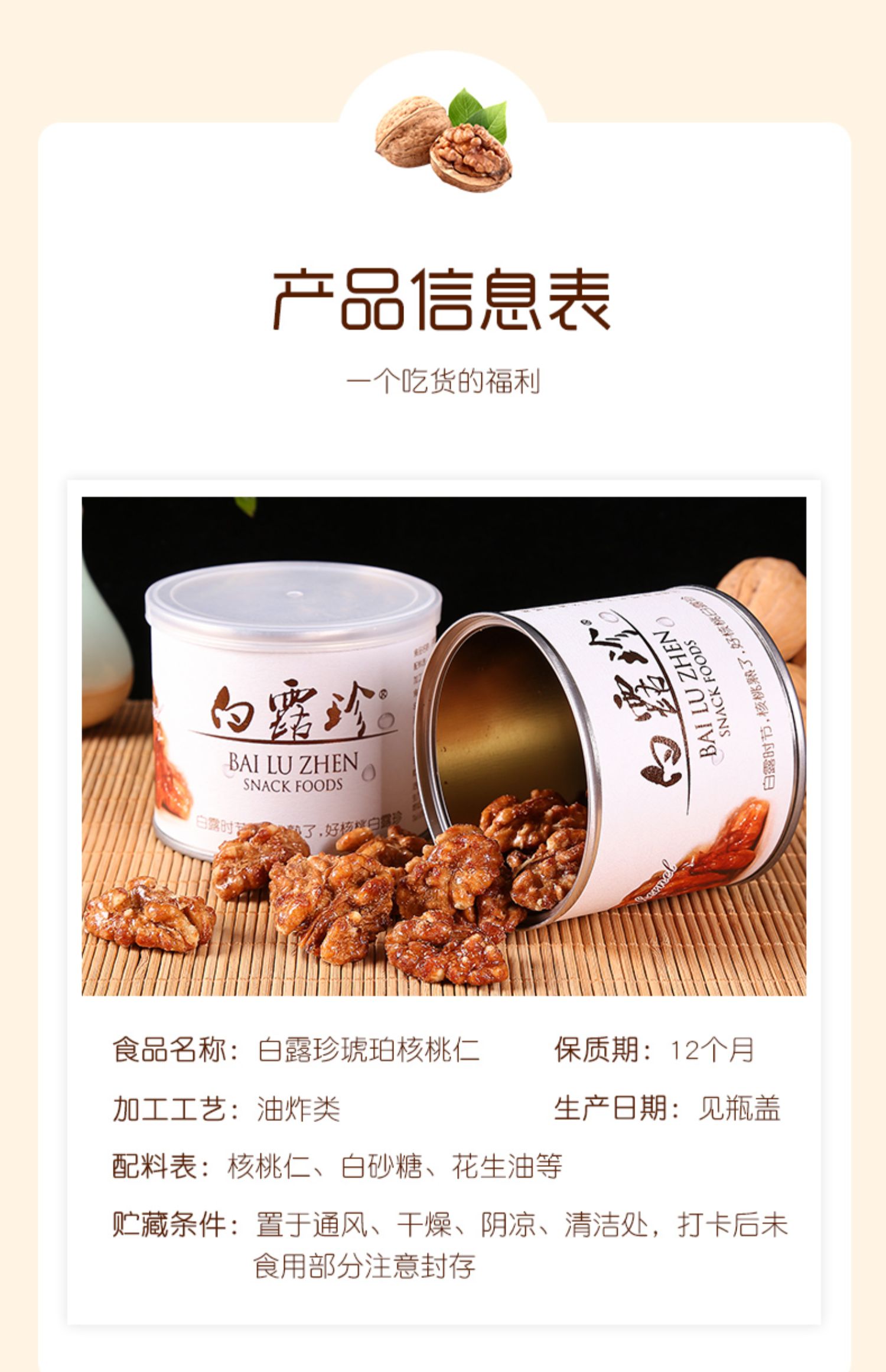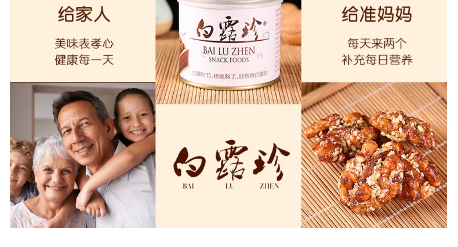 • 商品名称:白露珍琥珀核桃仁100g*3真空铁罐装休闲零食坚果学生孕妇工作办公