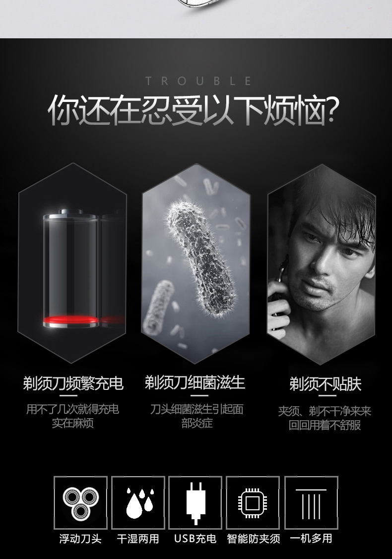 • 商品名称:4D电动剃须刀USB充电式刮胡刀男士全身水洗智能胡须刀正品胡子刀