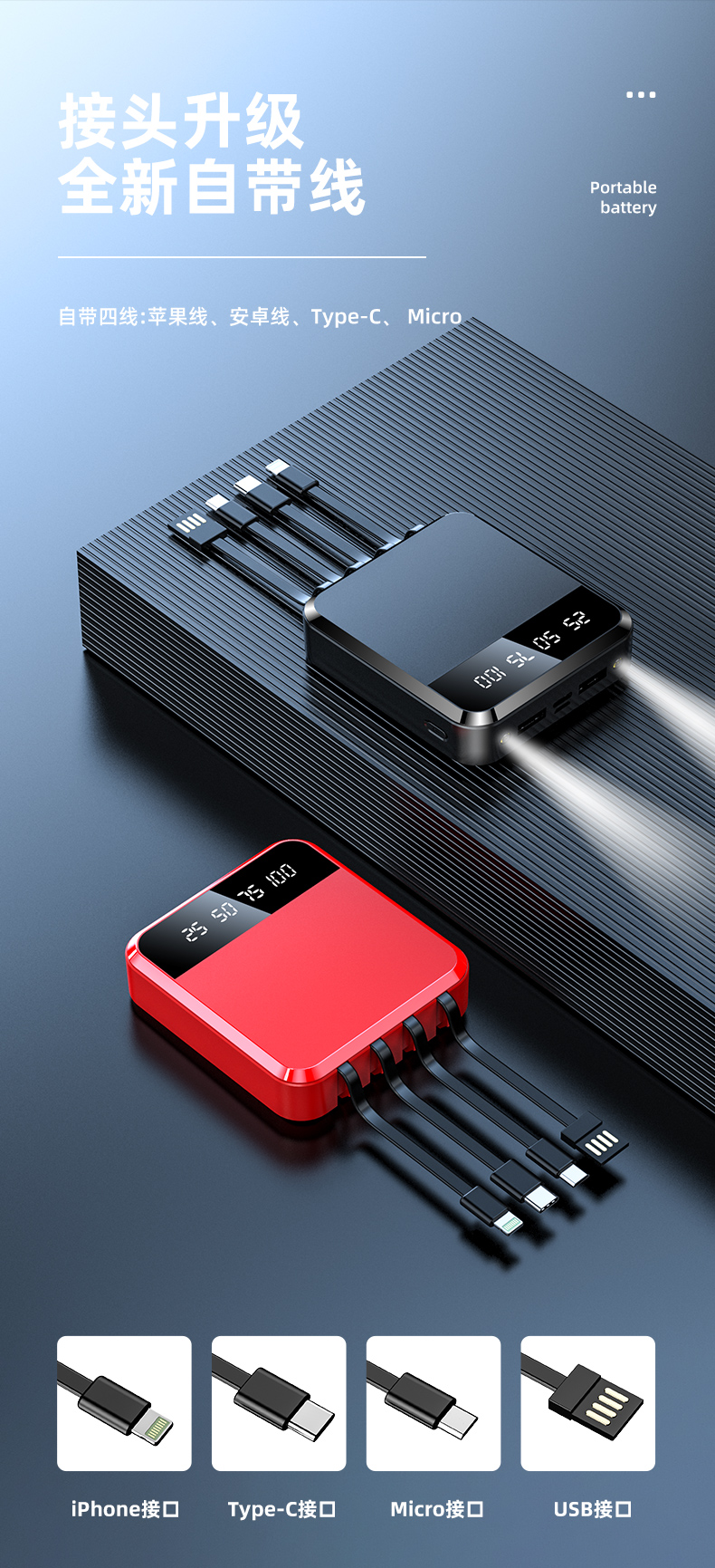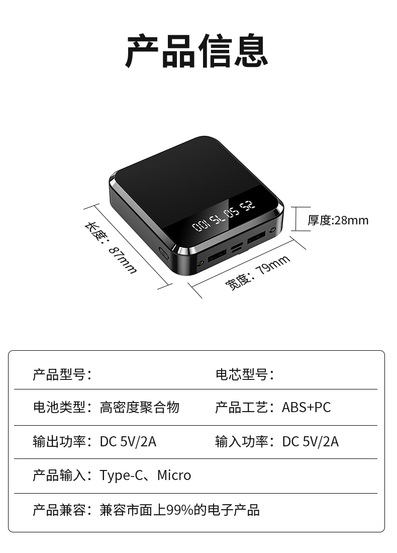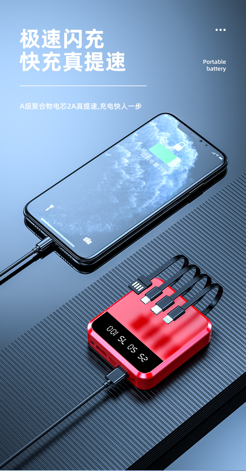 • 商品名称:充电宝20000毫安快充超薄小巧便携迷你大容量移动电源石