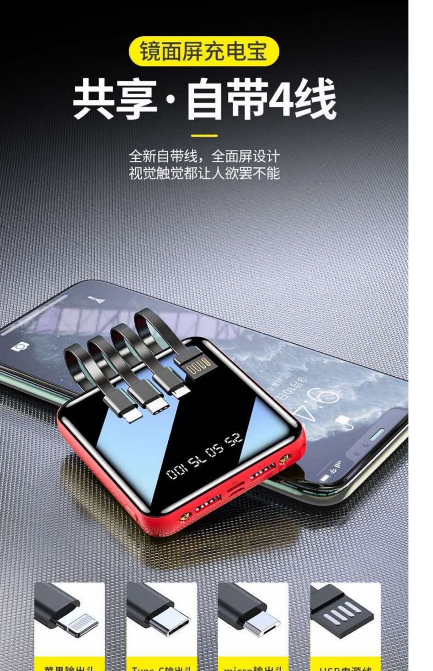 • 商品名称:充电宝20000毫安超大容量轻薄迷你便携小巧手机专用快充通用适用苹果vivo华为oppo通用正品超大耐用100000