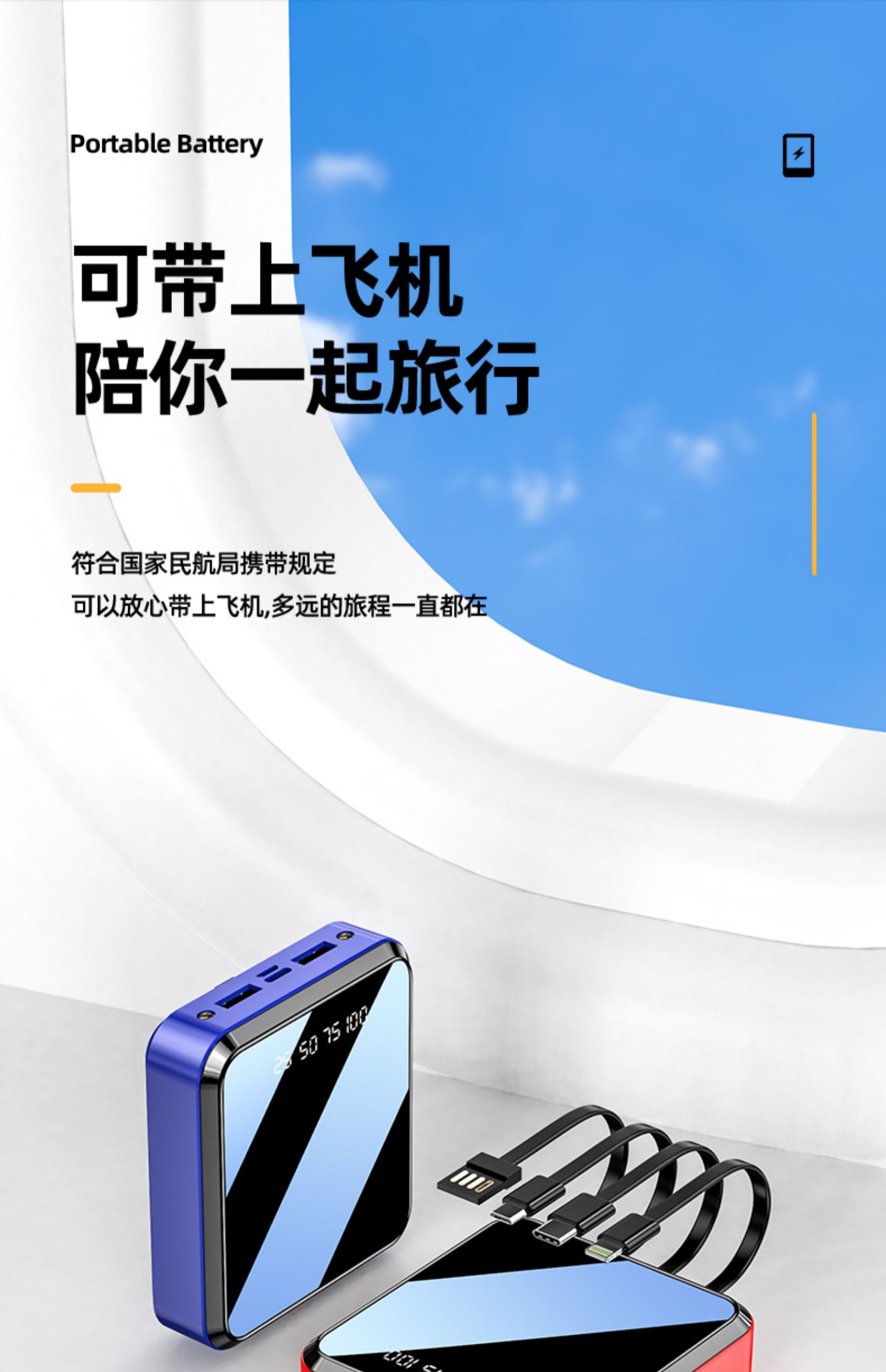 • 商品名称:充电宝20000毫安超大容量轻薄迷你便携小巧手机专用快充通用适用苹果vivo华为oppo通用正品超大耐用100000