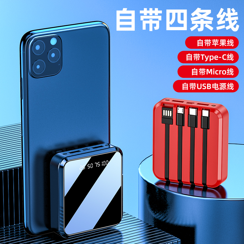 • 商品名称:自带线充电宝20000毫安快充超薄小巧便携迷你移动电源手机三合一适用苹果华为小米oppo专用vivo超大量1000000