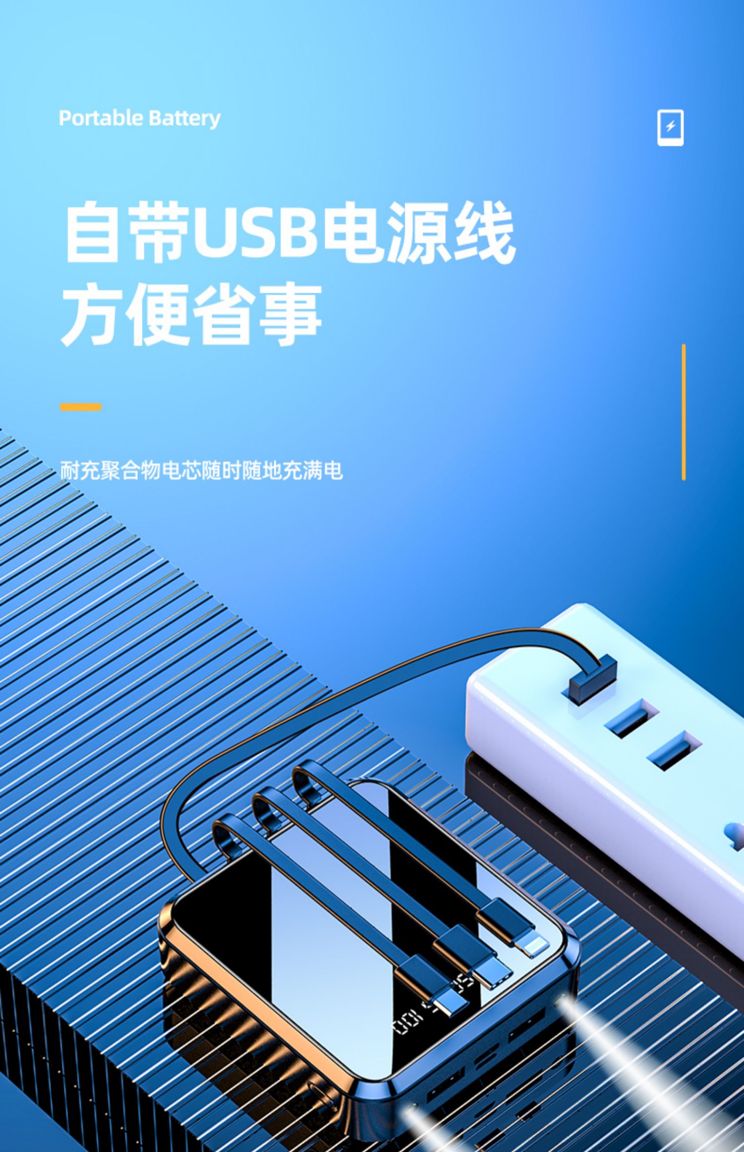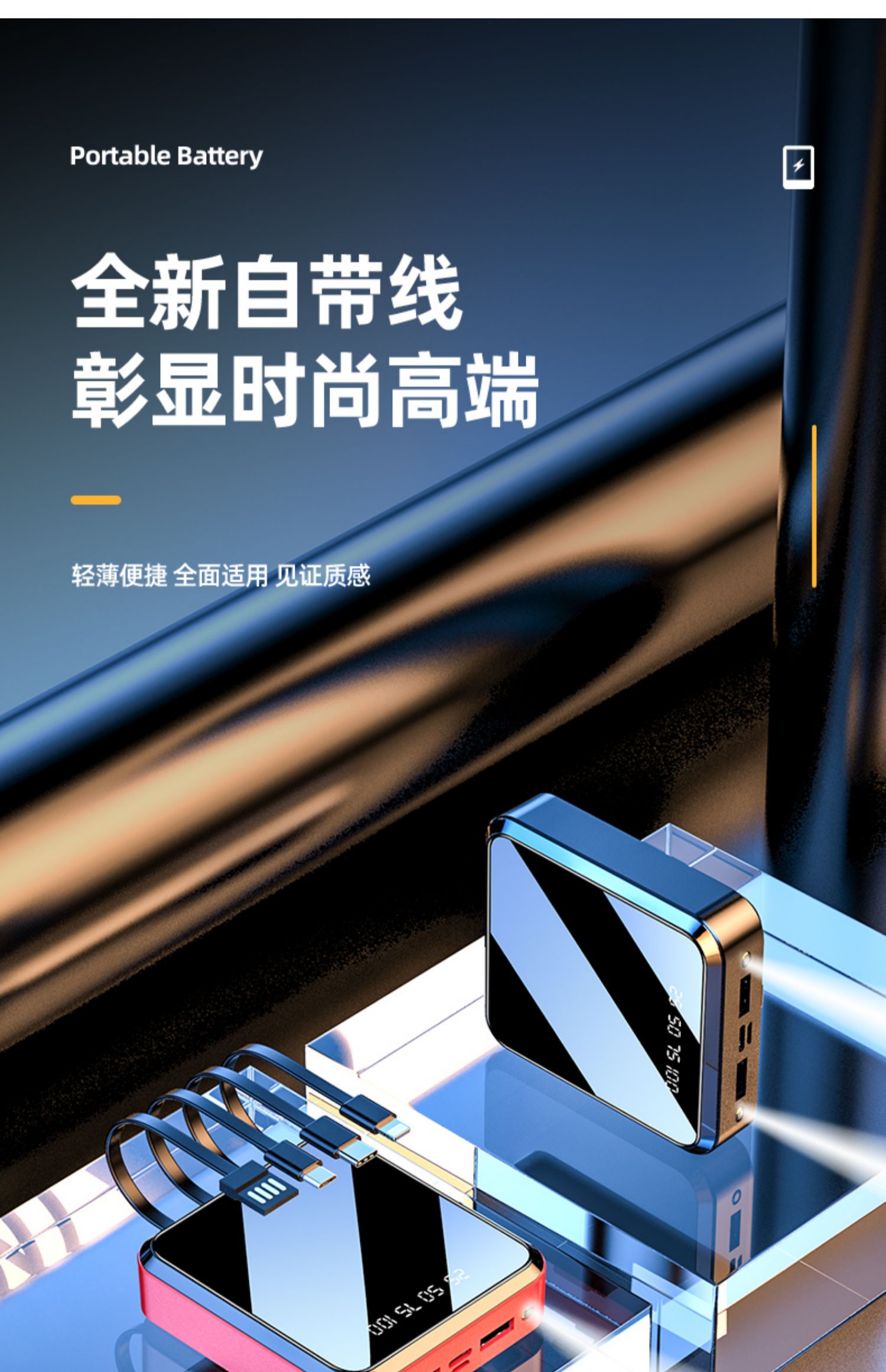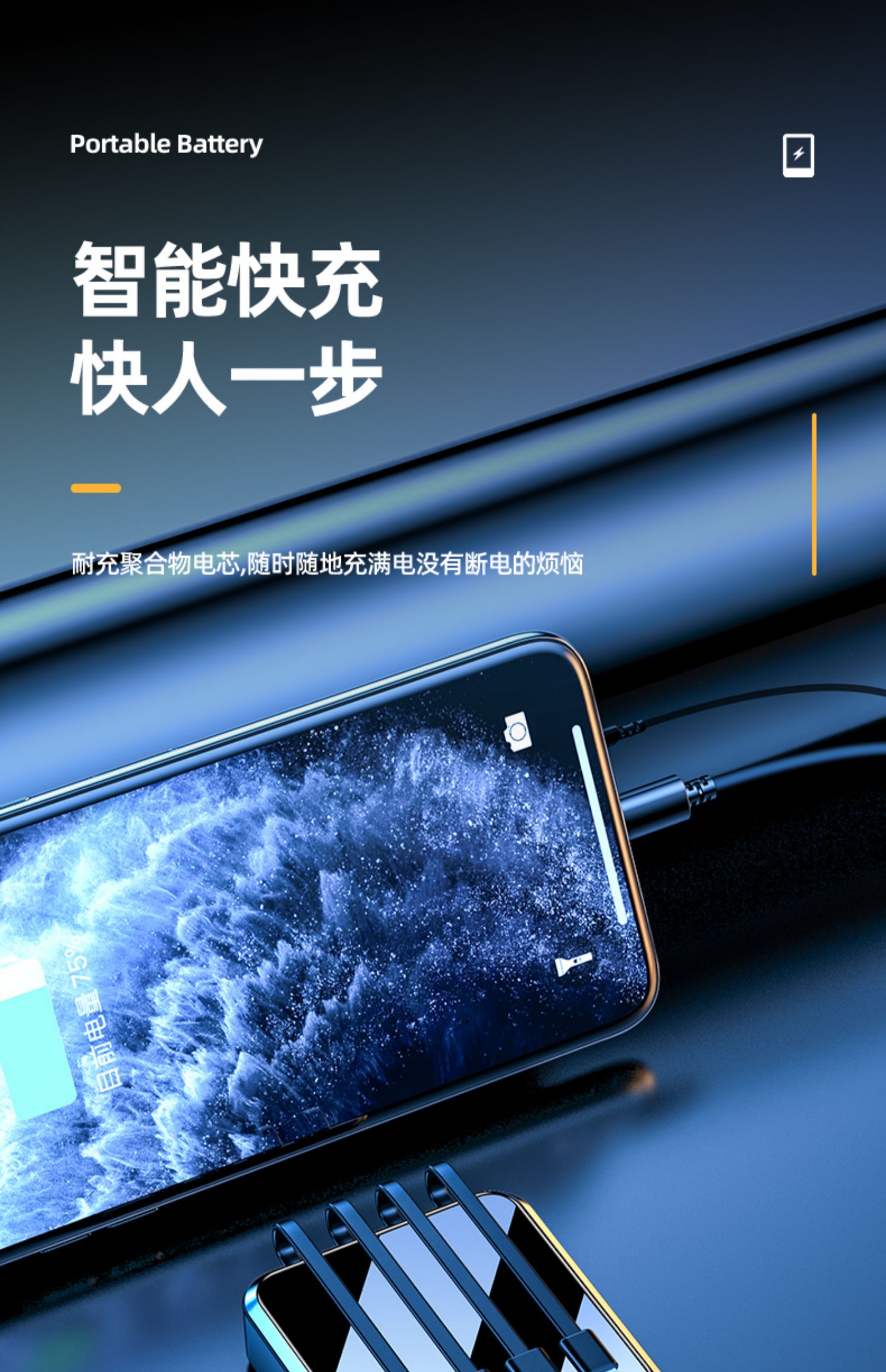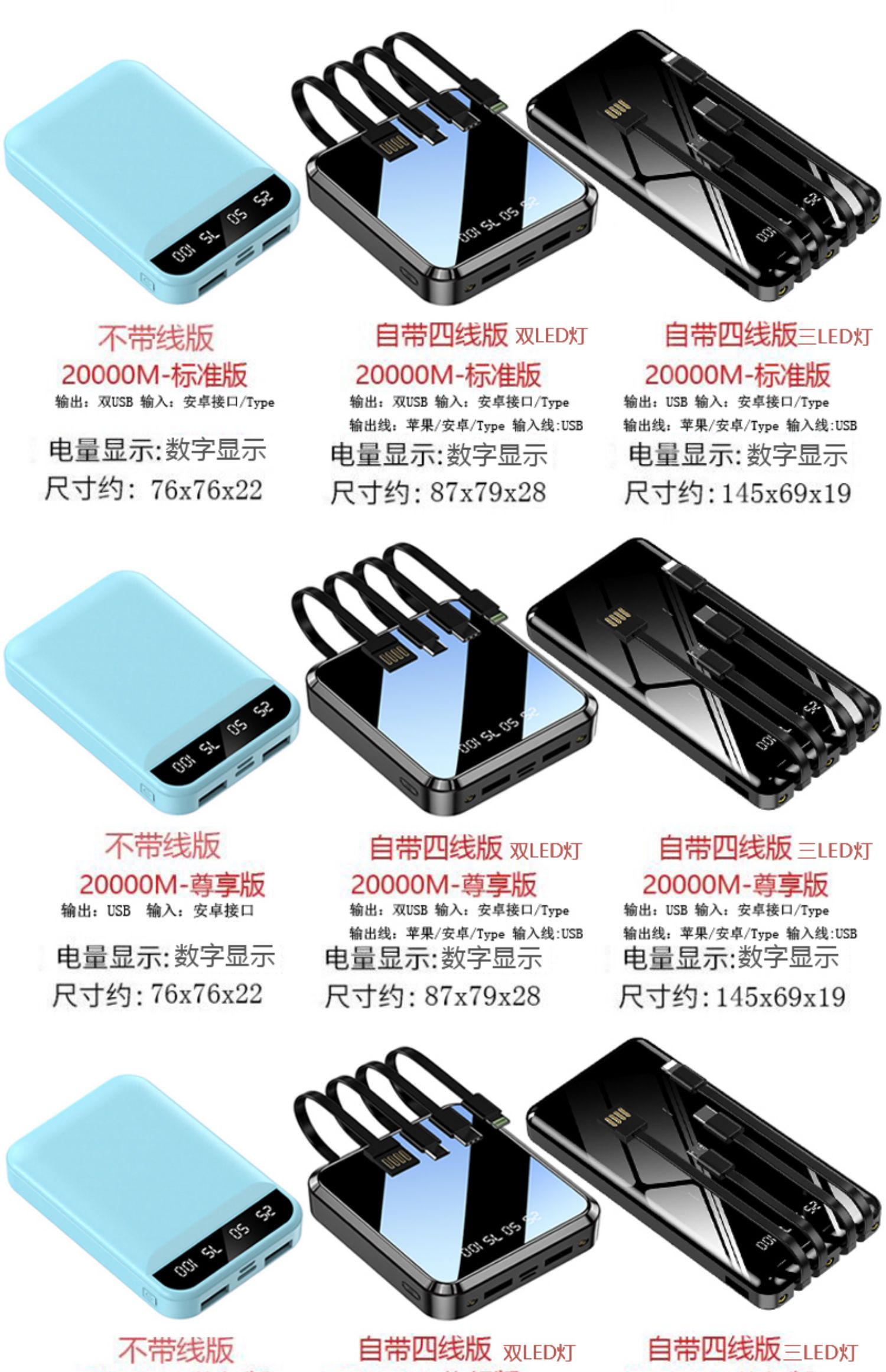 • 商品名称:自带线充电宝20000毫安快充超薄小巧便携迷你大容量苹果专用通用石墨烯三合一适用苹果华为oppo超大量1000000