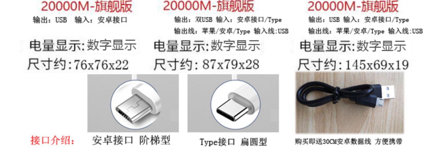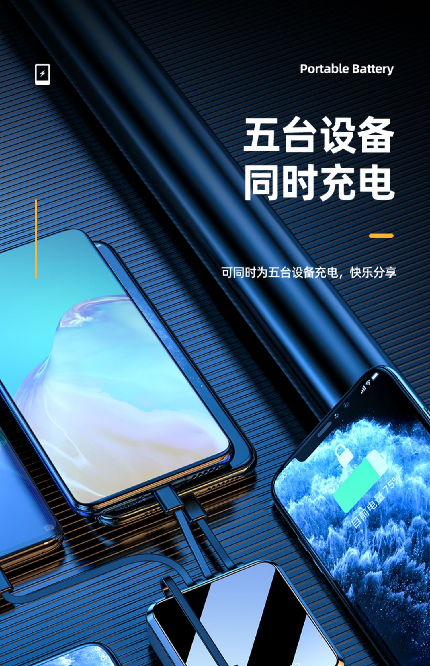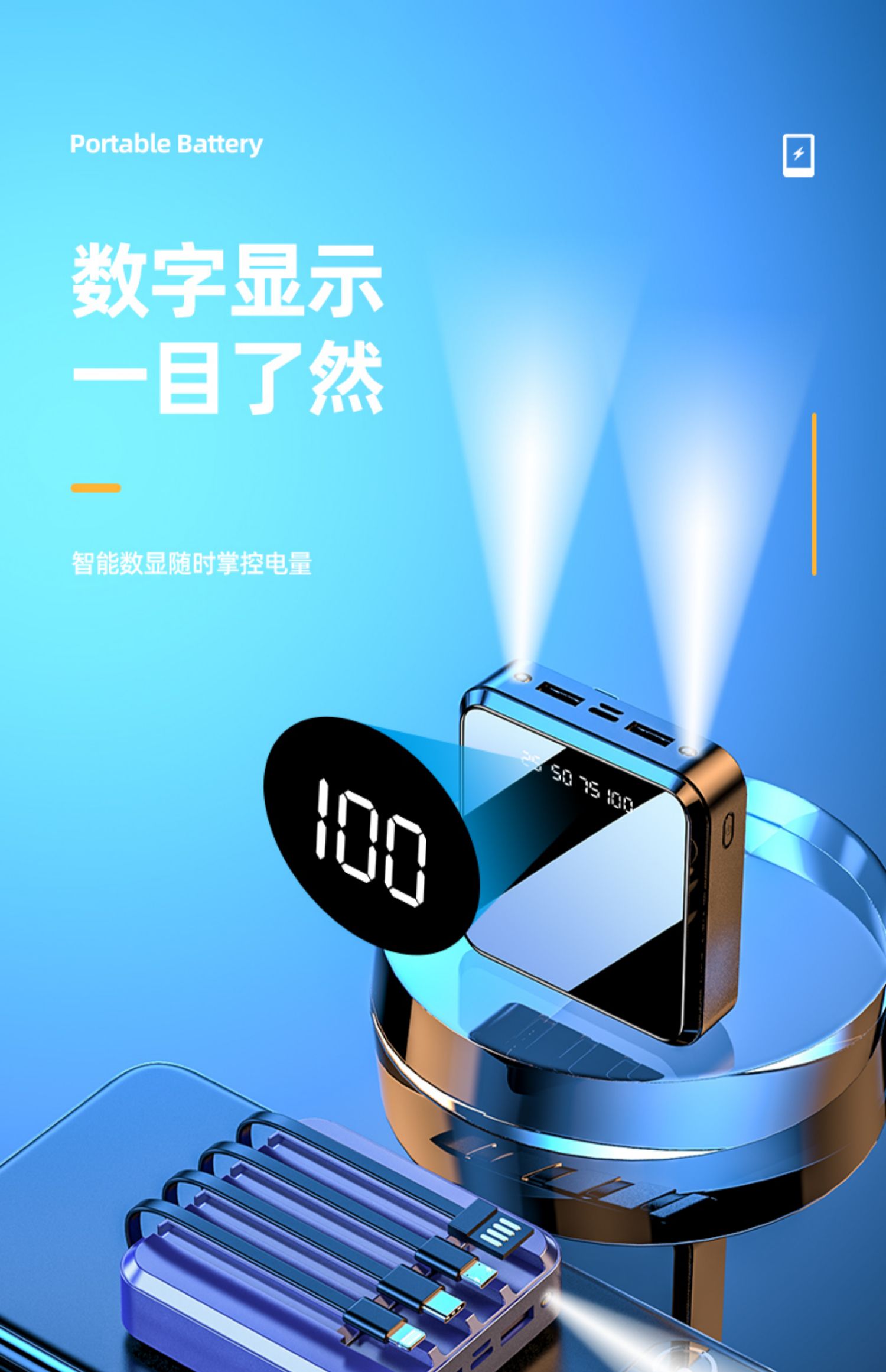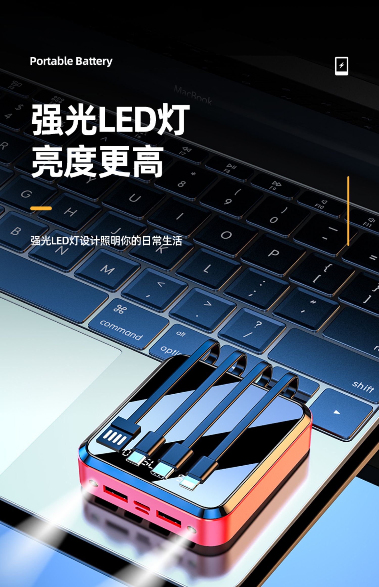 • 商品名称:自带线充电宝20000毫安快充超薄小巧便携迷你大容量苹果专用通用石墨烯三合一适用苹果华为oppo超大量1000000
