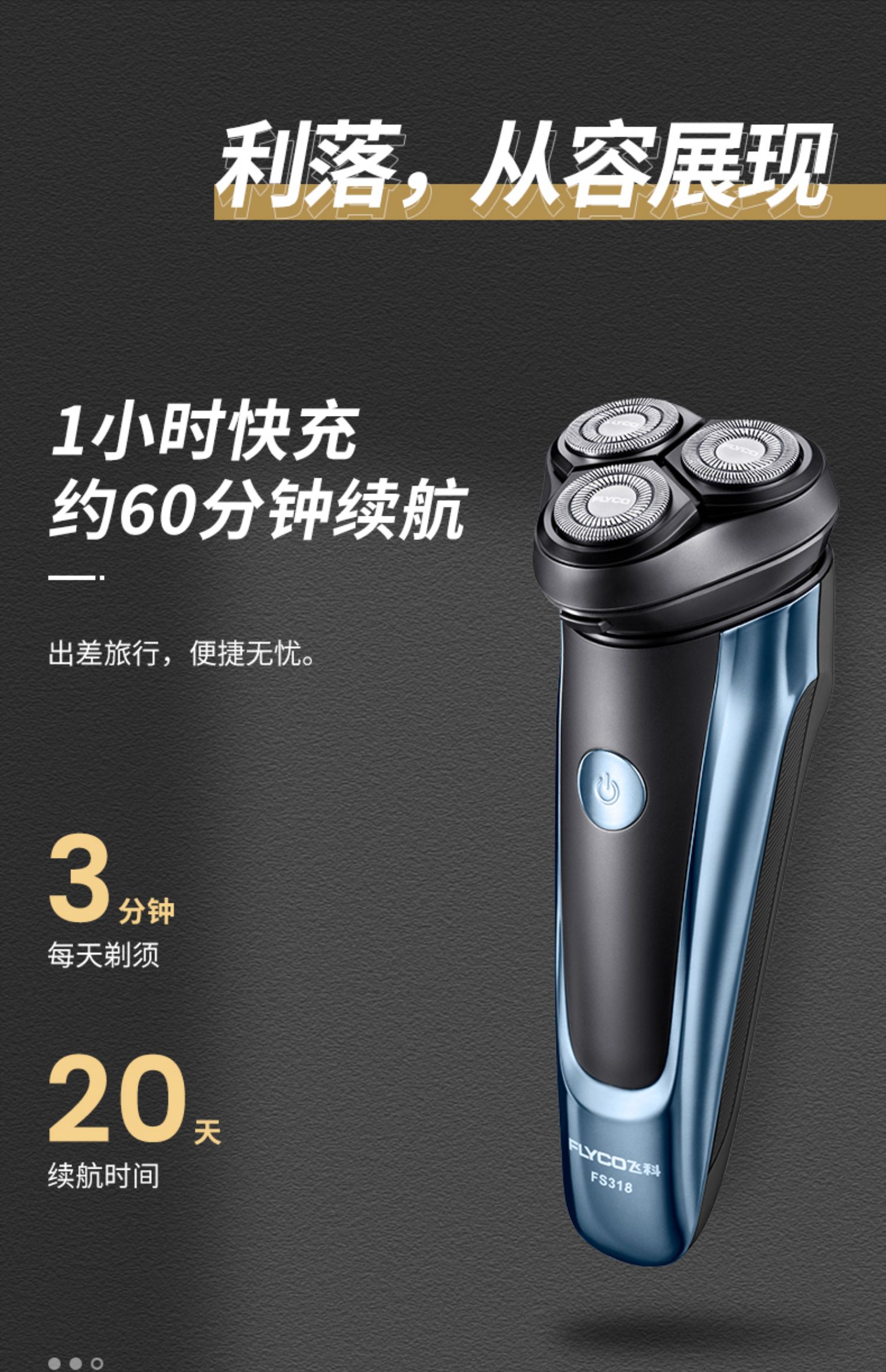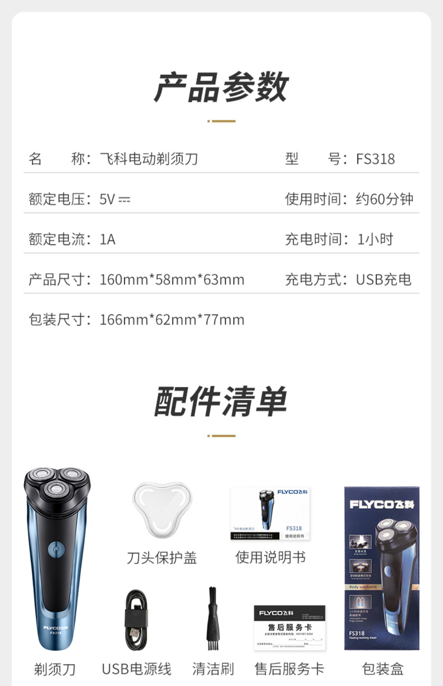• 商品名称:飞科剃须刀男充电式电动刮胡刀全身水洗txd胡须刀正品刮胡刀智