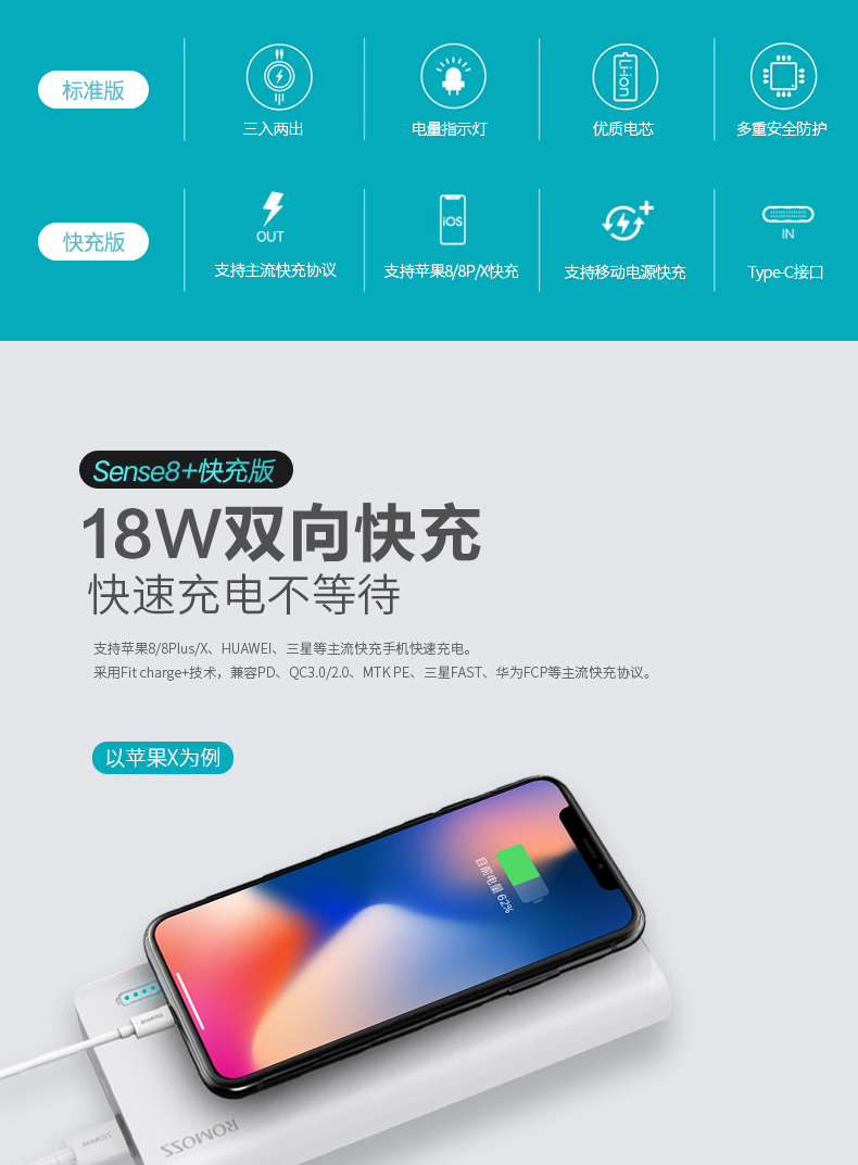 • 商品名称:罗马仕充电宝30000m毫安时大容量便携 18W双向快充移动电源适用苹果小米华为oppo手机通用旗舰官网正品充电宝