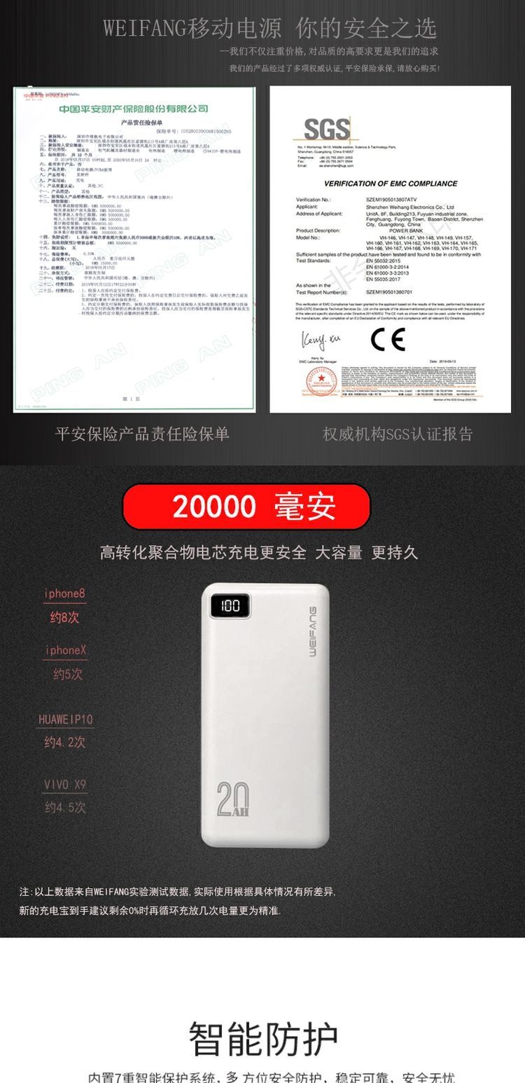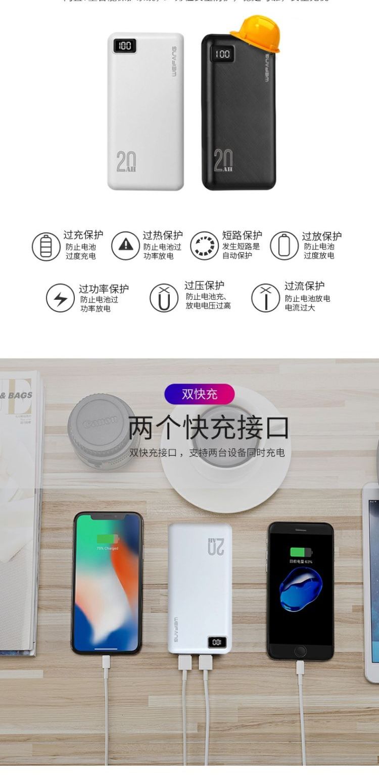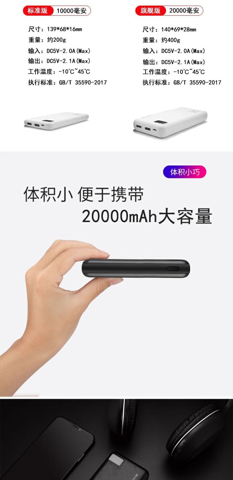 • 商品名称:20000毫安智能专通用大容量手机充电宝移动电源便携快充小巧轻薄适用苹果oppo华为vivo小米手机石墨1000000MA