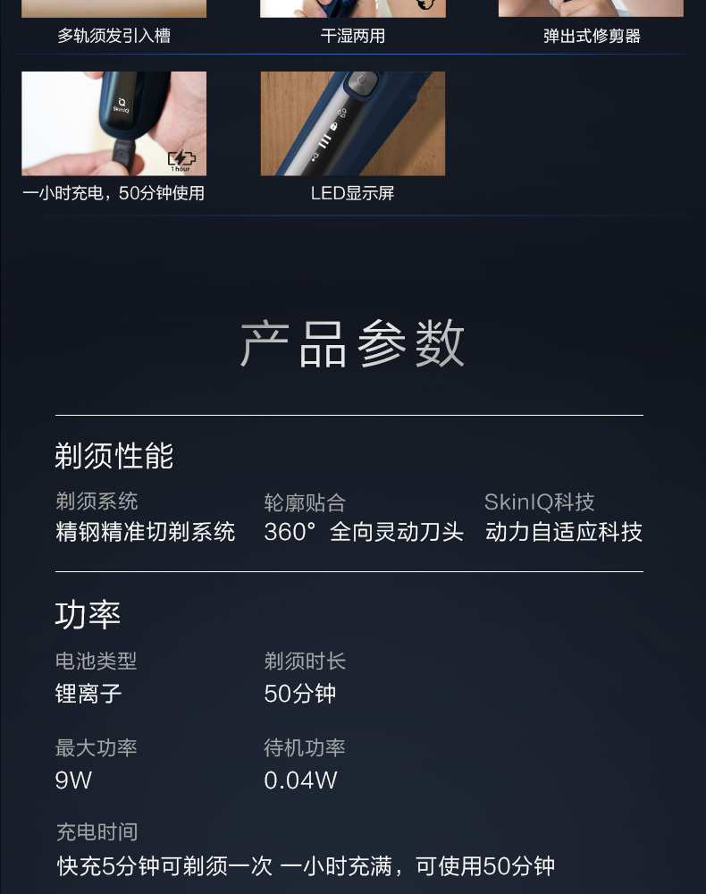 • 商品名称:飞利浦电动剃须刀男士黑蜂巢2021新款正品原装刮胡刀菲利普S5535