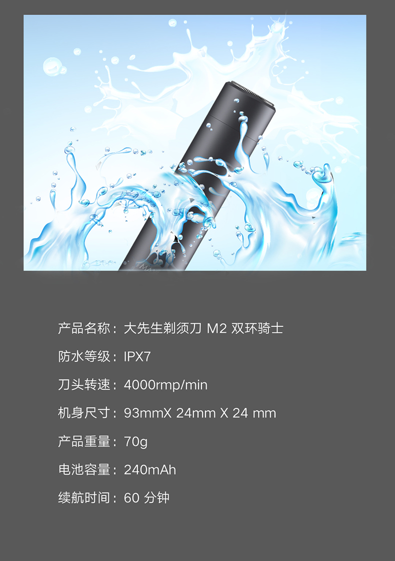 • 商品名称:须眉大先生便携电动剃须刀充电式便携车载Type-C快充旅行全身水洗