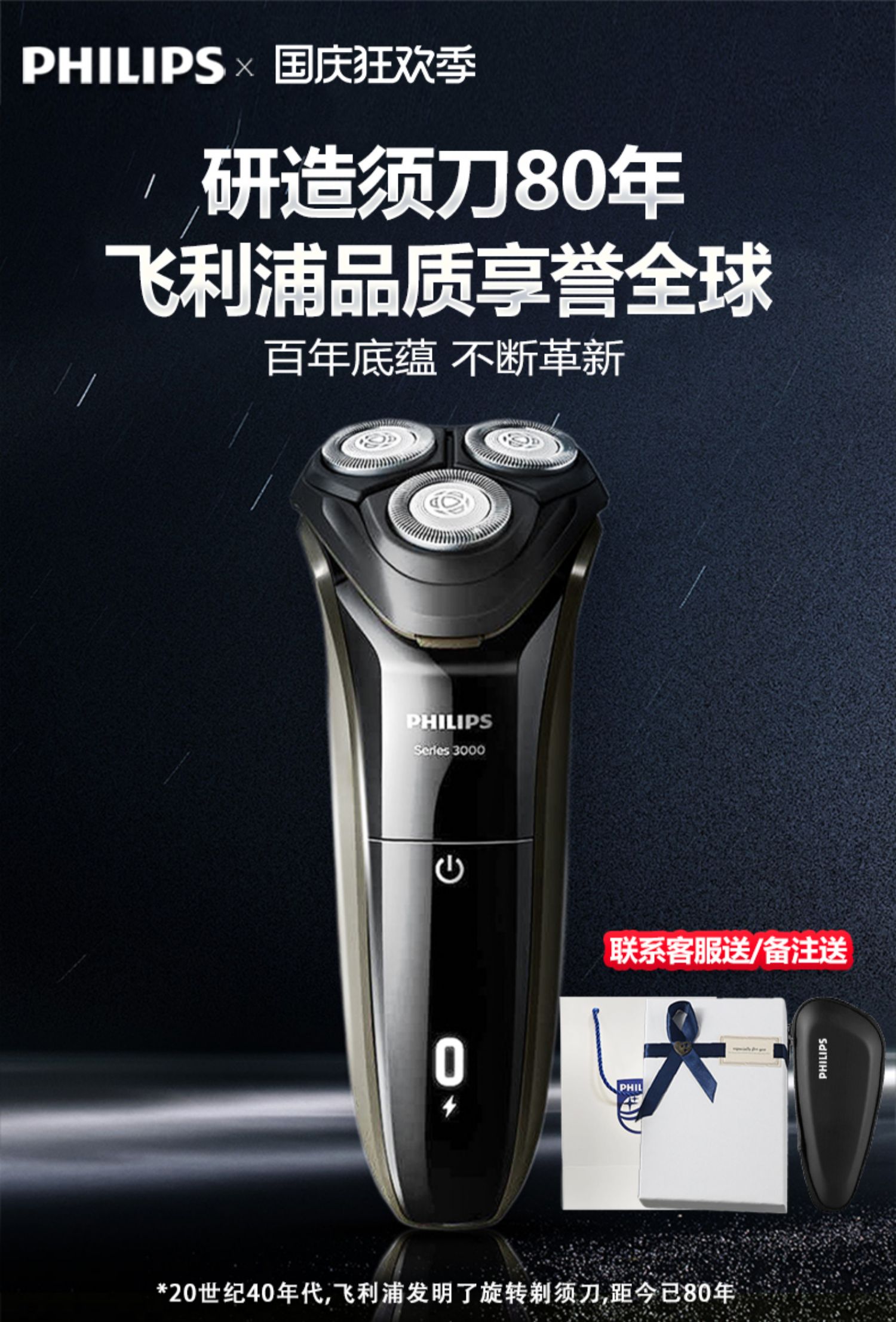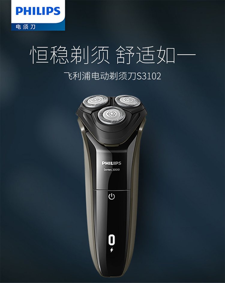 飞利浦电动剃须刀男士快充电式刮胡刀胡须刀官方旗舰店正品S3102