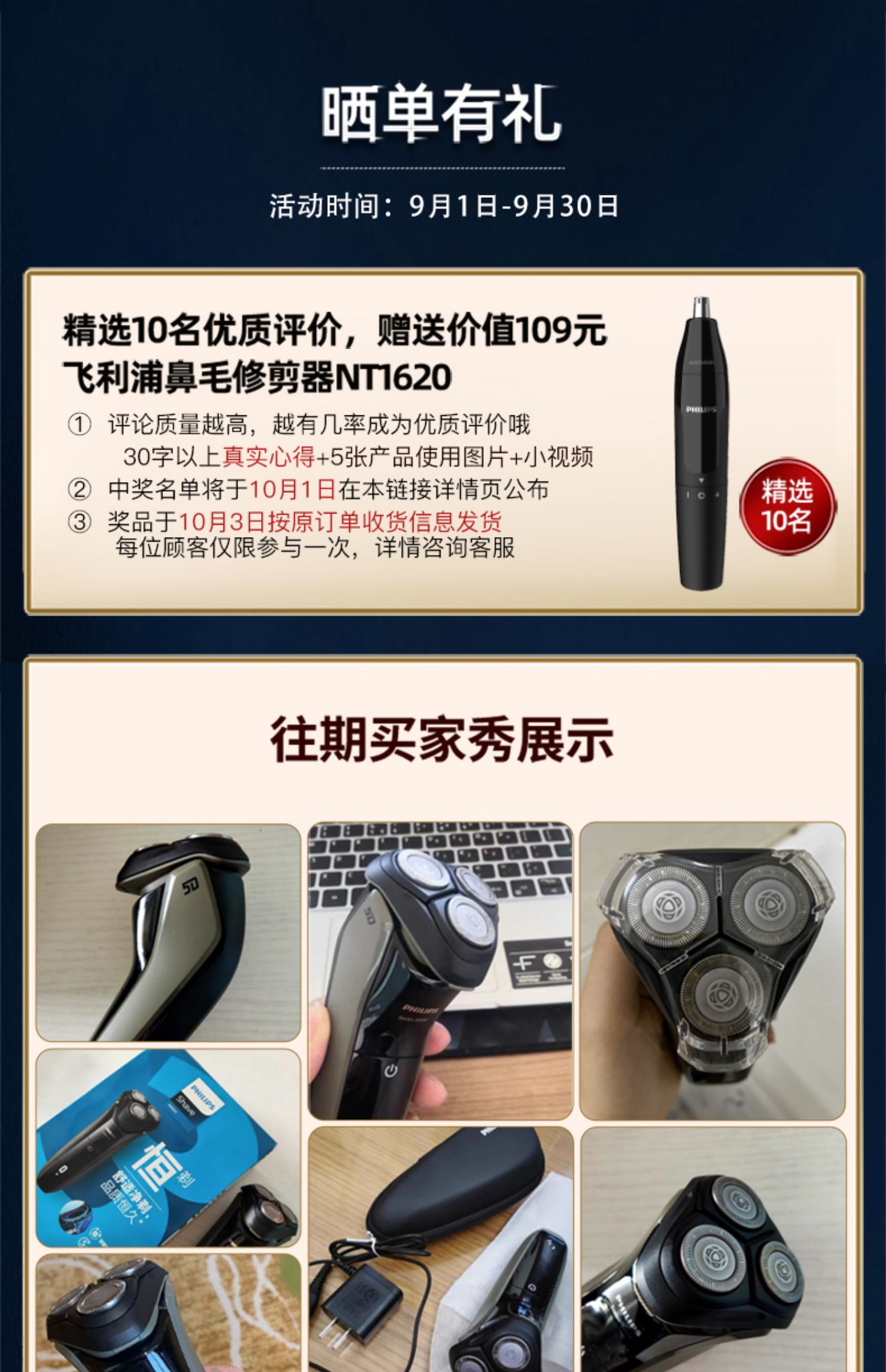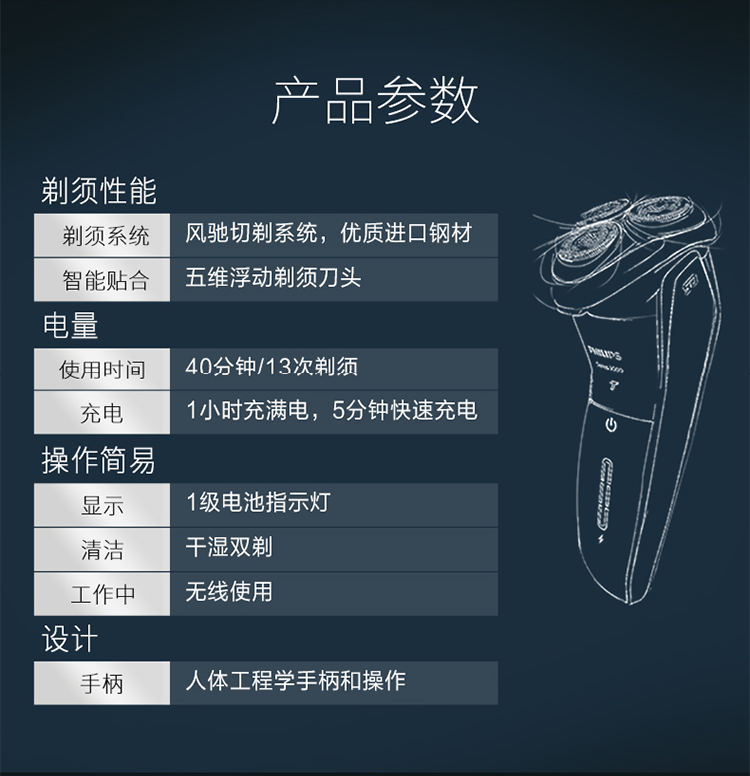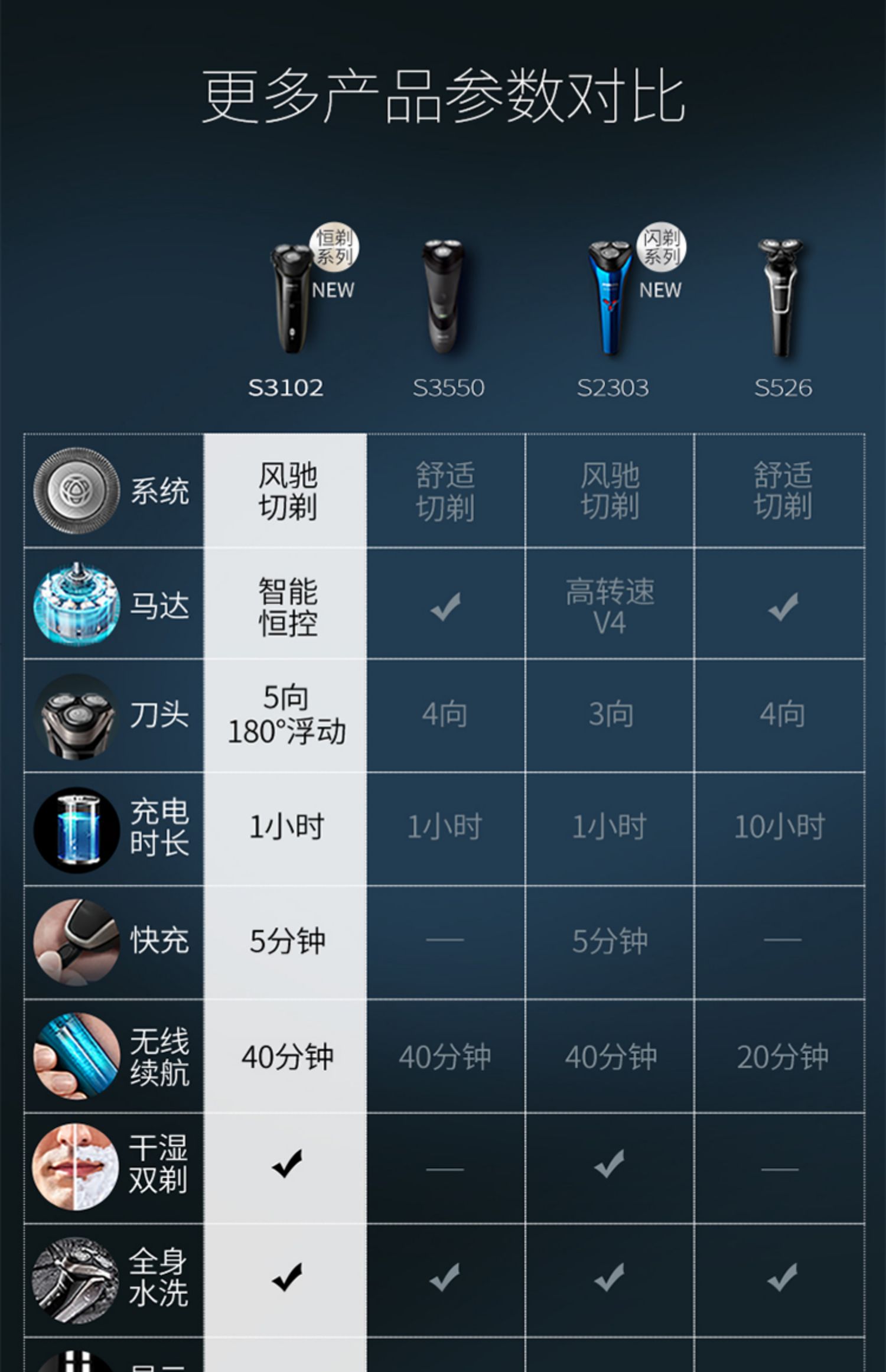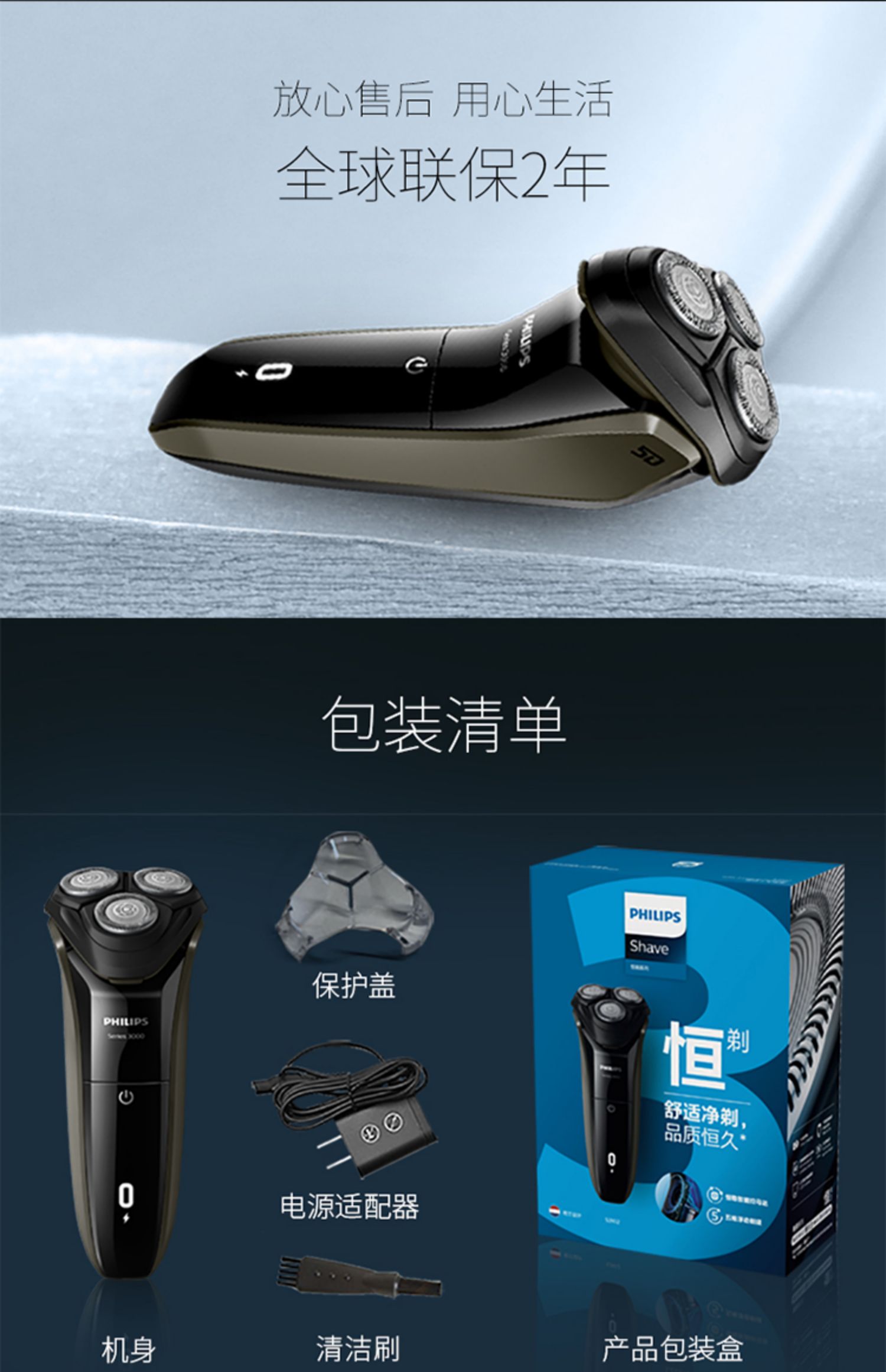 • 商品名称:飞利浦电动剃须刀男士快充电式刮胡刀胡须刀官方旗舰店正品S3102