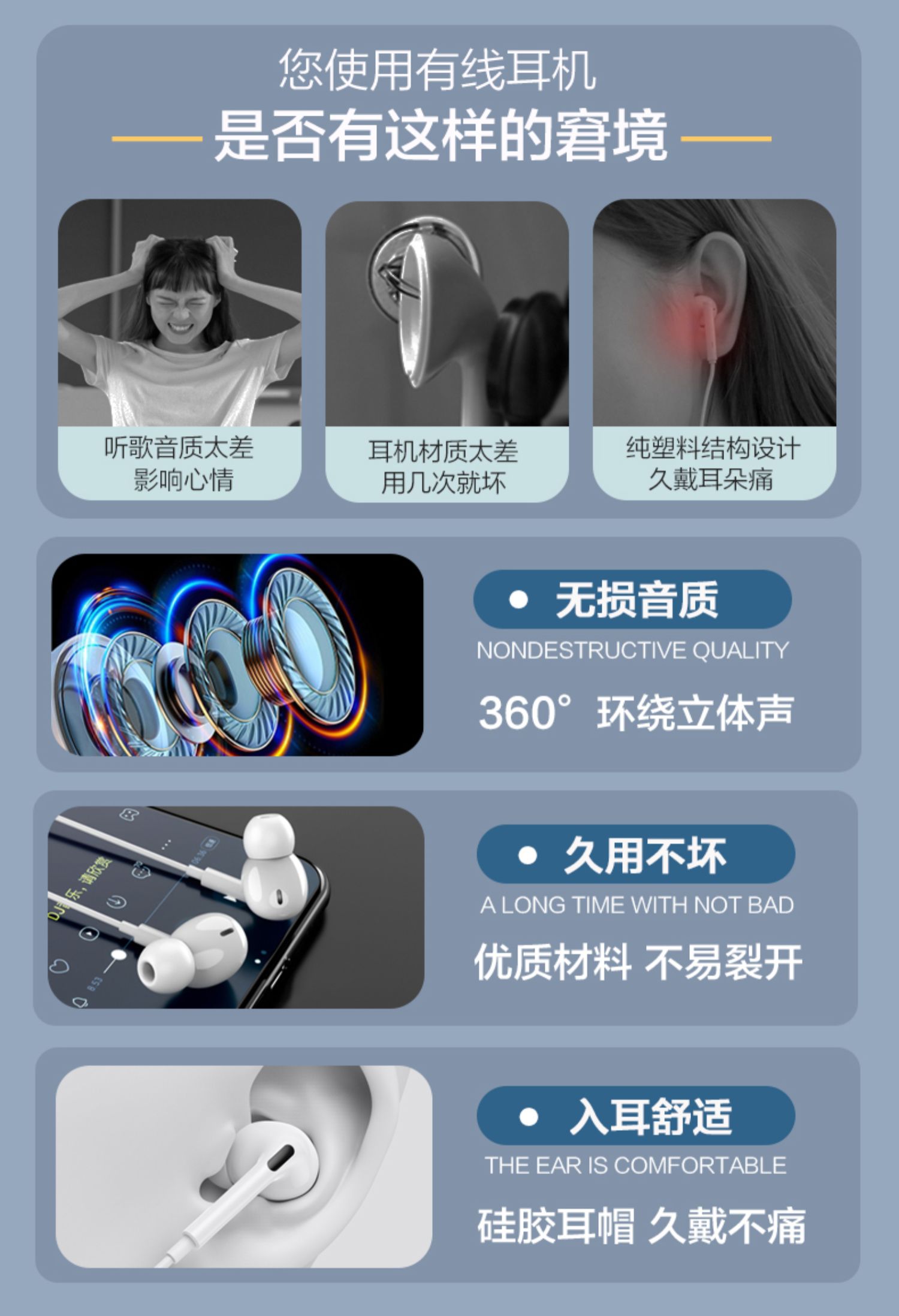 • 商品名称:【李佳埼推荐】耳机有线入耳式适用华为oppo小米vivo苹果typec接口3.5mm圆孔高音质耳塞降噪睡眠女生手机通用