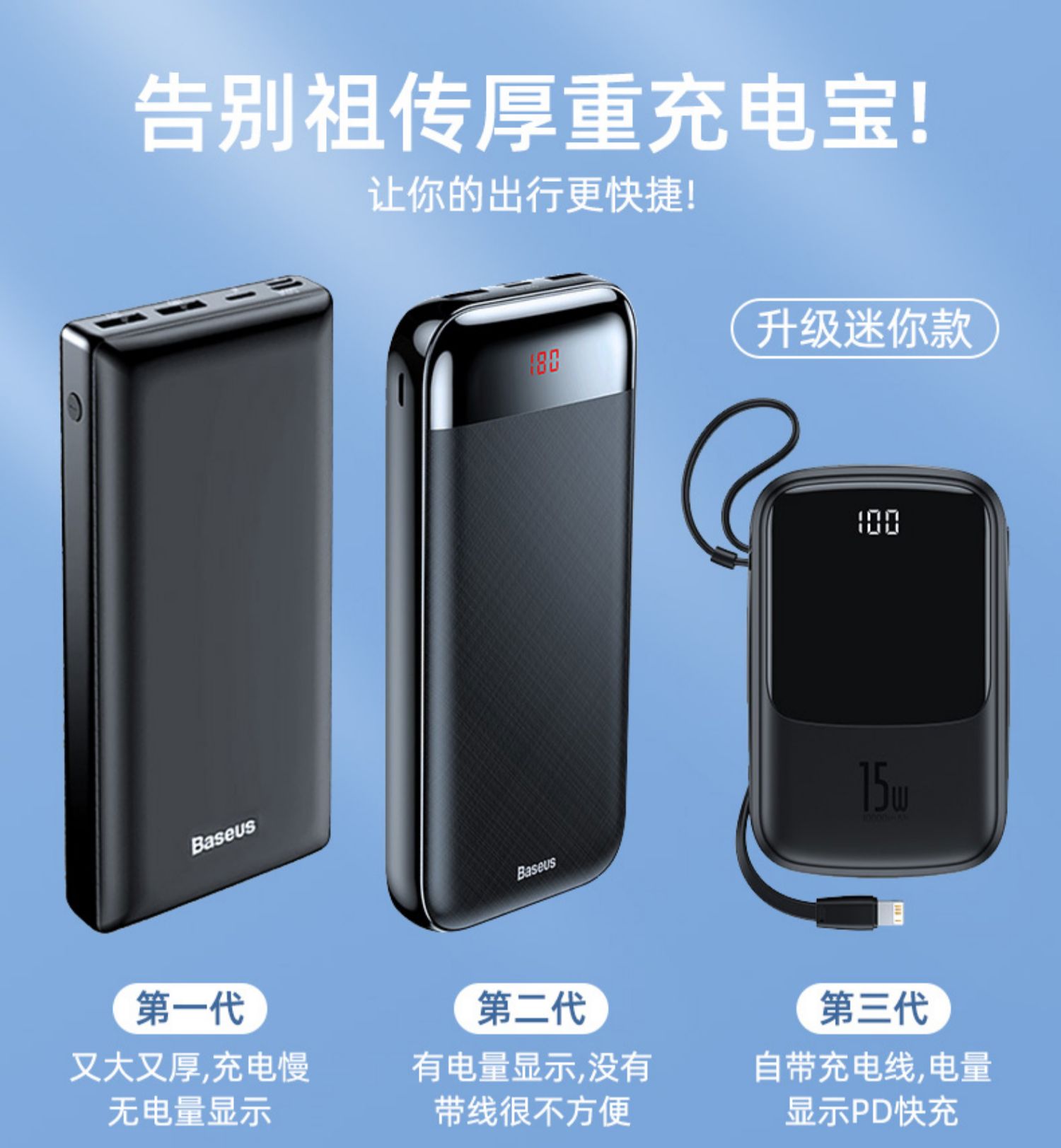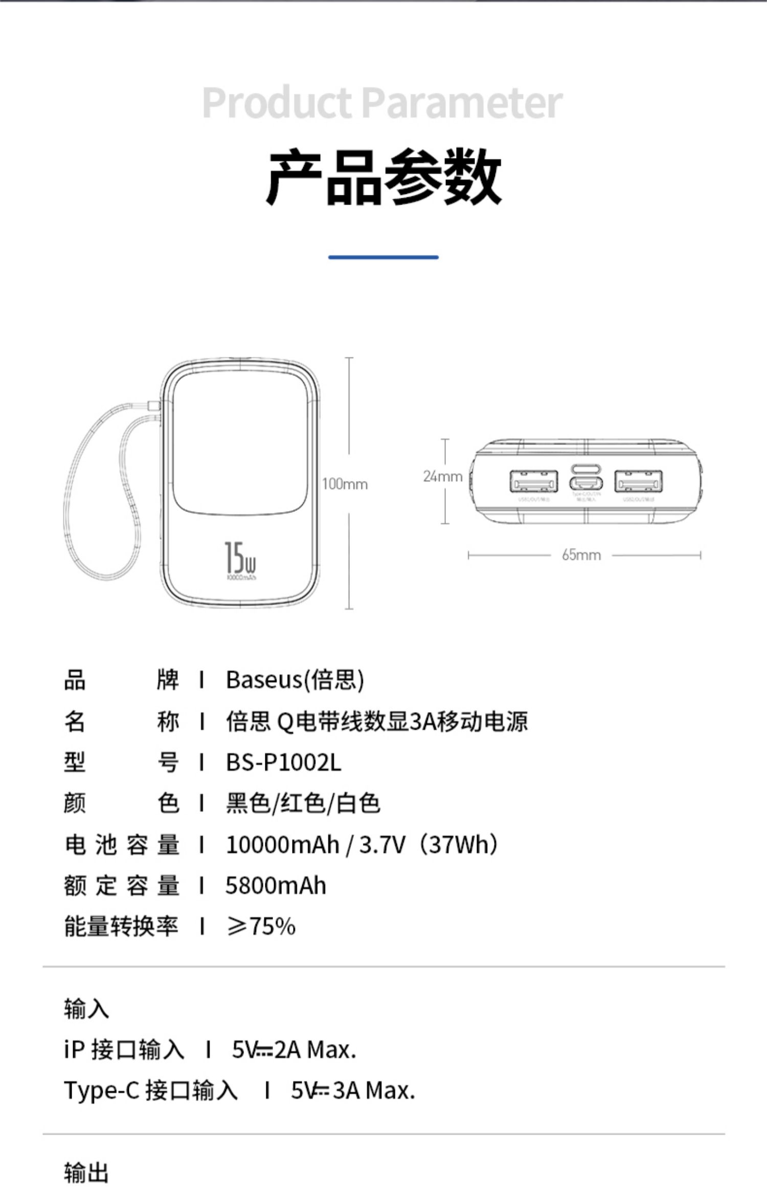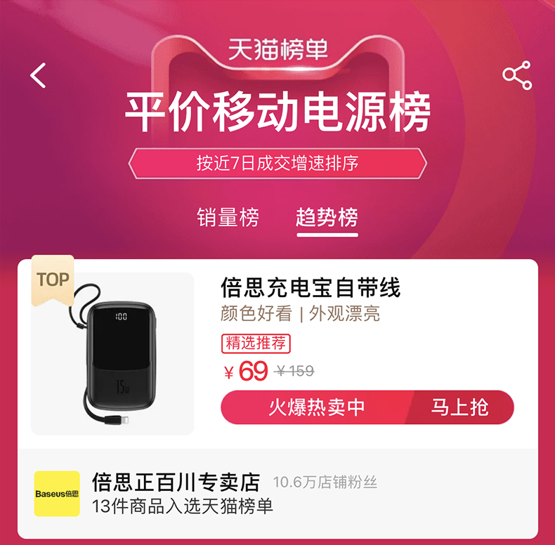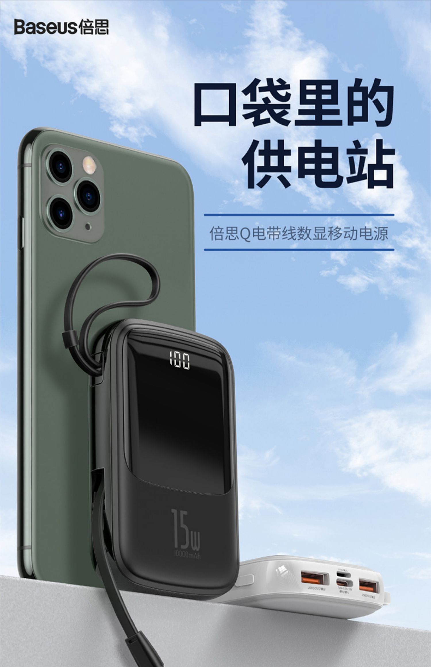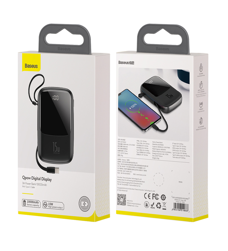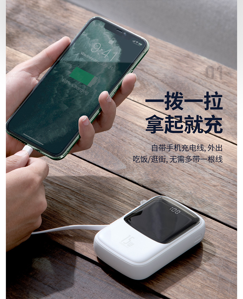 • 商品名称:倍思充电宝10000毫安小巧便携自带线手机移动电源专用一万pd快充电宝迷你小型适用于苹果小米华为iphone117p