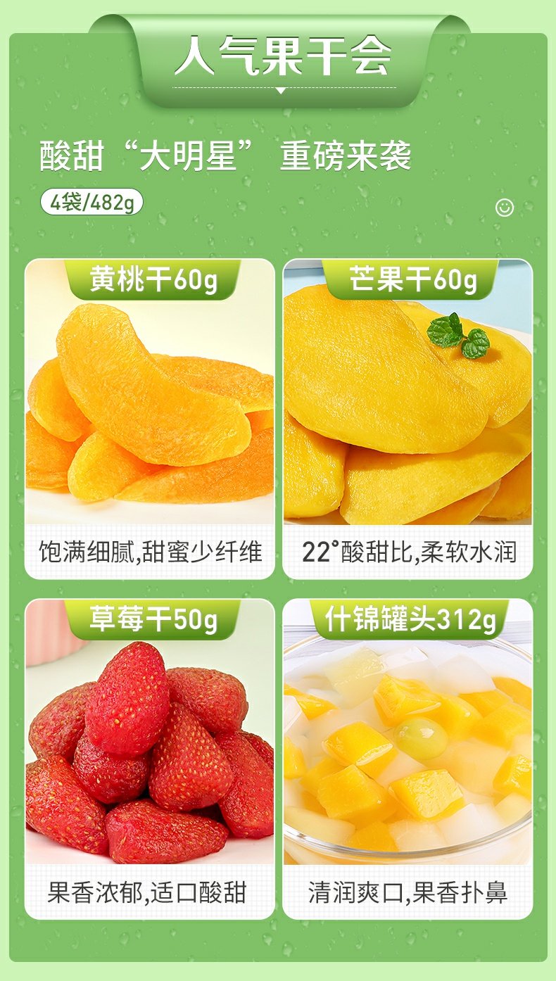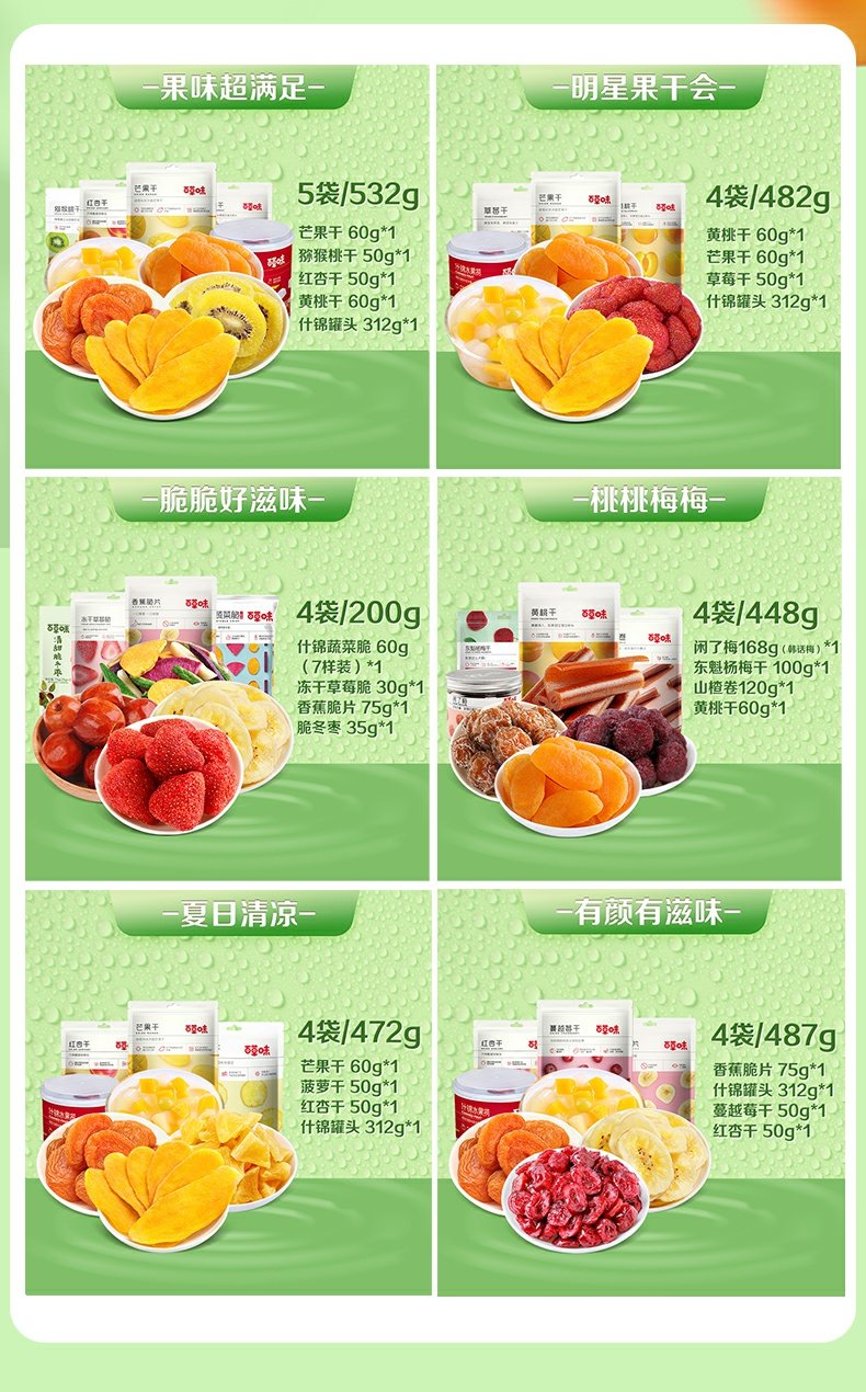• 商品名称:百草味水果干大礼包芒果草莓干网红吃货休闲零食蜜饯果脯混合装