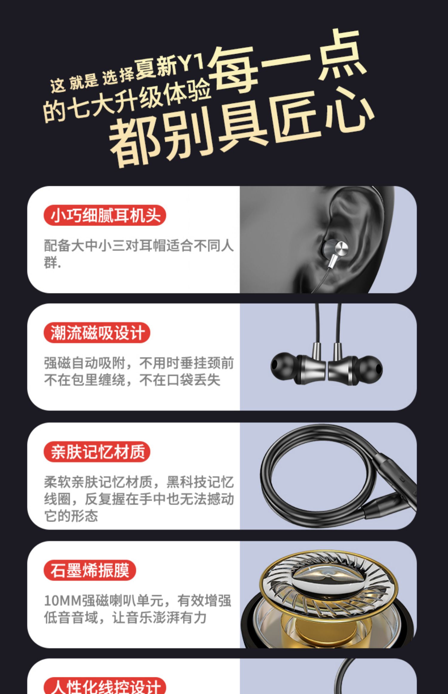 • 商品名称:夏新Y1运动型真无线蓝牙耳机高颜值高音质入耳头戴颈挂脖式超长待机高端游戏2021年新款适用华为vivo苹果oppo