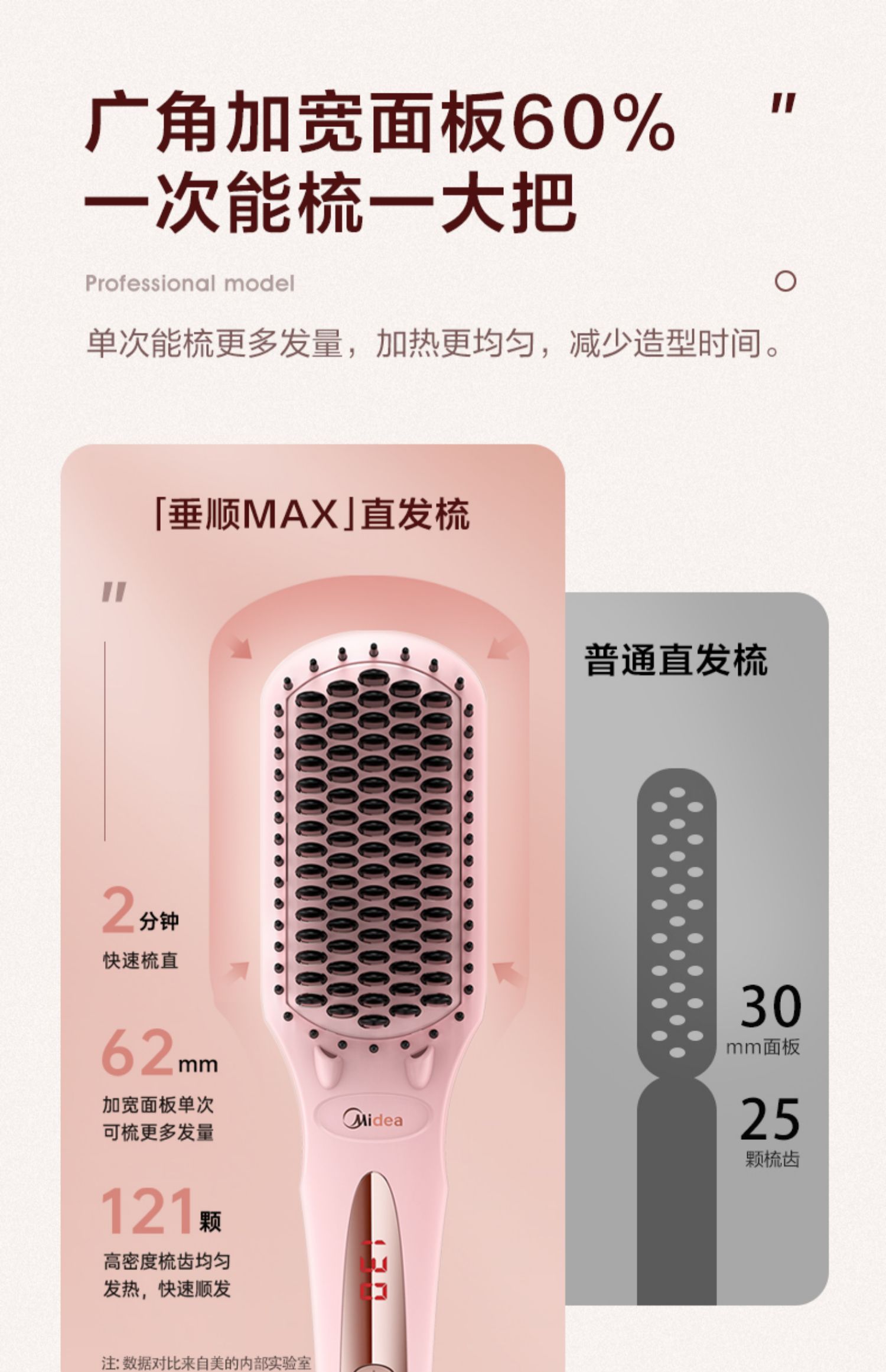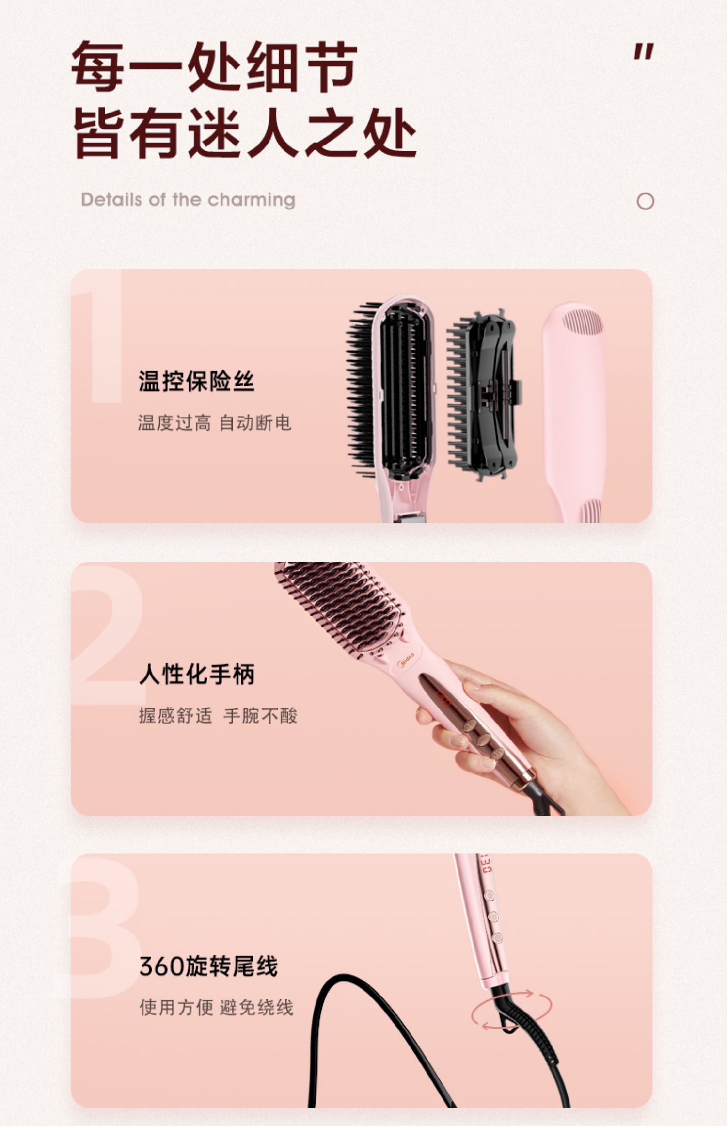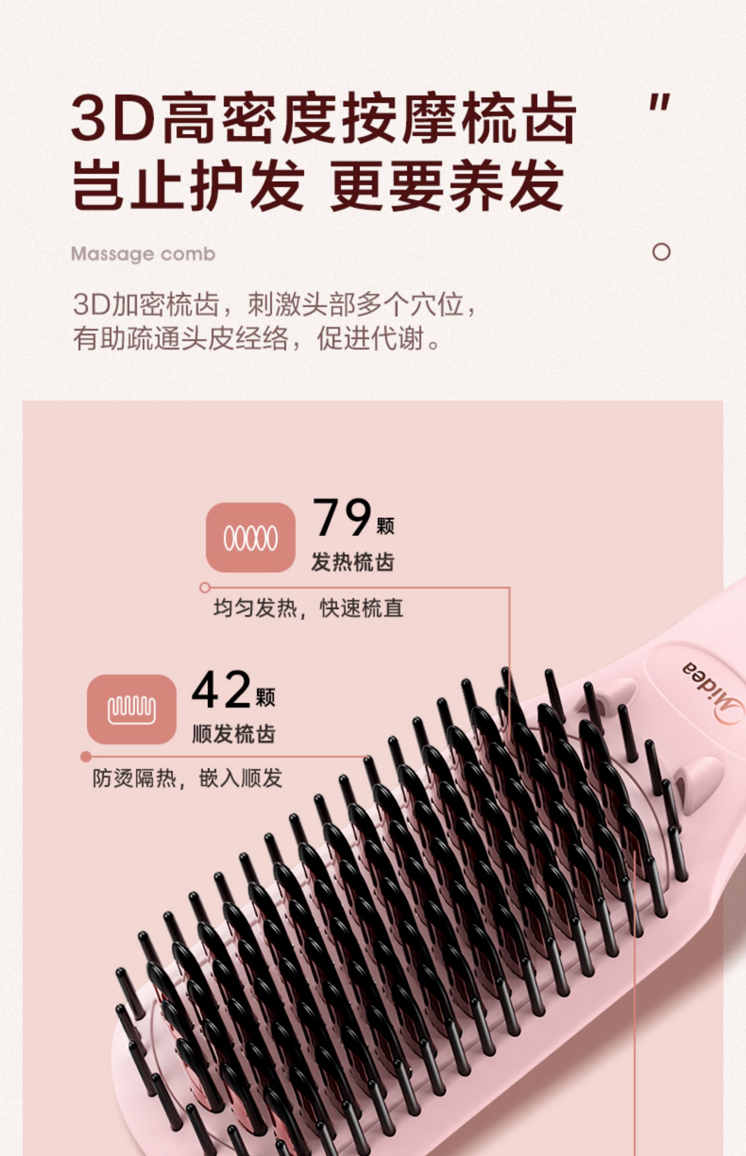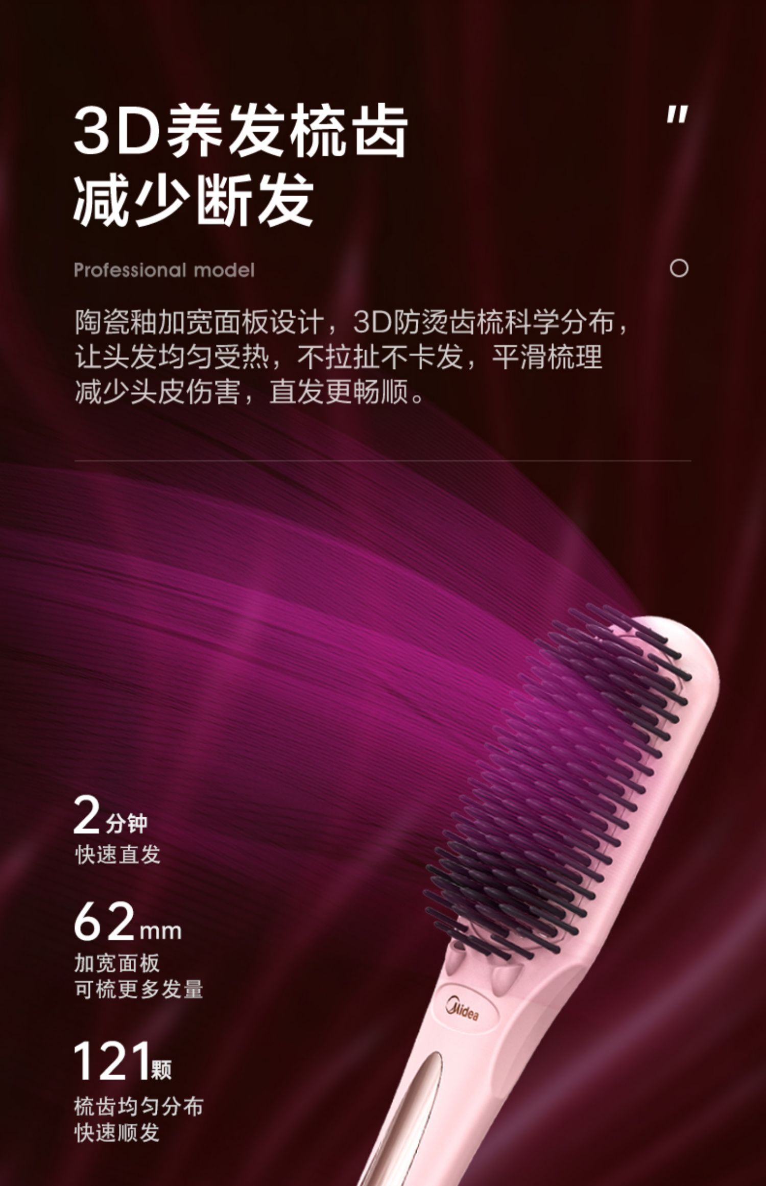 • 商品名称:美的直发梳直发卷发两用神器卷发棒夹板不伤发家用负离子大阪梳