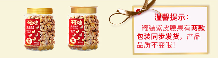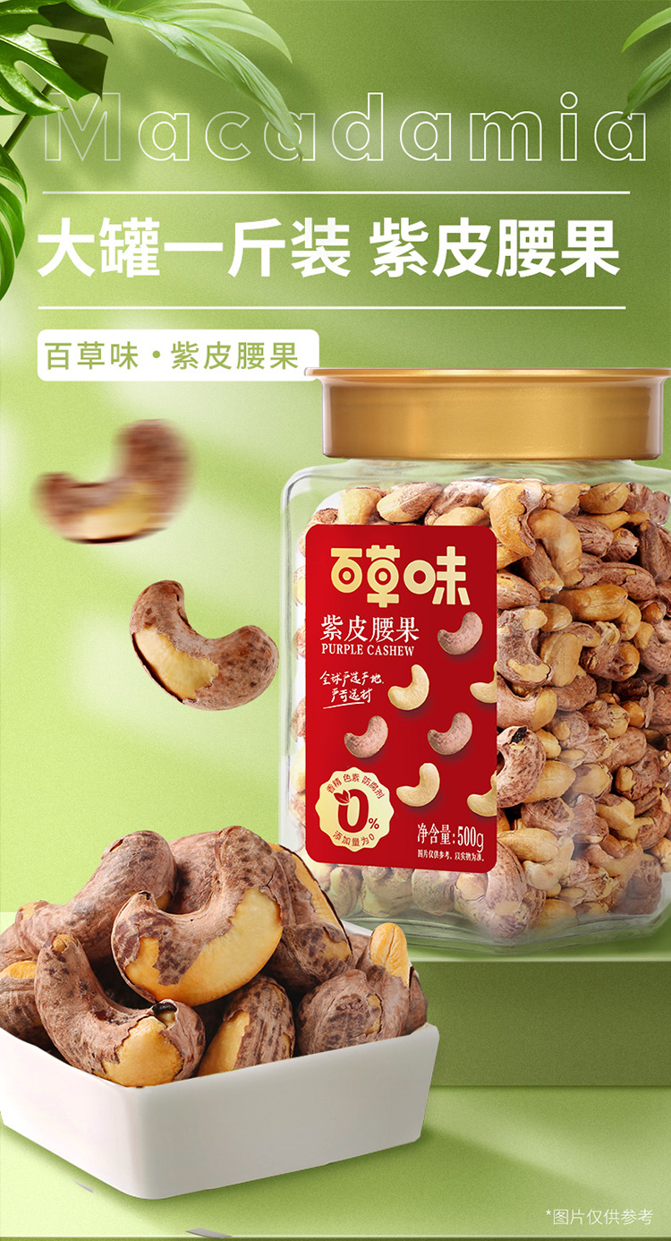 • 商品名称:百草味-罐装紫皮腰果仁500g 盐焗味坚果孕妇零食越南大颗粒年货