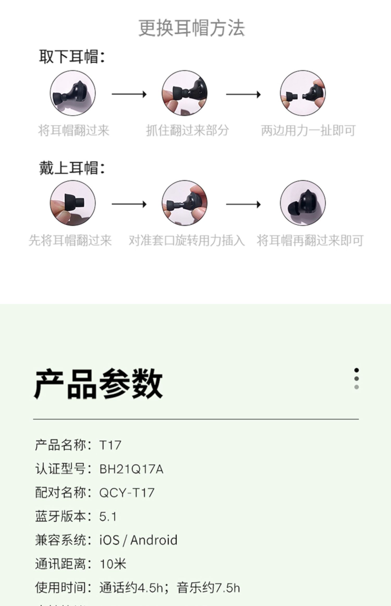 • 商品名称:QCY T17真无线蓝牙耳机入耳式迷你双耳塞运动跑步音乐通话长续航