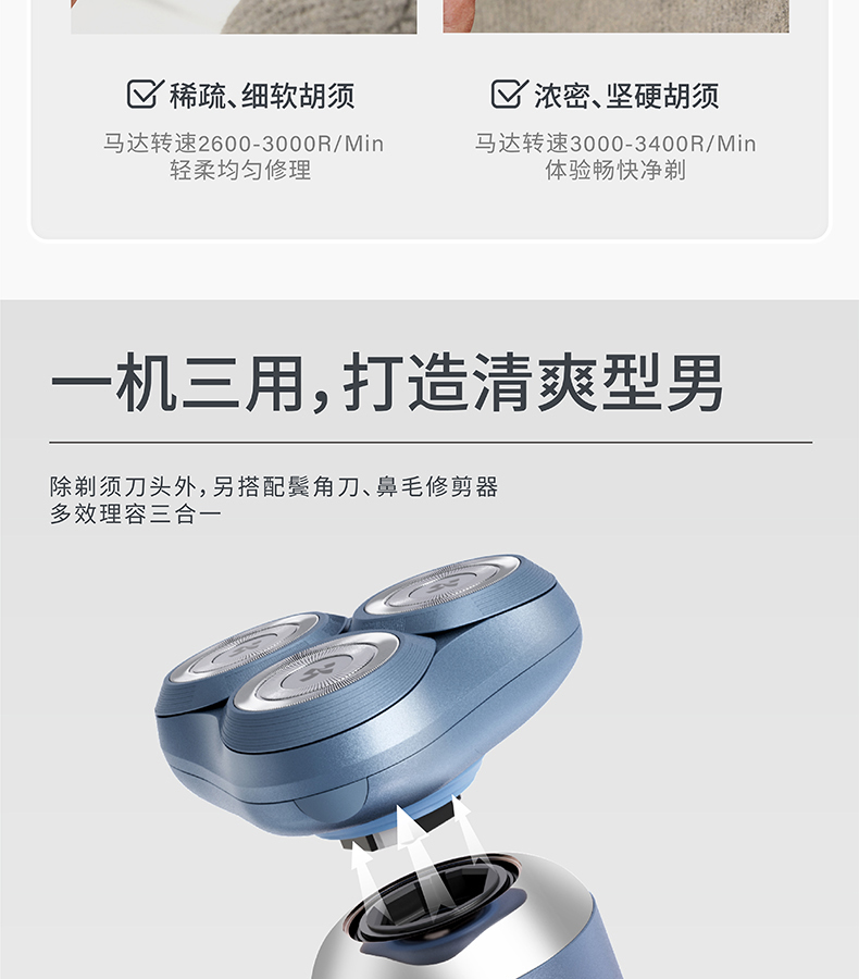 • 商品名称:允宝剃须刀男士电动快充水洗三刀头刮胡刀2022新款礼盒套装送男友