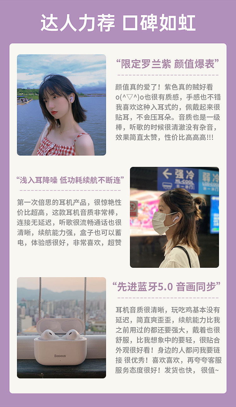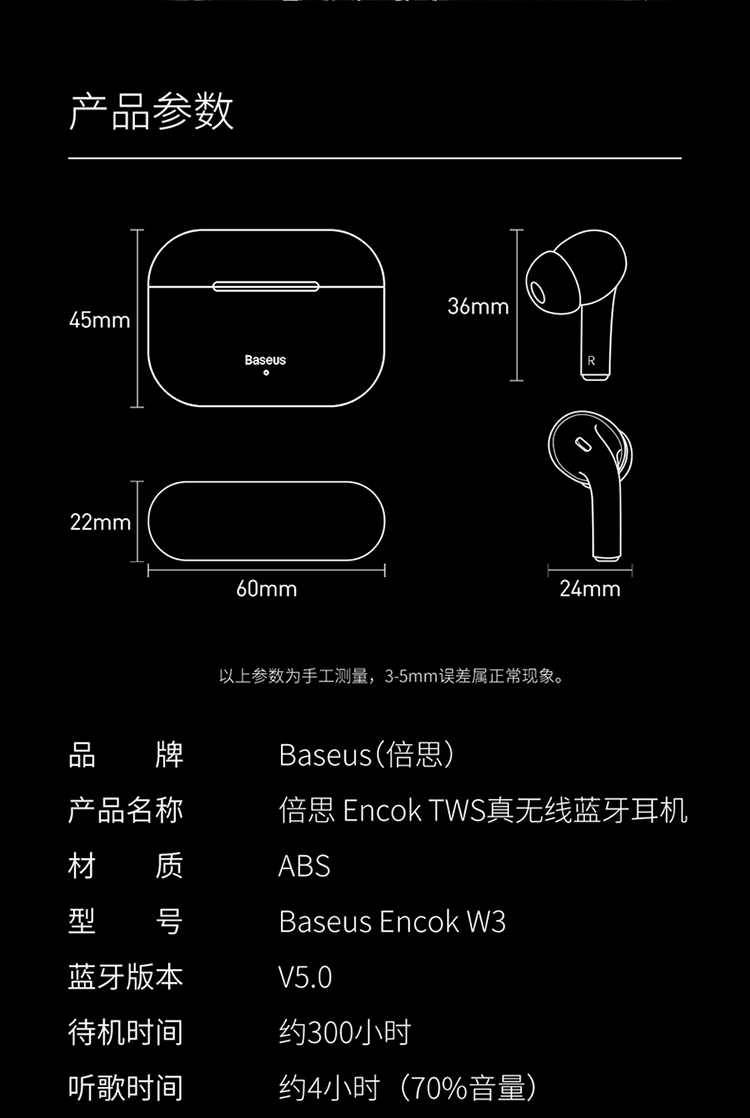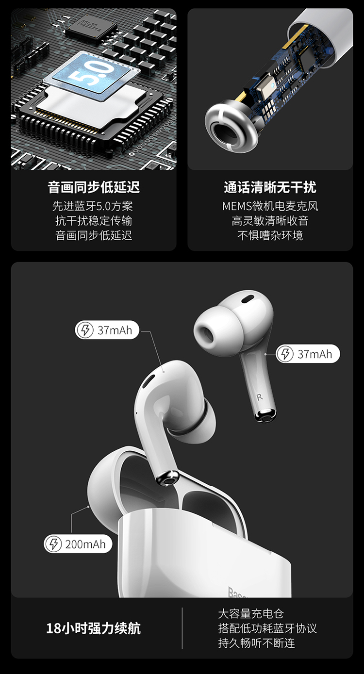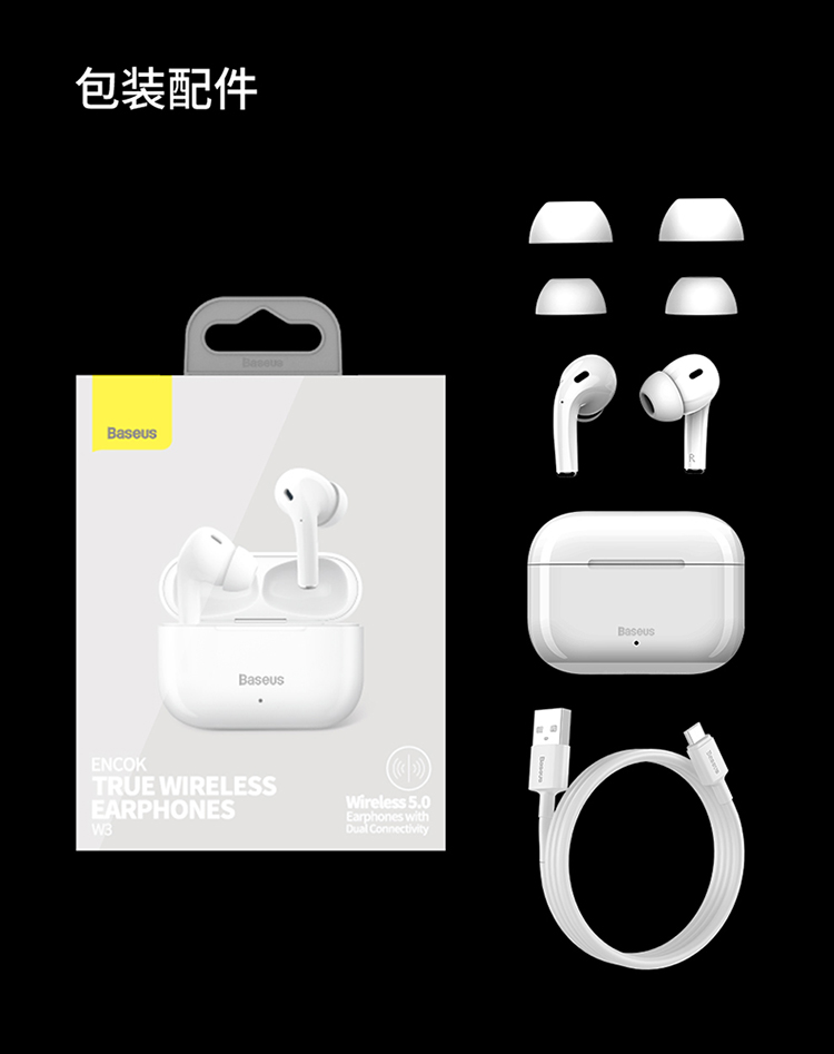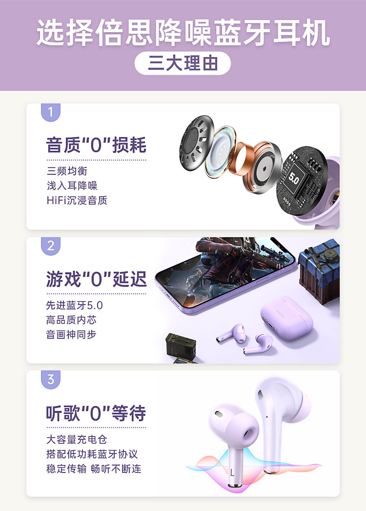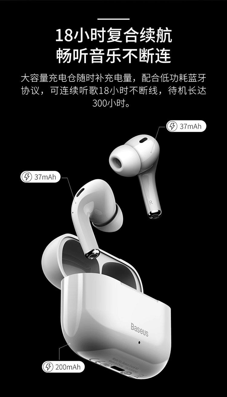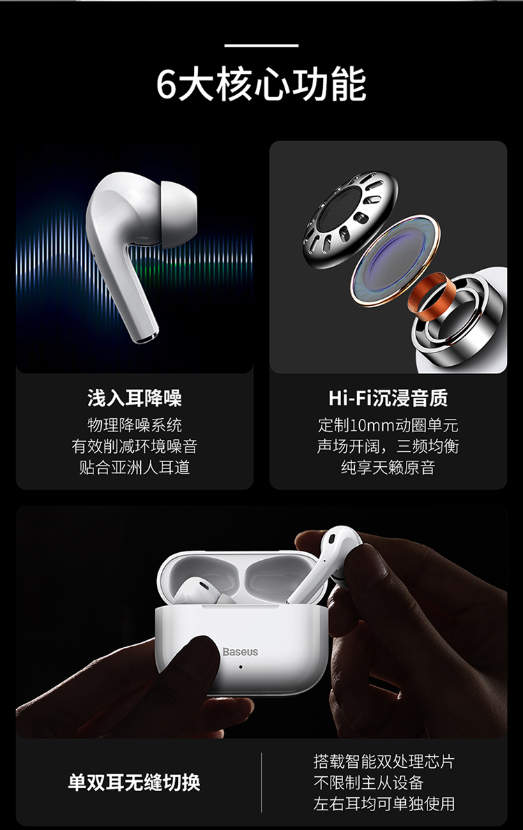 • 商品名称:倍思三代无线蓝牙耳机浅入耳式降噪高音质防水高续航苹果华为通用
