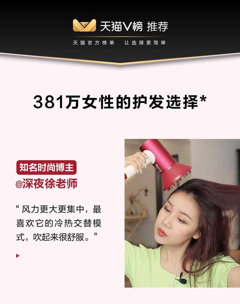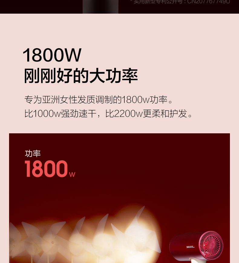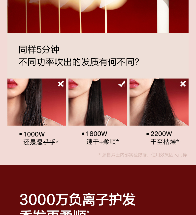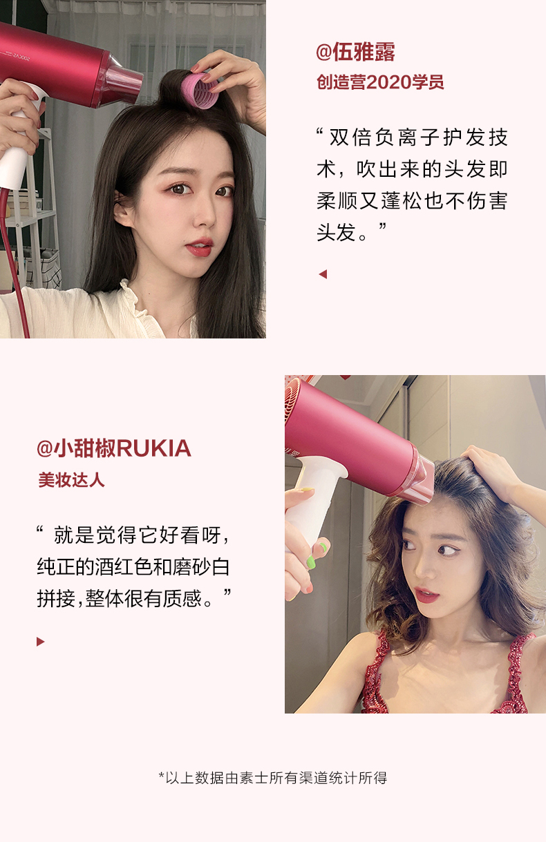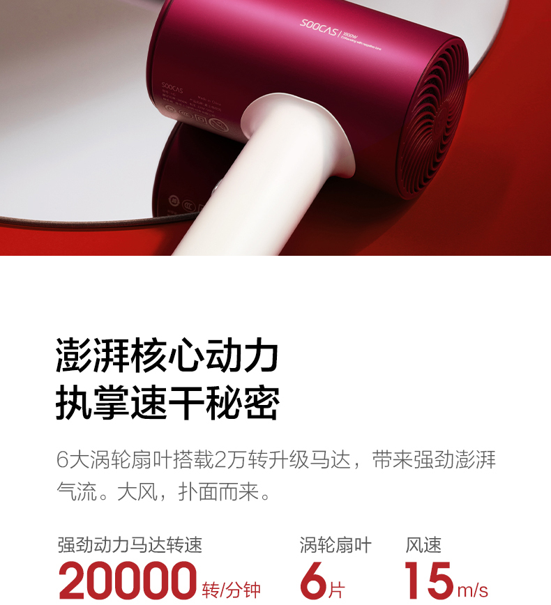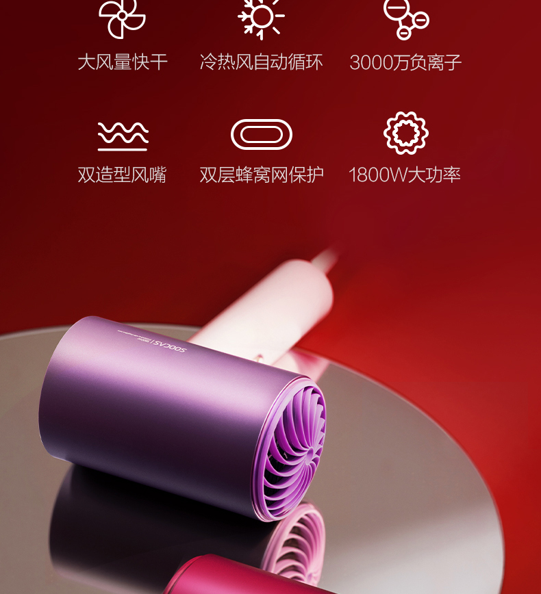 • 商品名称:素士负离子护发吹风机大功率风力速干家用电吹风筒2021新款智能女
