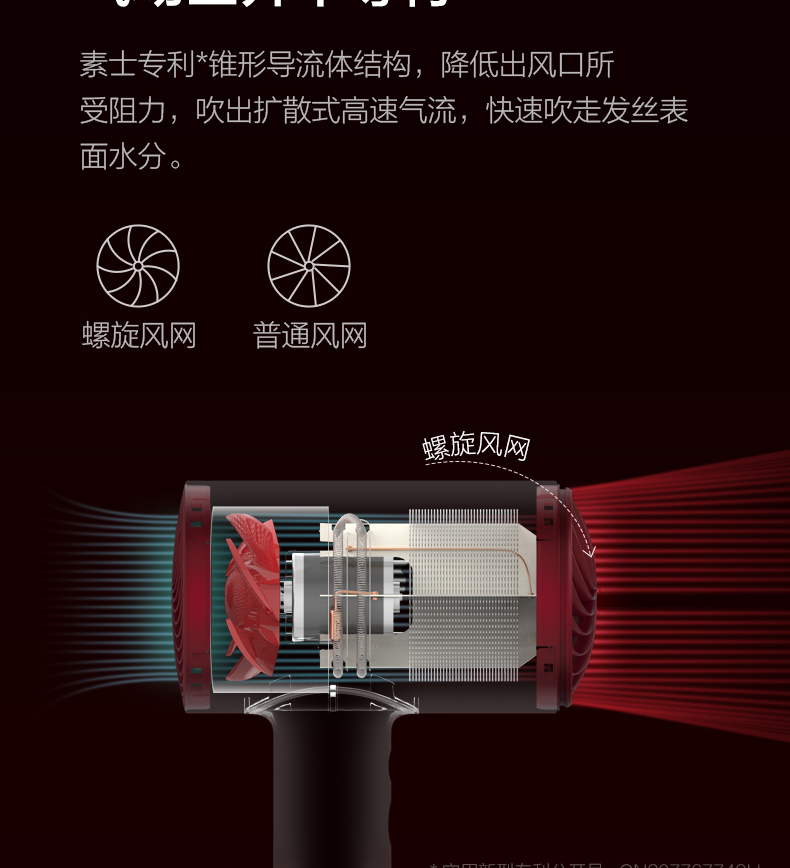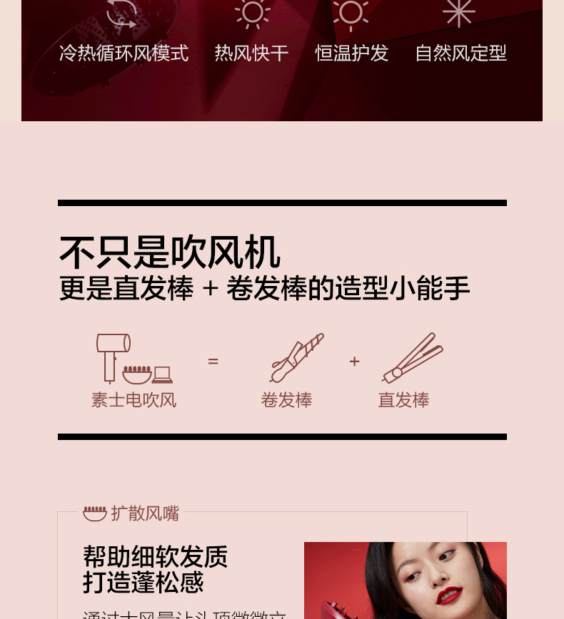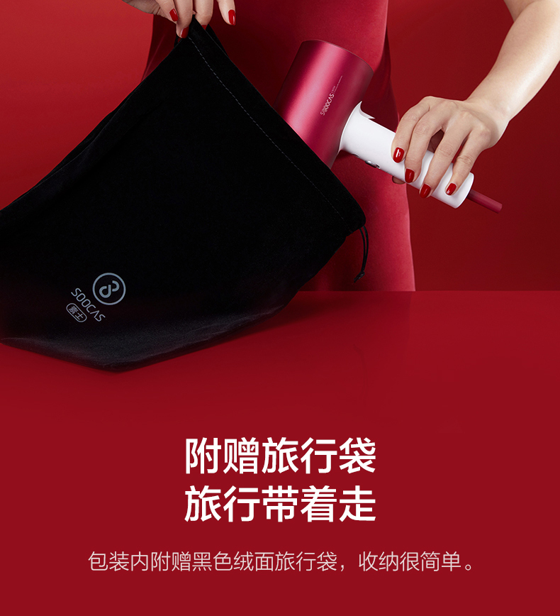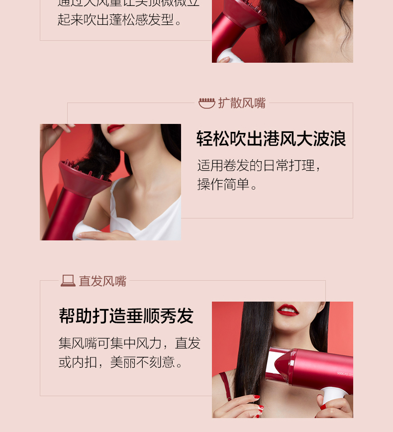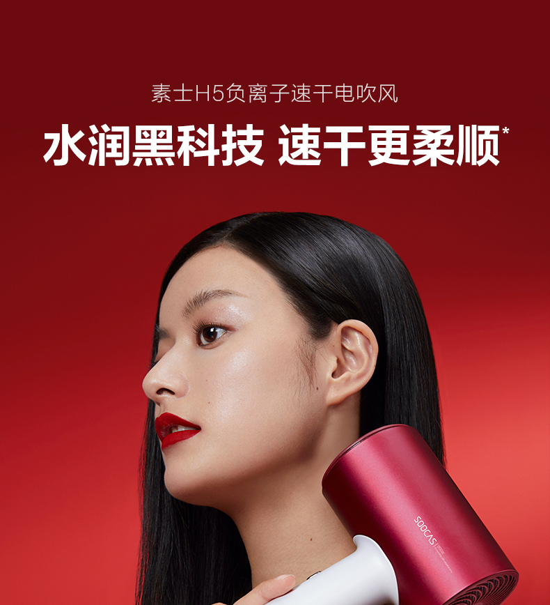 素士负离子护发吹风机大功率风力速干家用电吹风筒2021新款智能女