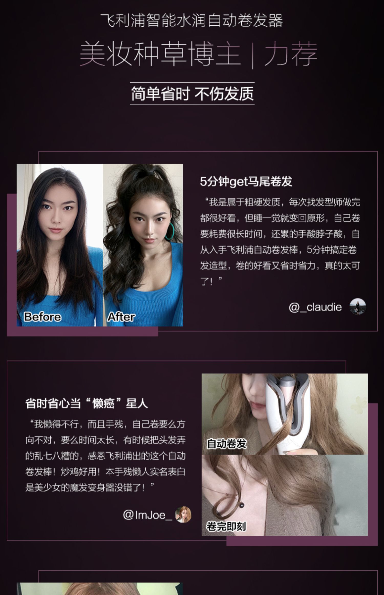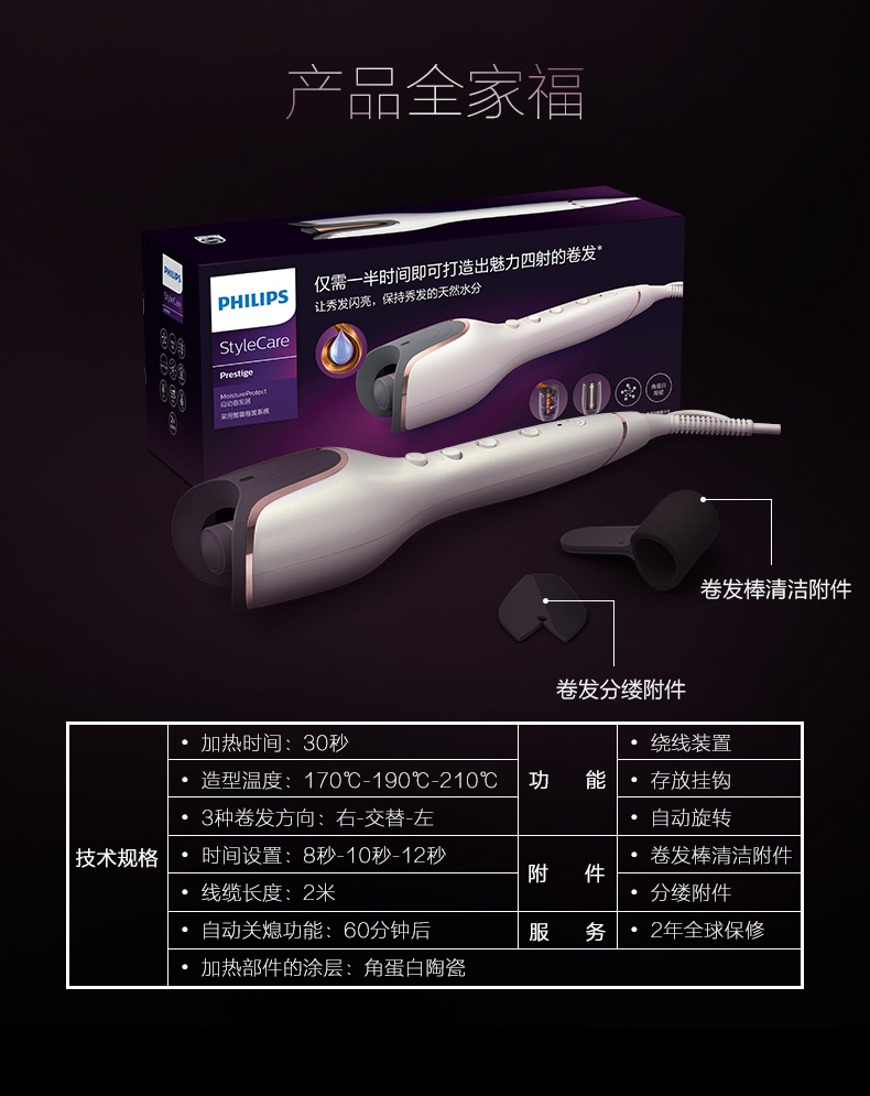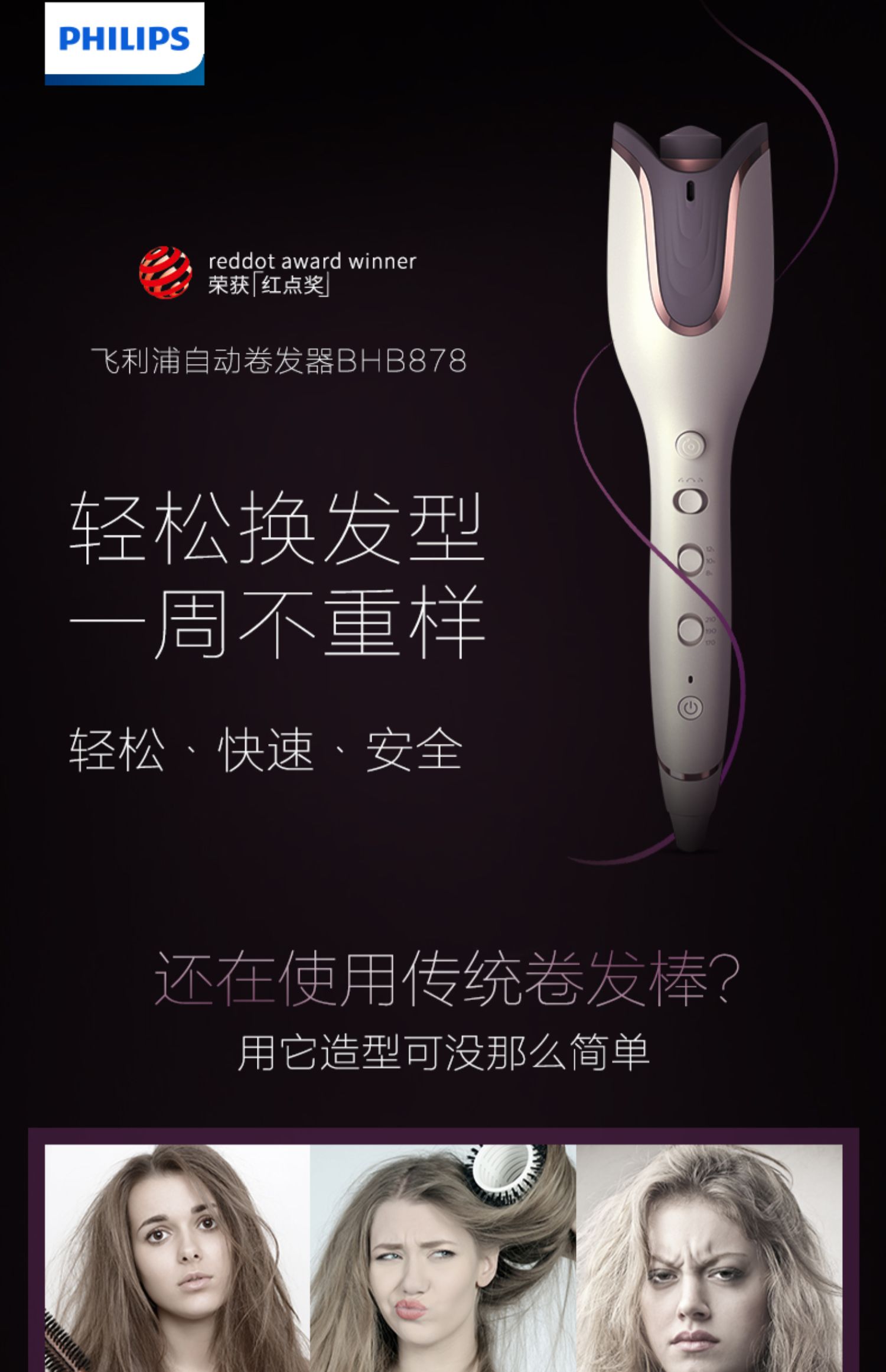 • 商品名称:飞利浦全自动卷发棒蛋卷头大卷卷直两用不伤发家用卷发神器BHB878